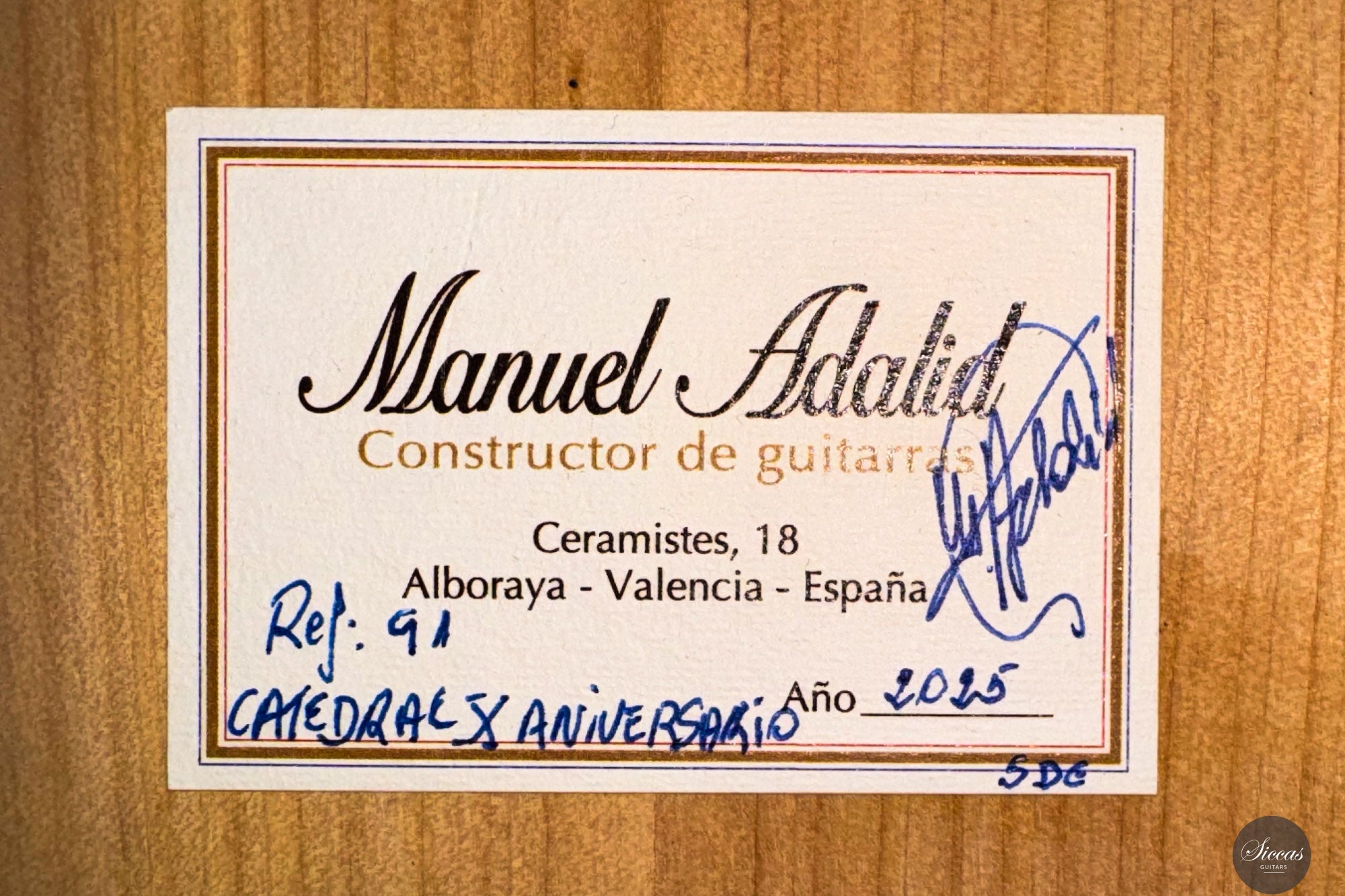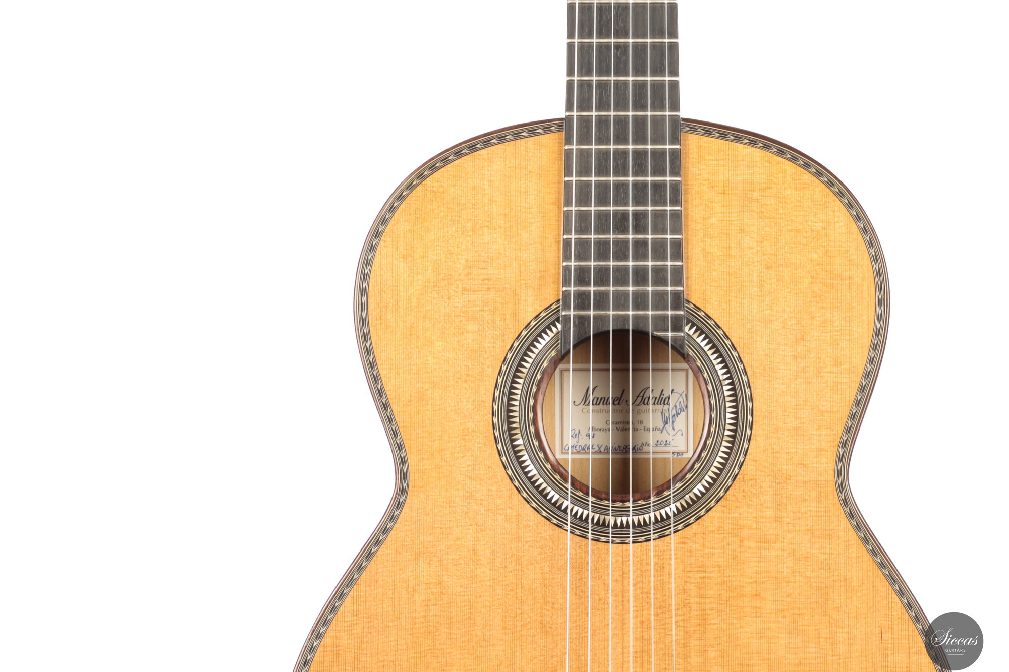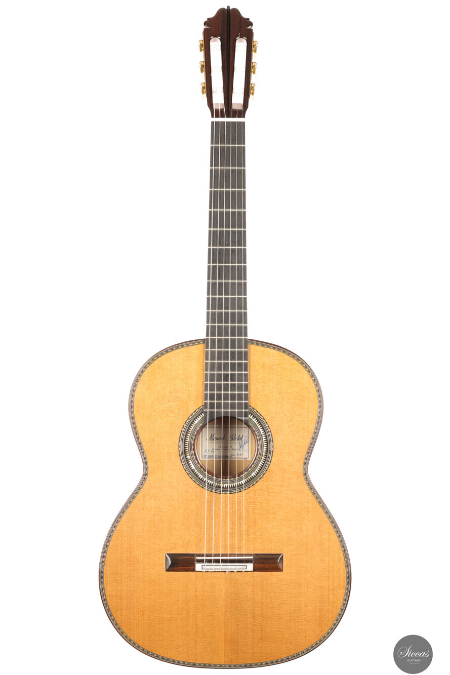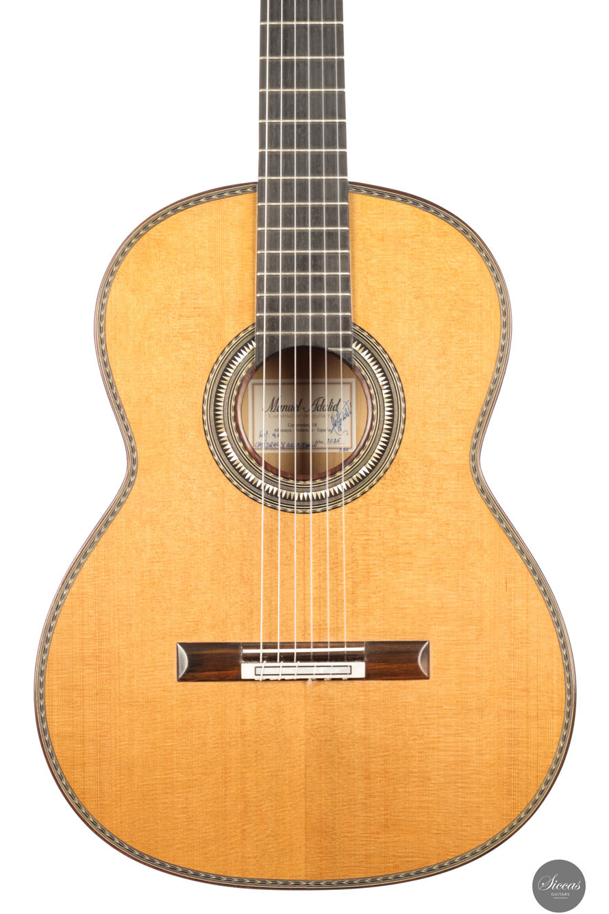 Manuel Adalid, a renowned Spanish guitar maker, was born on October 1, 1951. He grew up in a family of guitar makers, with his father, Manuel Adalid Lázaro, as well as Francisco Esteve Calatayud and Antonio Monfort, as his teachers in the craft. After completing his studies Higher Bachelor and Commercial Expert at the University of Valencia, Adalid set up a guitar trading company at 18, quickly becoming one of the most important clients of Francisco Esteve Guitars. He spent summers working as an apprentice at Francisco Esteve’s guitar factory, honing his skills and knowledge in the craft. At 23, Adalid returned to Guitarras Francisco Esteve with a full dedication to the guitar’s construction. During this time, his father and Antonio Monfort continued to mentor him, allowing him to complete his apprenticeship as a guitar maker. When the founding partners of Guitarras Francisco Esteve reached retirement age, they appointed Adalid as manager, recognizing his commercial and technical knowledge. Under his direction since October 1980, the company grew significantly, expanding its workshop area from 2,000 m2 to 6,000 m2 and increasing its employees from 30 to 49. Adalid is also known for his contributions to the field of guitar-making beyond his work at Guitarras Francisco Esteve. He has lectured on the Spanish construction system and new technologies for constructing the classical guitar in countries such as Spain, France, China, Turkey, and Argentina. Adalid’s expertise in the craft has been recognized through his title as a Master Craftsman, granted by the Department of Industry and Commerce of the Generalitat Valenciana with number 193. He is also currently the President of the Association of Musical Instruments (AFIMA). In recent years, Adalid has dedicated himself to researching new technologies for constructing classical guitars, which he considers the most enriching task on a personal level that he currently enjoys. Through his lifelong passion for the craft, Adalid has become a respected figure in the guitar-making world, leaving a lasting impact on the field.About the guitar