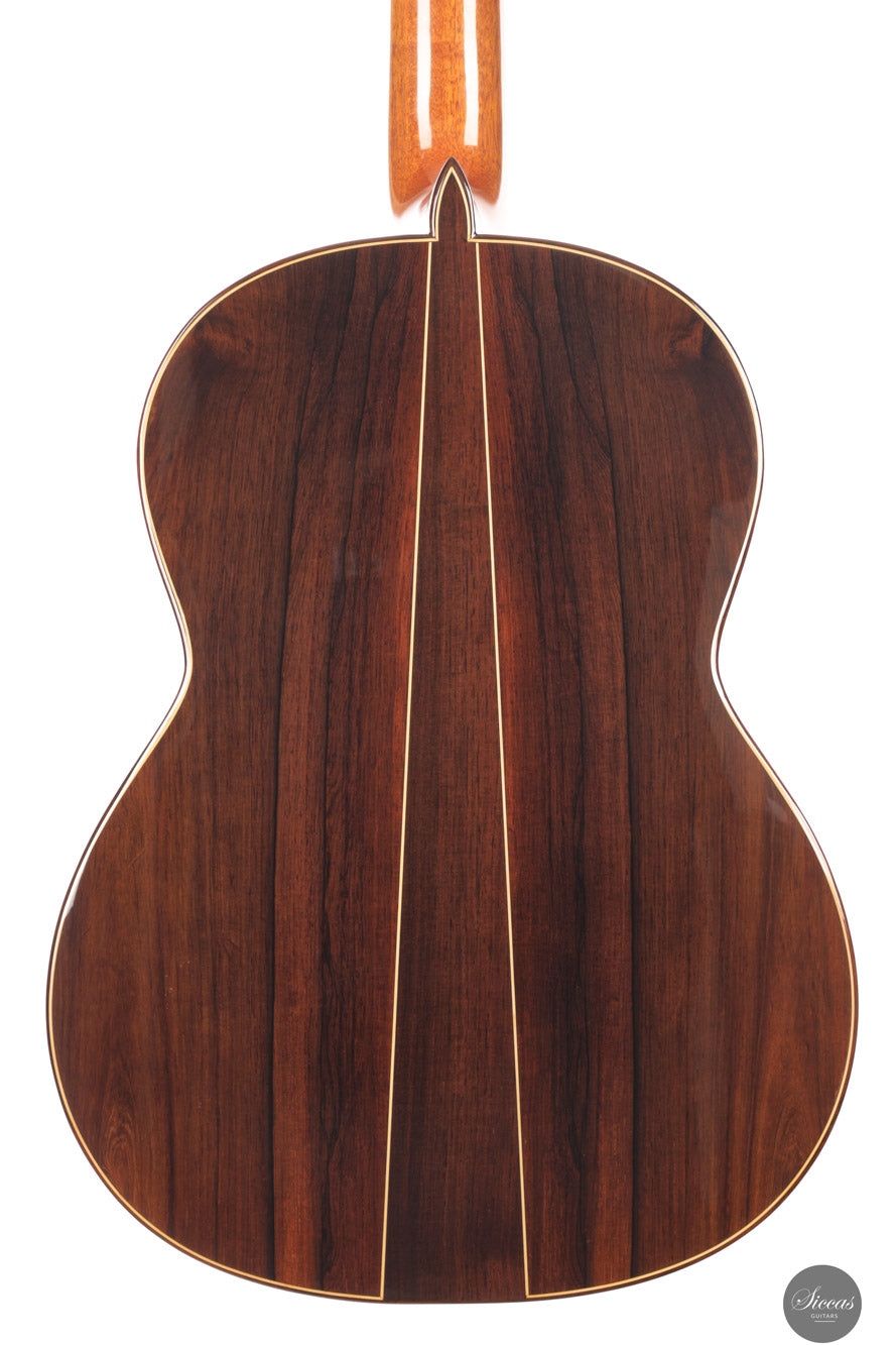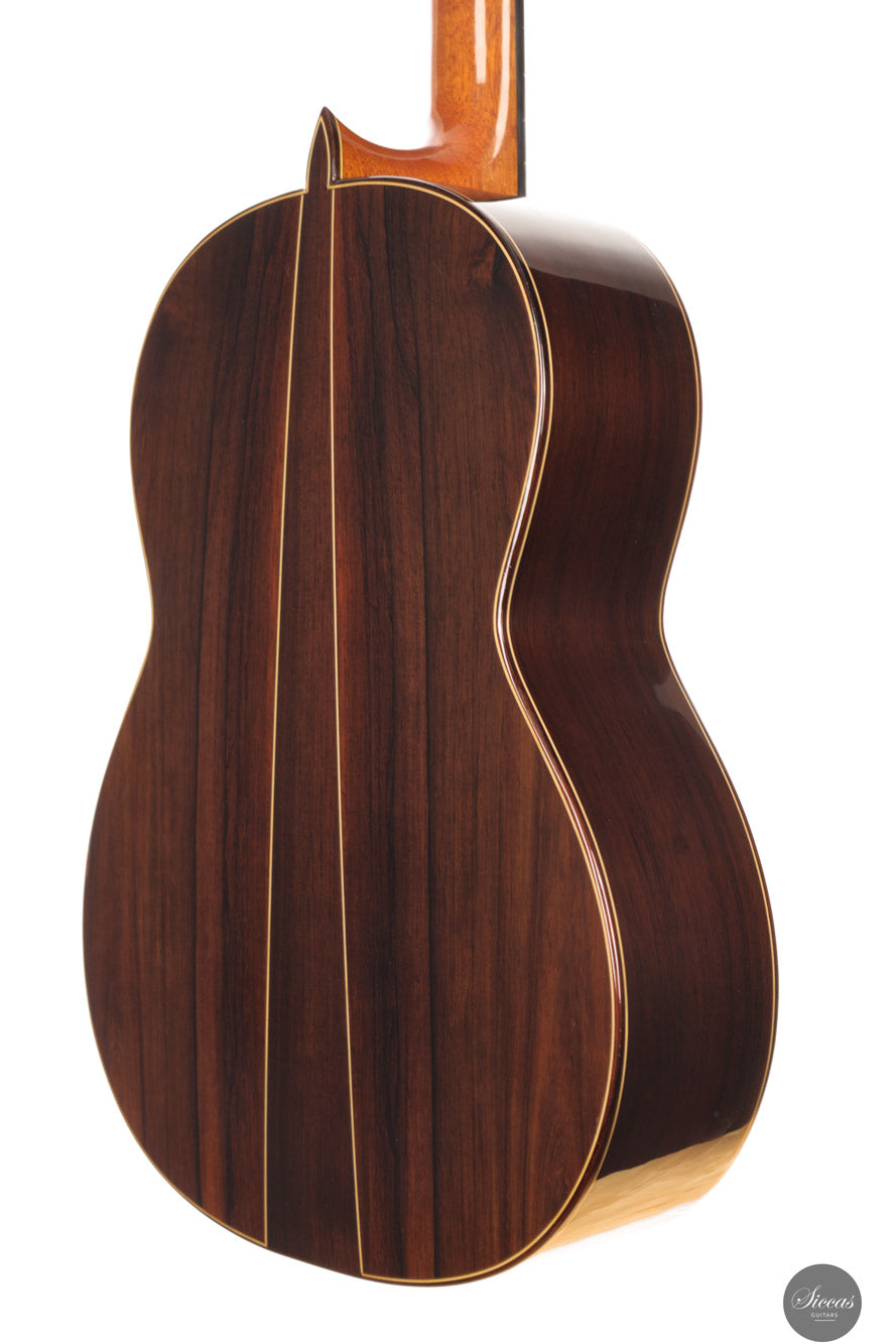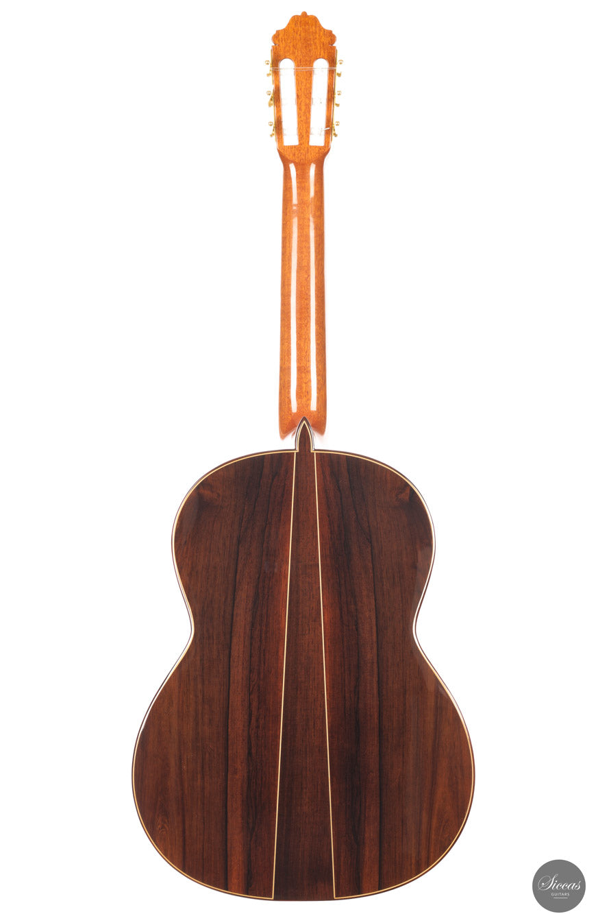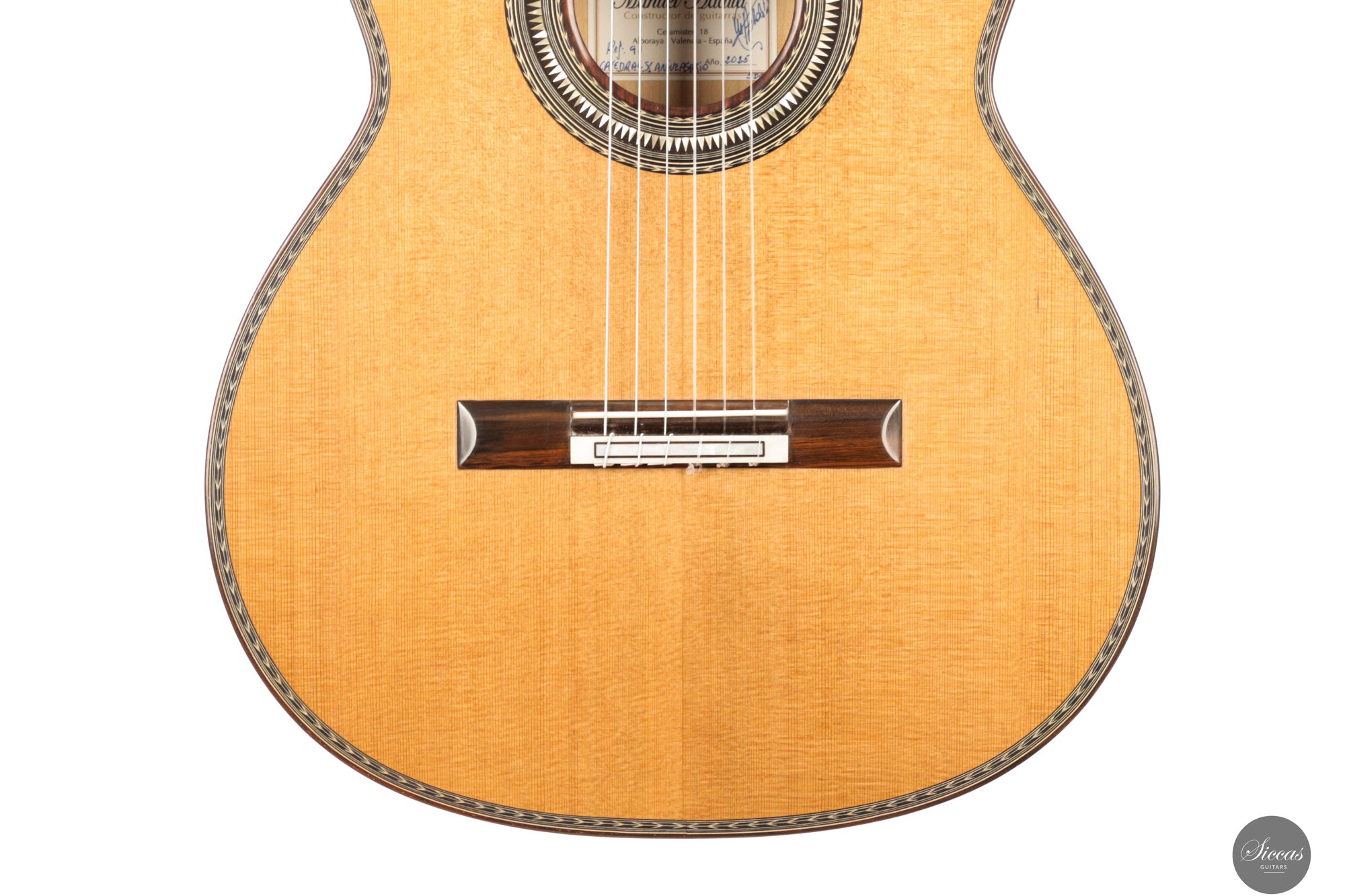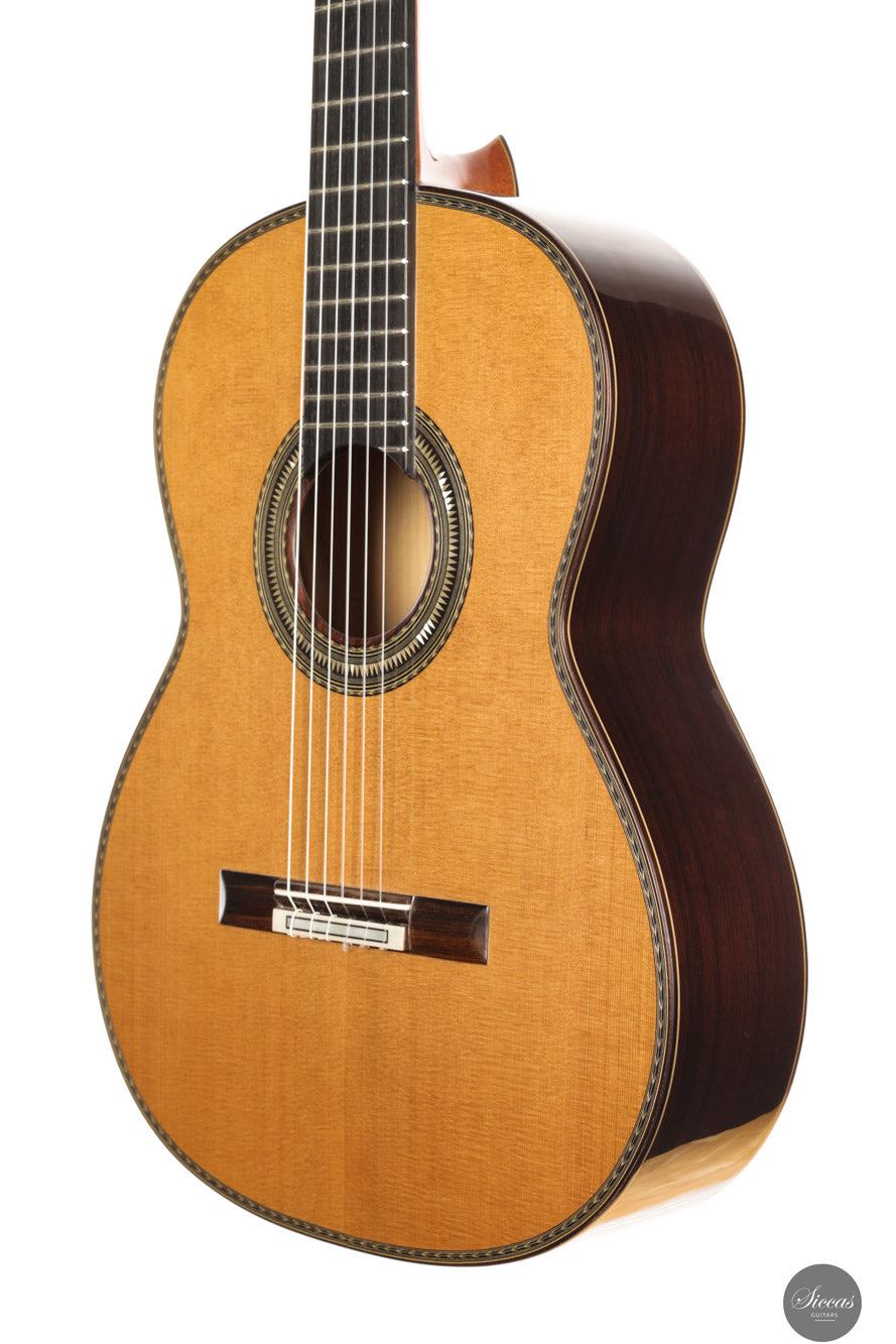 Manuel Adalid, a renowned Spanish guitar maker, was born on October 1, 1951. He grew up in a family of guitar makers, with his father, Manuel Adalid Lázaro, as well as Francisco Esteve Calatayud and Antonio Monfort, as his teachers in the craft. After completing his studies Higher Bachelor and Commercial Expert at the University of Valencia, Adalid set up a guitar trading company at 18, quickly becoming one of the most important clients of Francisco Esteve Guitars. He spent summers working as an apprentice at Francisco Esteve’s guitar factory, honing his skills and knowledge in the craft. At 23, Adalid returned to Guitarras Francisco Esteve with a full dedication to the guitar’s construction. During this time, his father and Antonio Monfort continued to mentor him, allowing him to complete his apprenticeship as a guitar maker. When the founding partners of Guitarras Francisco Esteve reached retirement age, they appointed Adalid as manager, recognizing his commercial and technical knowledge. Under his direction since October 1980, the company grew significantly, expanding its workshop area from 2,000 m2 to 6,000 m2 and increasing its employees from 30 to 49. Adalid is also known for his contributions to the field of guitar-making beyond his work at Guitarras Francisco Esteve. He has lectured on the Spanish construction system and new technologies for constructing the classical guitar in countries such as Spain, France, China, Turkey, and Argentina. Adalid’s expertise in the craft has been recognized through his title as a Master Craftsman, granted by the Department of Industry and Commerce of the Generalitat Valenciana with number 193. He is also currently the President of the Association of Musical Instruments (AFIMA). In recent years, Adalid has dedicated himself to researching new technologies for constructing classical guitars, which he considers the most enriching task on a personal level that he currently enjoys. Through his lifelong passion for the craft, Adalid has become a respected figure in the guitar-making world, leaving a lasting impact on the field.About the guitar
