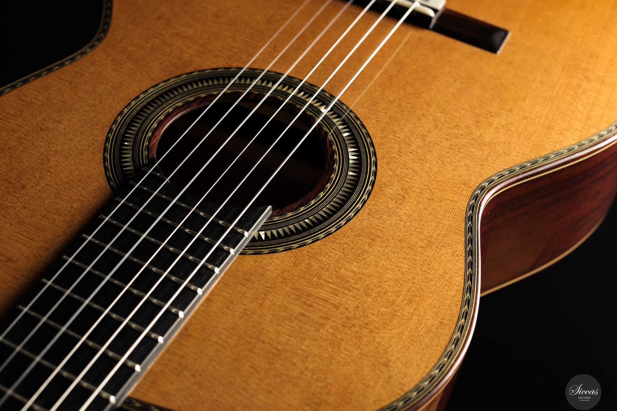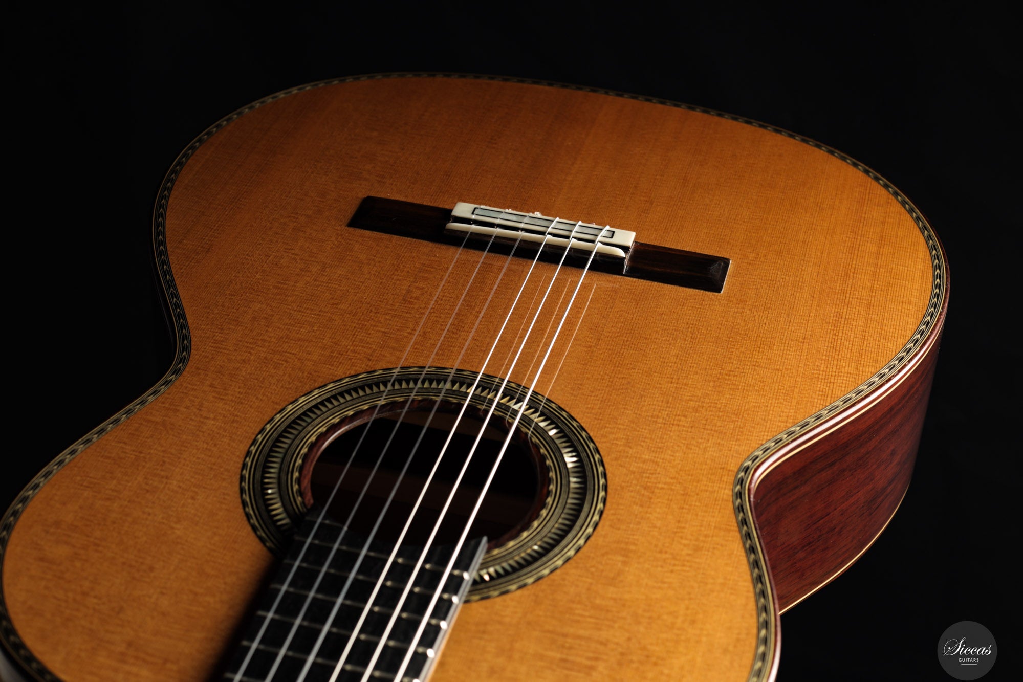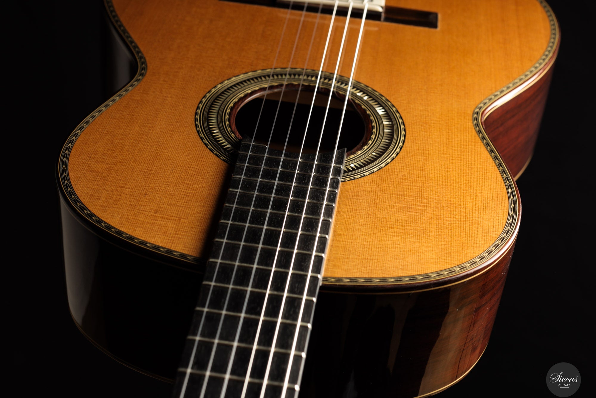 Be mindful when touching your instrument with greasy or unwashed hands: any skin contact is a small attack on the varnish. Of course, a guitar is made to be played, but taking a few precautions helps preserve its beauty: wash your hands before playing, wear long sleeves, and avoid unnecessary direct skin contact with the body of the instrument.