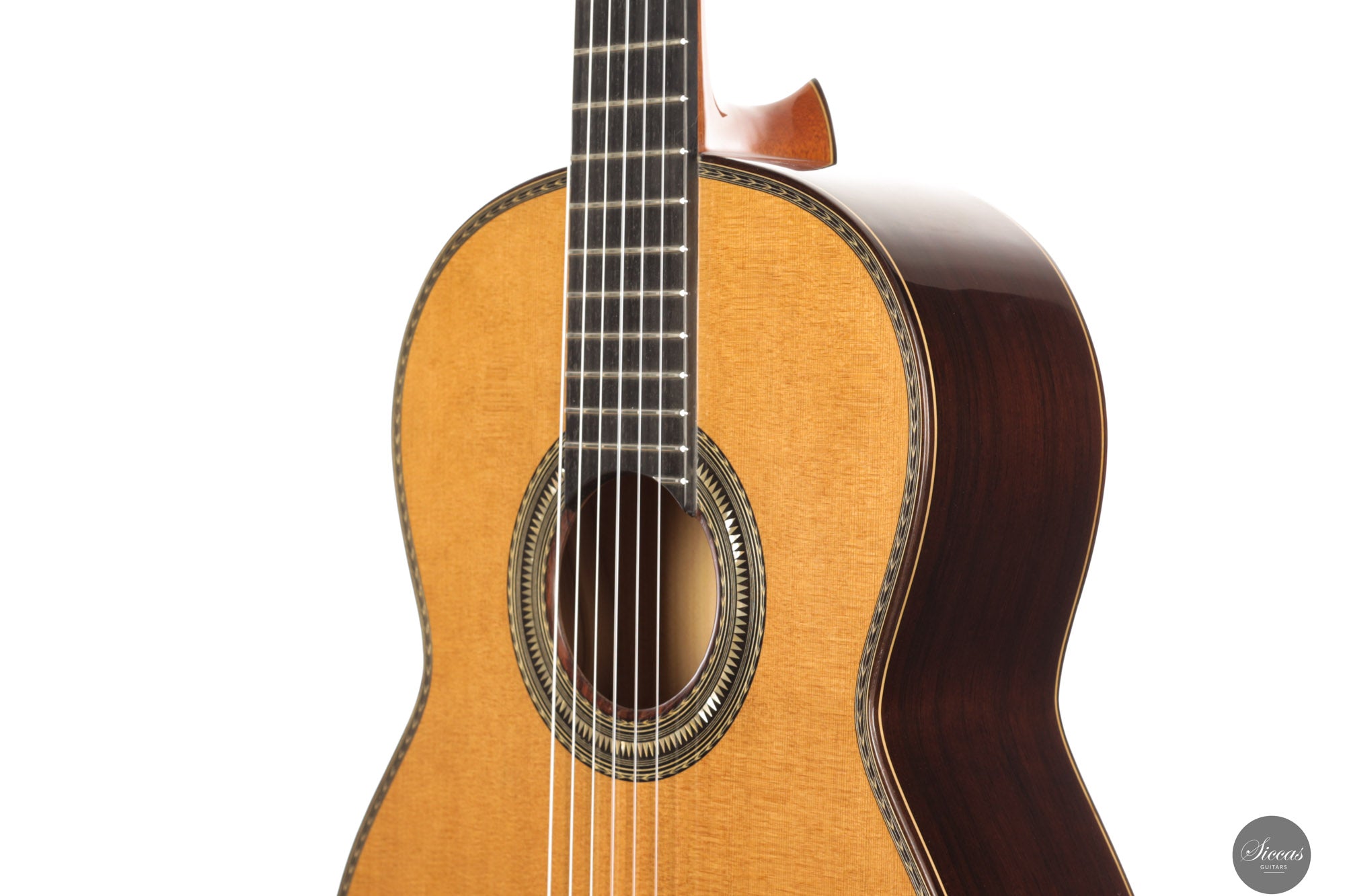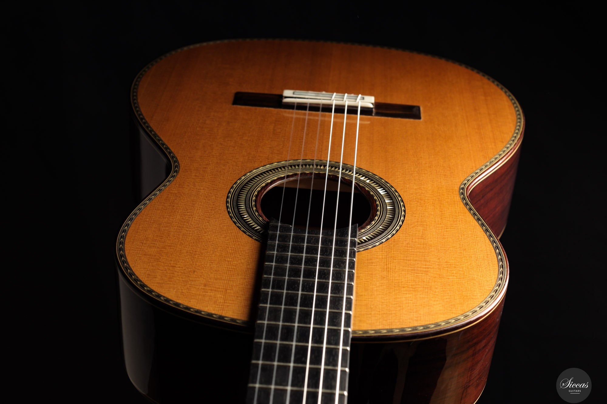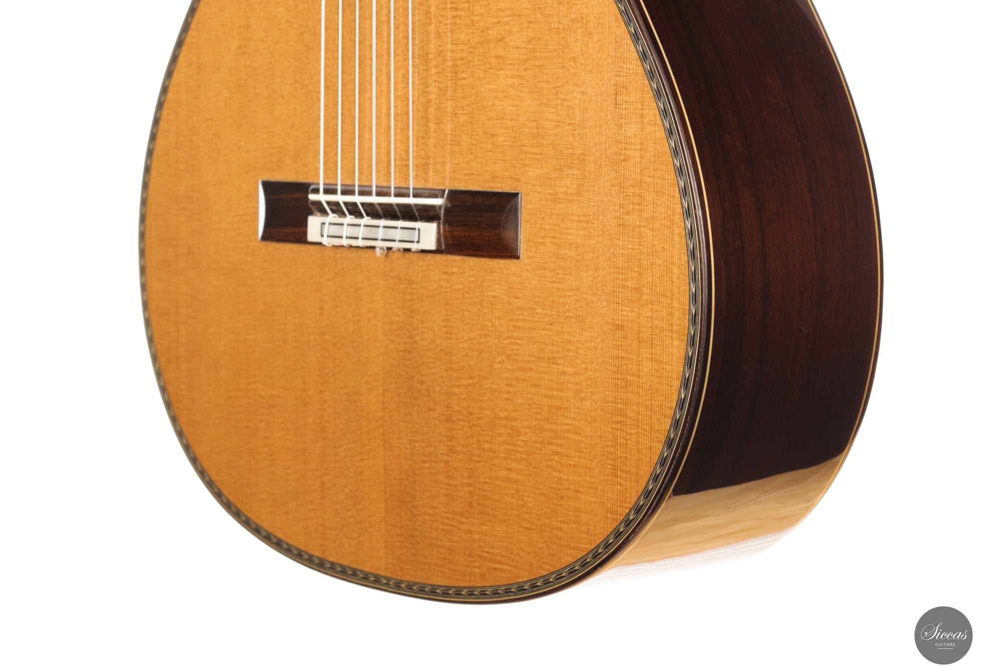 Be mindful when touching your instrument with greasy or unwashed hands: any skin contact is a small attack on the varnish. Of course, a guitar is made to be played, but taking a few precautions helps preserve its beauty: wash your hands before playing, wear long sleeves, and avoid unnecessary direct skin contact with the body of the instrument.