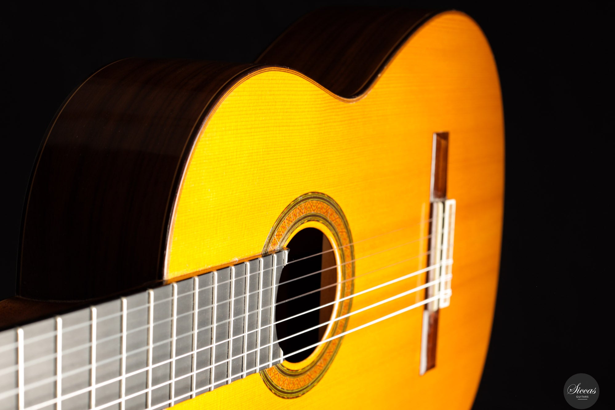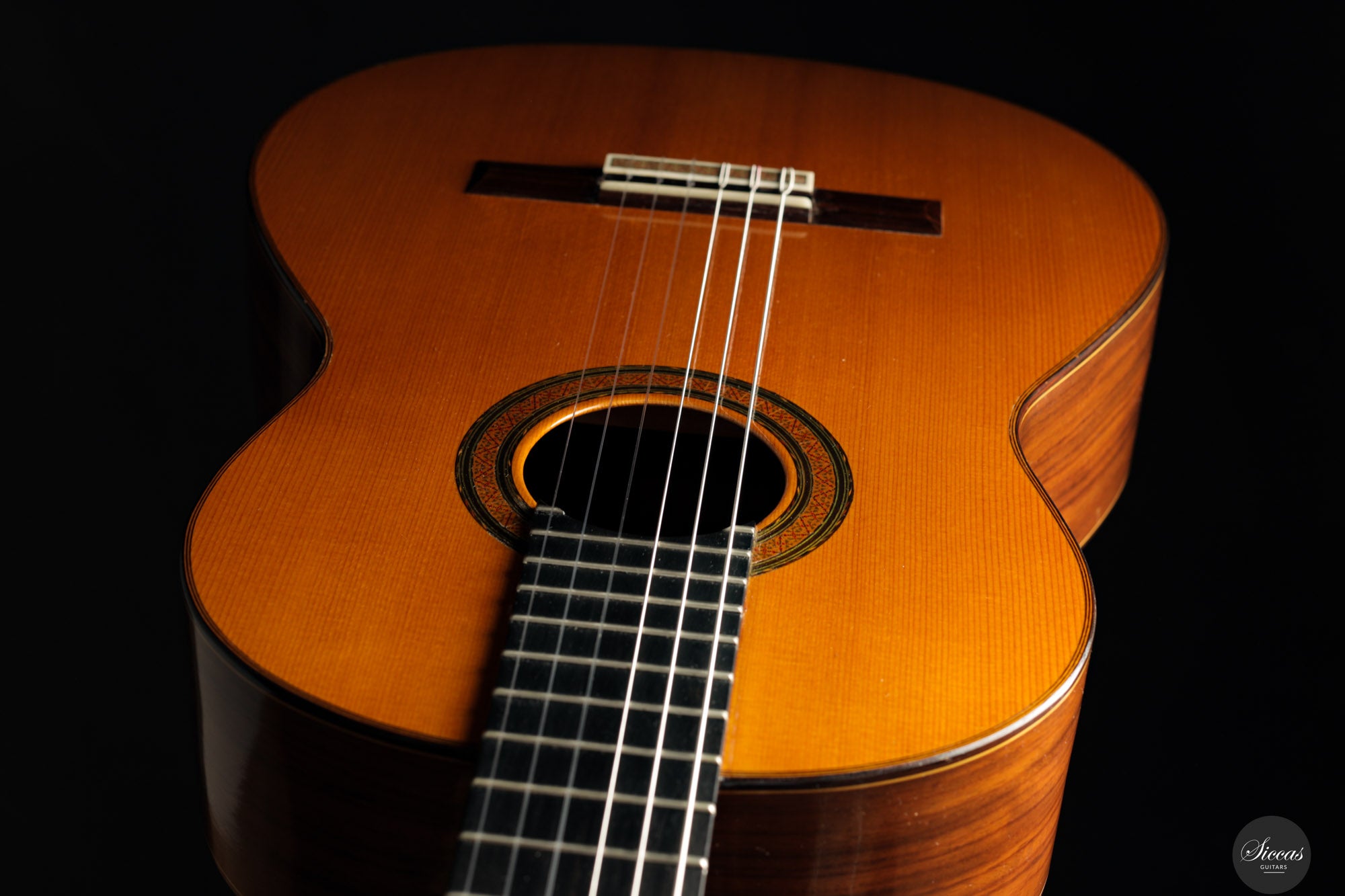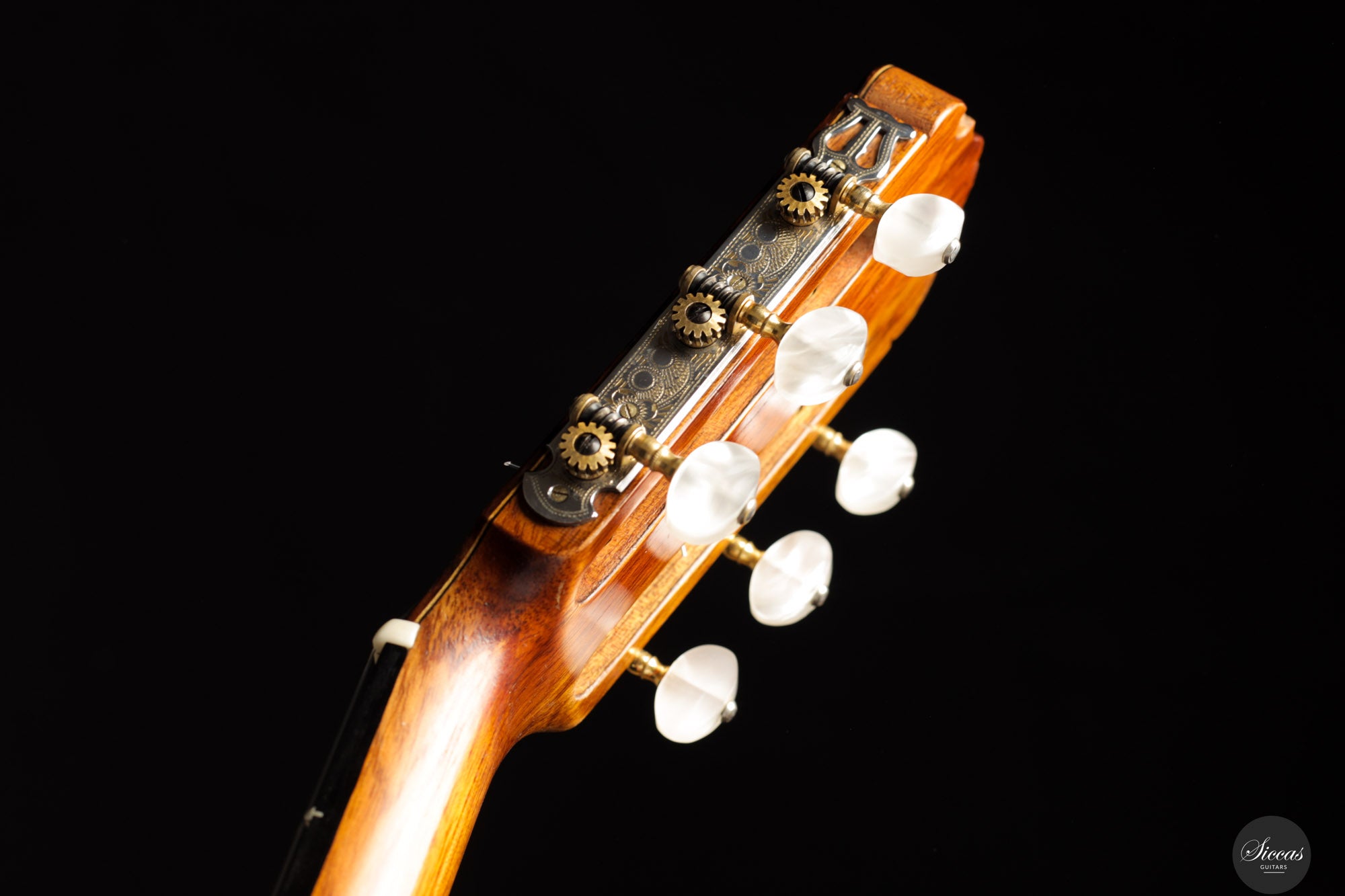 Manuel González Contreras (1928–1994) was one of the most significant Spanish guitar makers of the 20th century. Initially trained as a cabinetmaker, he entered the guitar world under the guidance of José Ramírez III, working in his workshop between 1959 and 1962. He then founded his own workshop, where he would develop a distinctive approach to classical guitar construction. His legacy was continued by his son Pablo Manuel Contreras (1957–2011), making the Contreras name synonymous with refined craftsmanship and Spanish tonal identity. A comprehensive feature in Orfeo Magazine No. 3 offers valuable insights into their contributions to lutherie.About the guitar