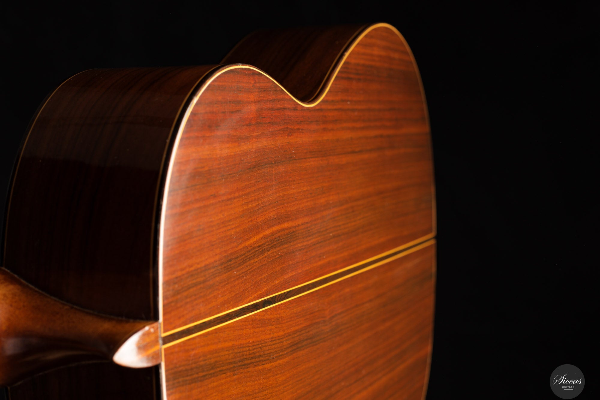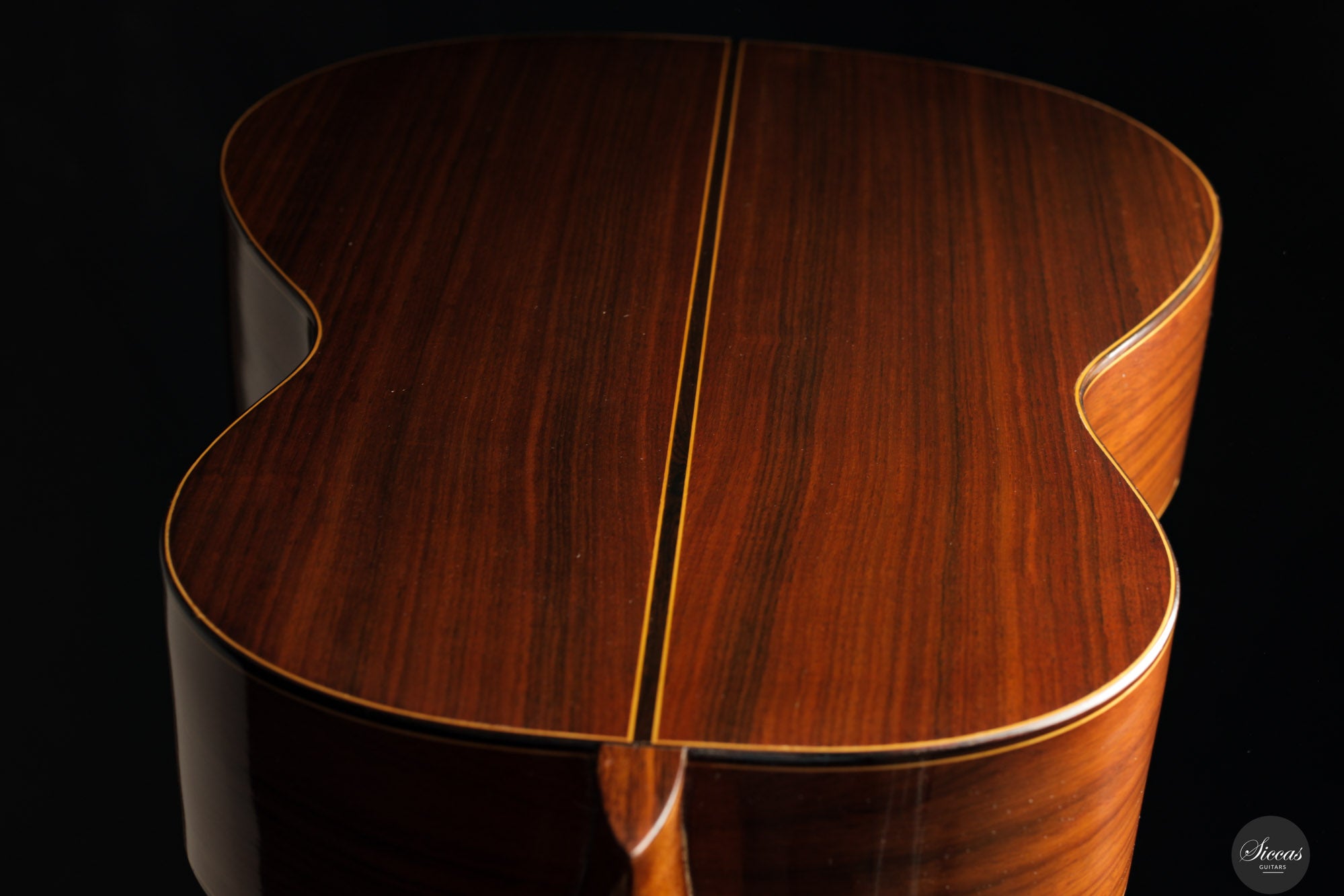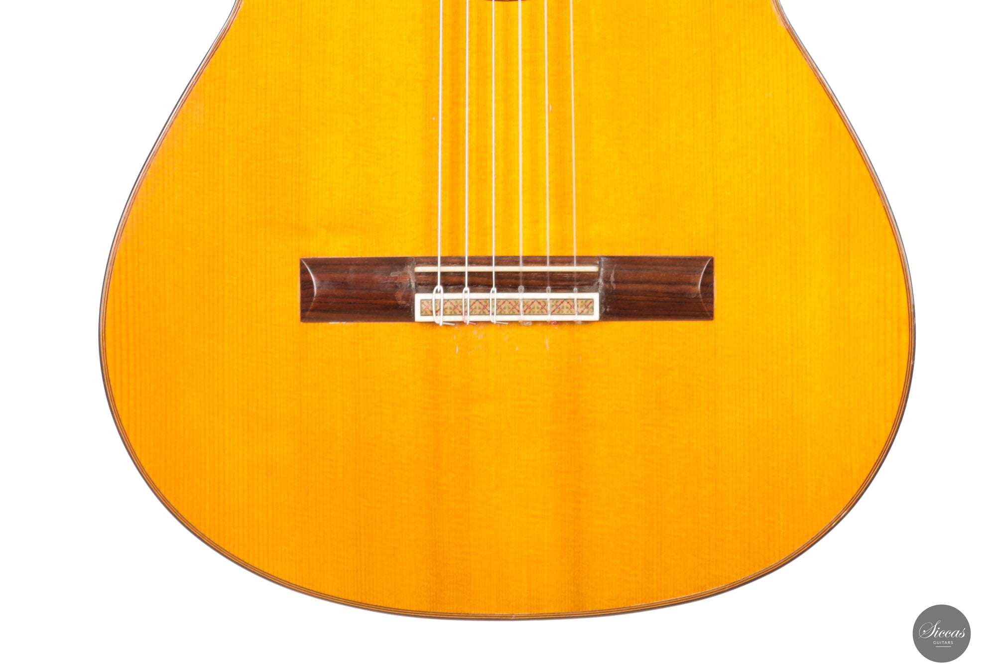 This 1966 classical guitar by Manuel Contreras I is a fine early example of his independent work, constructed just four years after the opening of his own workshop. Built in the traditional style, it features a 660 mm scale length paired with a spruce top and Indian rosewood back and sides, producing a vibrant and resonant sound with excellent tonal separation. The guitar weighs only 1445 grams, making it exceptionally lightweight and highly responsive with a quick and articulate attack. The woods are beautifully grained, showcasing both the visual refinement and careful material selection typical of Contreras’ craftsmanship. The air body resonance lies between F# and G, which complements its bright and punchy sonic profile. The guitar retains its original Fustero tuners, adding to its authenticity and value. Notably, the instrument exhibits a strong Spanish identity with crisp basses and brilliant clarity across the registers, embodying the classic aesthetic and sound palette for which Contreras became known.Condition