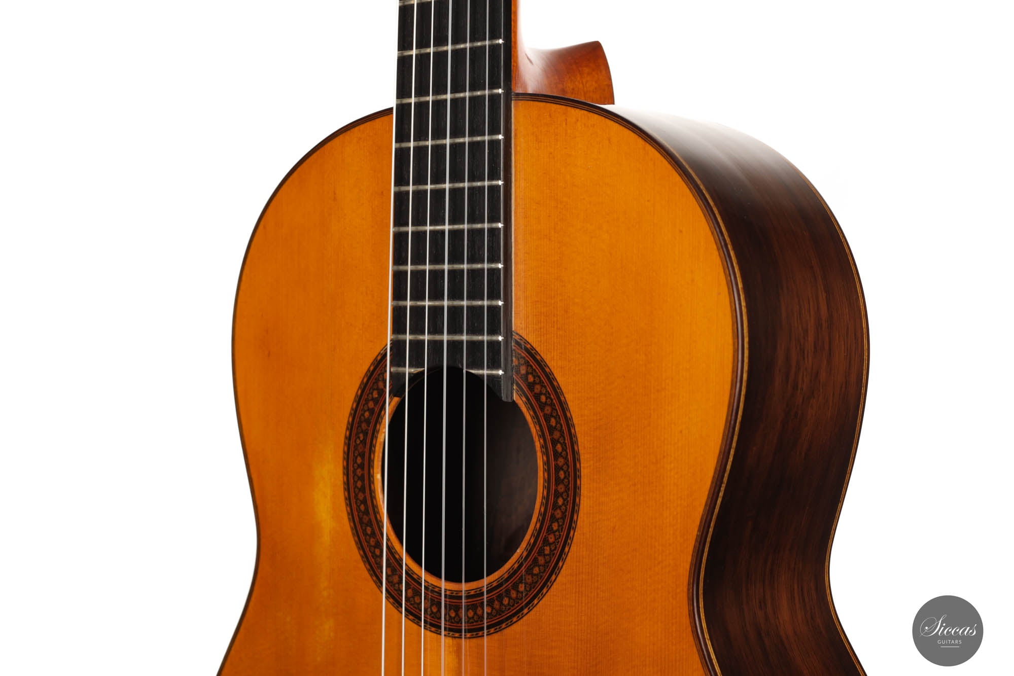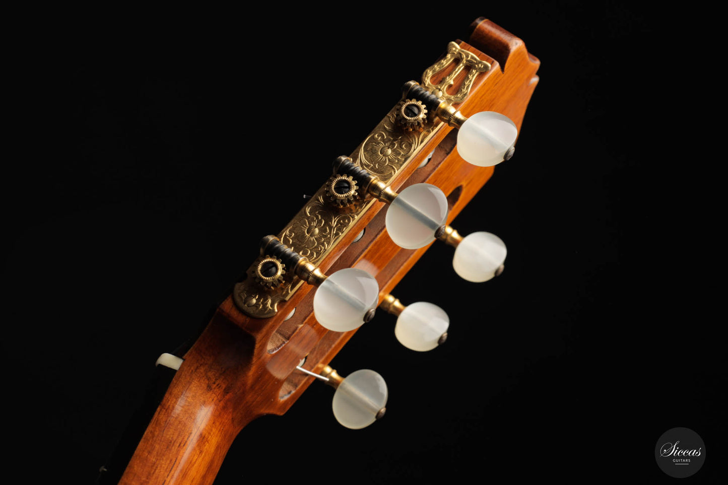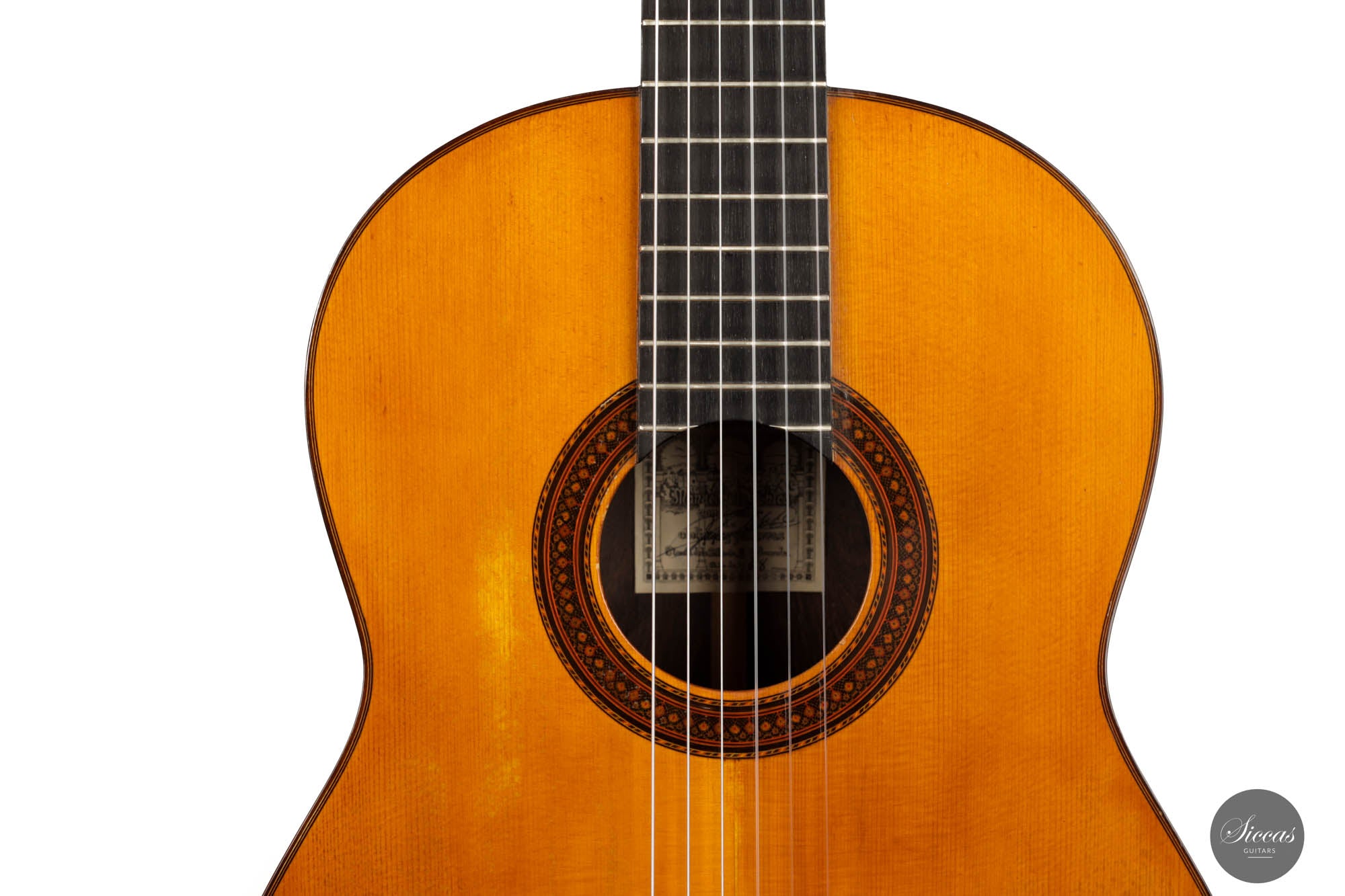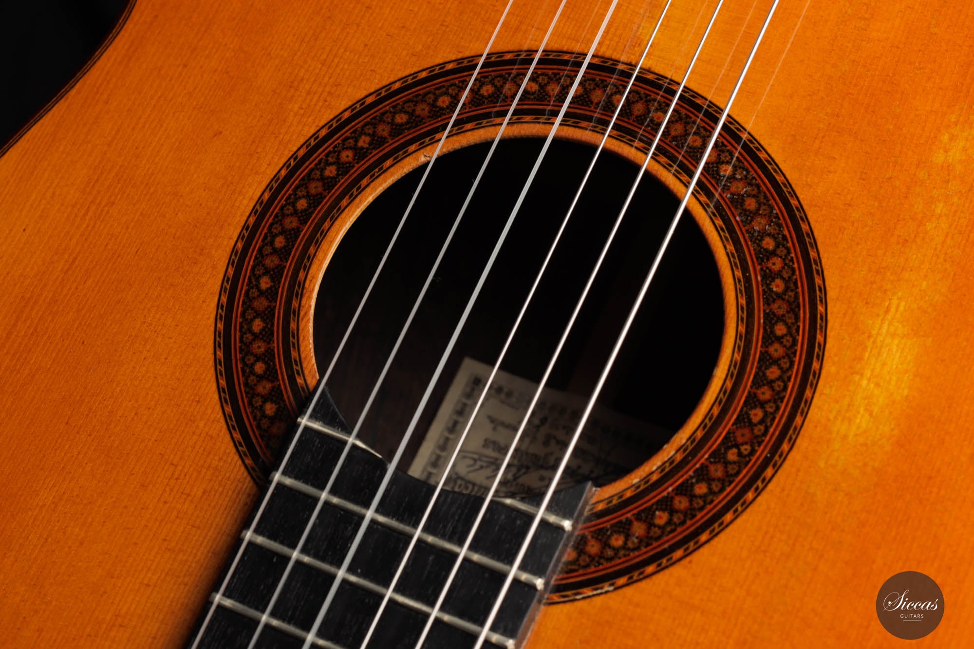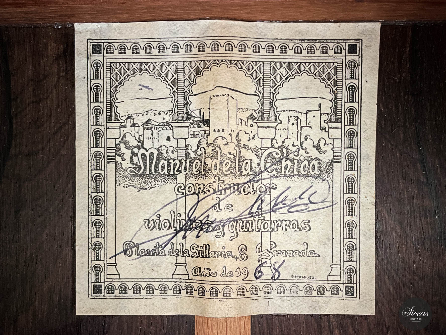 Manuel De La Chica (1911-1998) is one of the most important guitar builders from Granada up to date. He was a self-taught luthier who studied and reproduced the guitars of Santos Hernandez in the 1930s. He later spent some time in Pepe de la Alhambra’s workshop, who worked with Benito Ferrer, before setting up his workshop. Unfortunately, he had to retire due to a health problem caused by the inhalation of dust and chemicals in 1973.