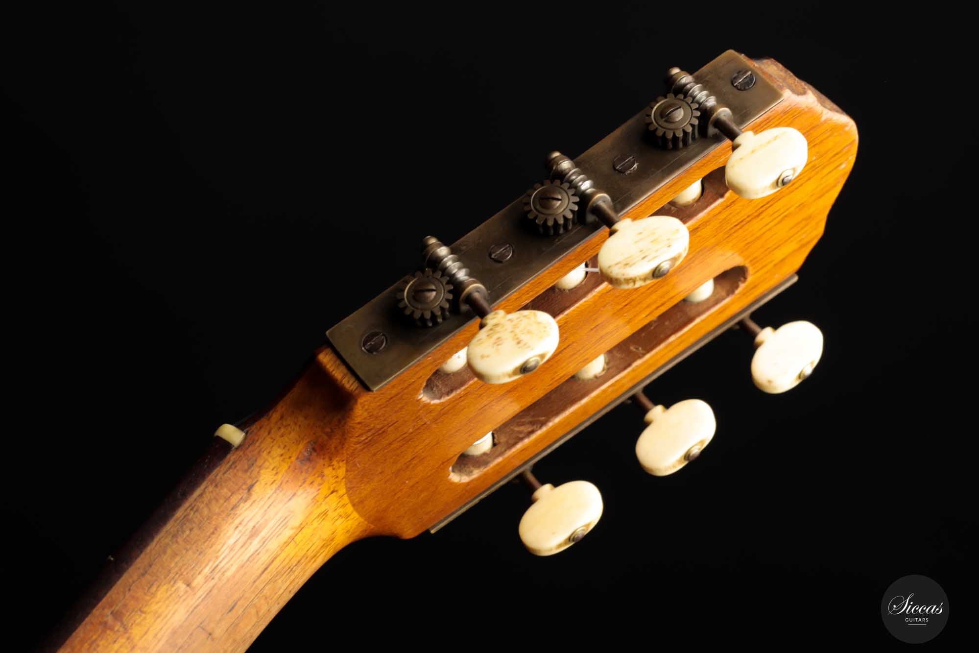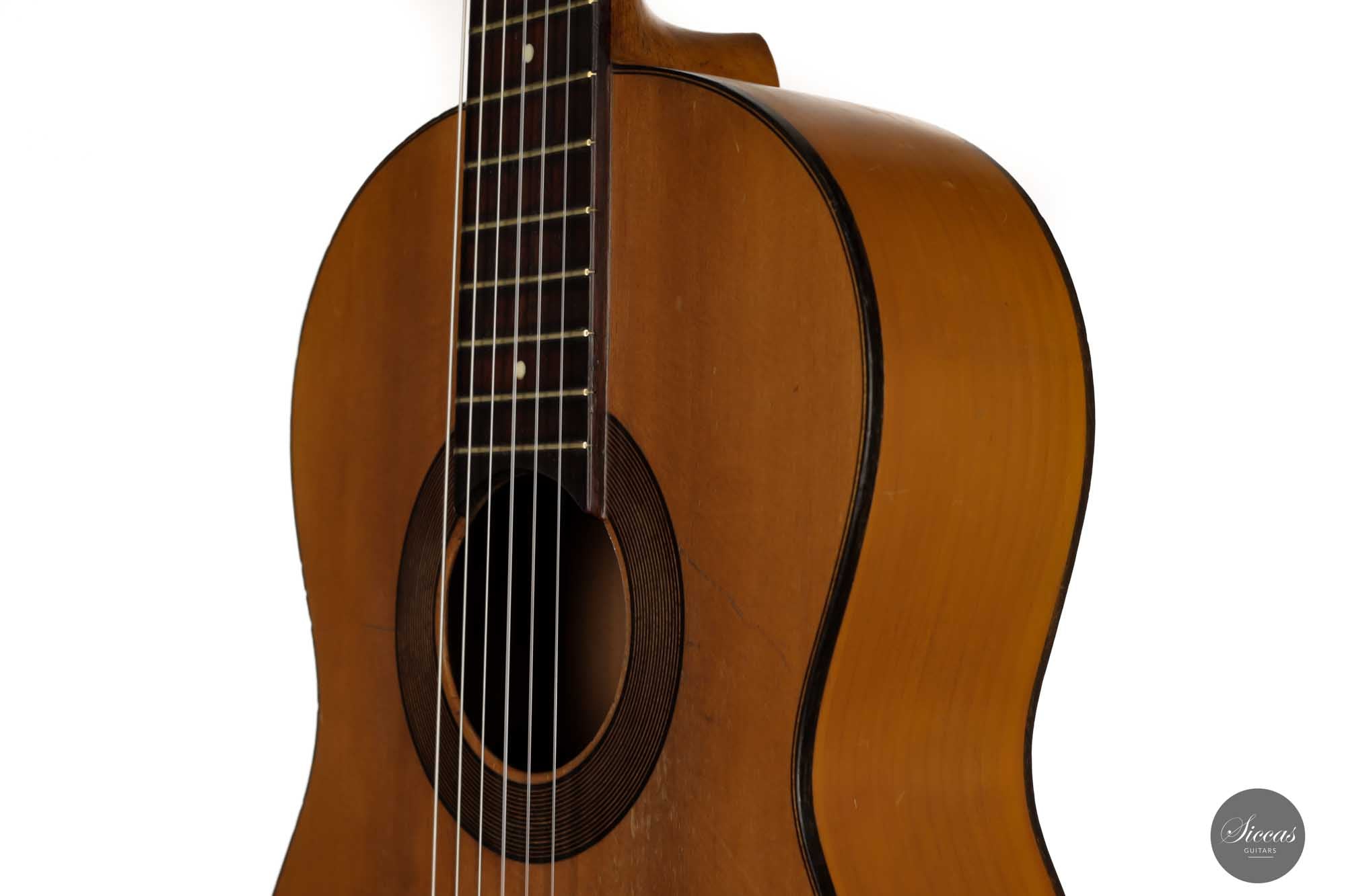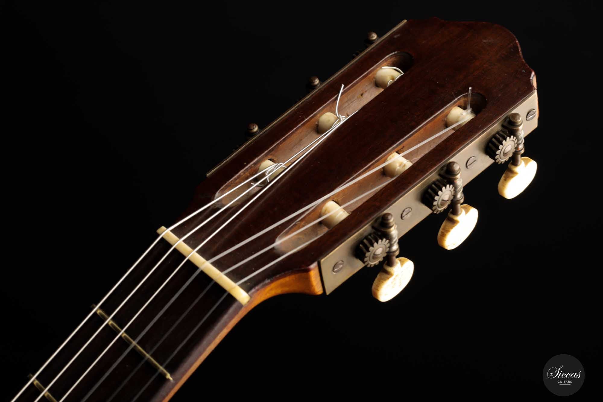 Manuel Ramirez (1864-1916) is one of the most important luthiers of guitar history. In his workshop in Madrid he trained and inspired many now-legendary luthiers such as Santos Hernandez, Enrique Garcia, Domingo Esteso, Modesto Borreguero, Antonio Emilio Pascual Viudes and José Gomez-Ramirez. His legacy can be found in almost all modern guitar-making branches. From South America with his employee Antonio Emilio Pascual Viudes (1883-1959), who migrated to Buenos Aires before the first world war, to the French school of guitar making with Julian Gomez Ramirez (1879-1943), who brought the Spanish guitar to Paris and taught the famous French luthier Robert Bouchet (1898-1986); the Barcelonian aesthetic with Enrique Garcia (1868-1922) or the following of the Madrid sound ideal with Santos Hernandez (1874-1943) and Domingo Esteso (1882–1937). It is also interesting to note that Manuel Ramirez strongly inspired cutting-edge German luthiers Matthias Damman and Gernot Wagner’s headstock shape and, more generally, the German classical