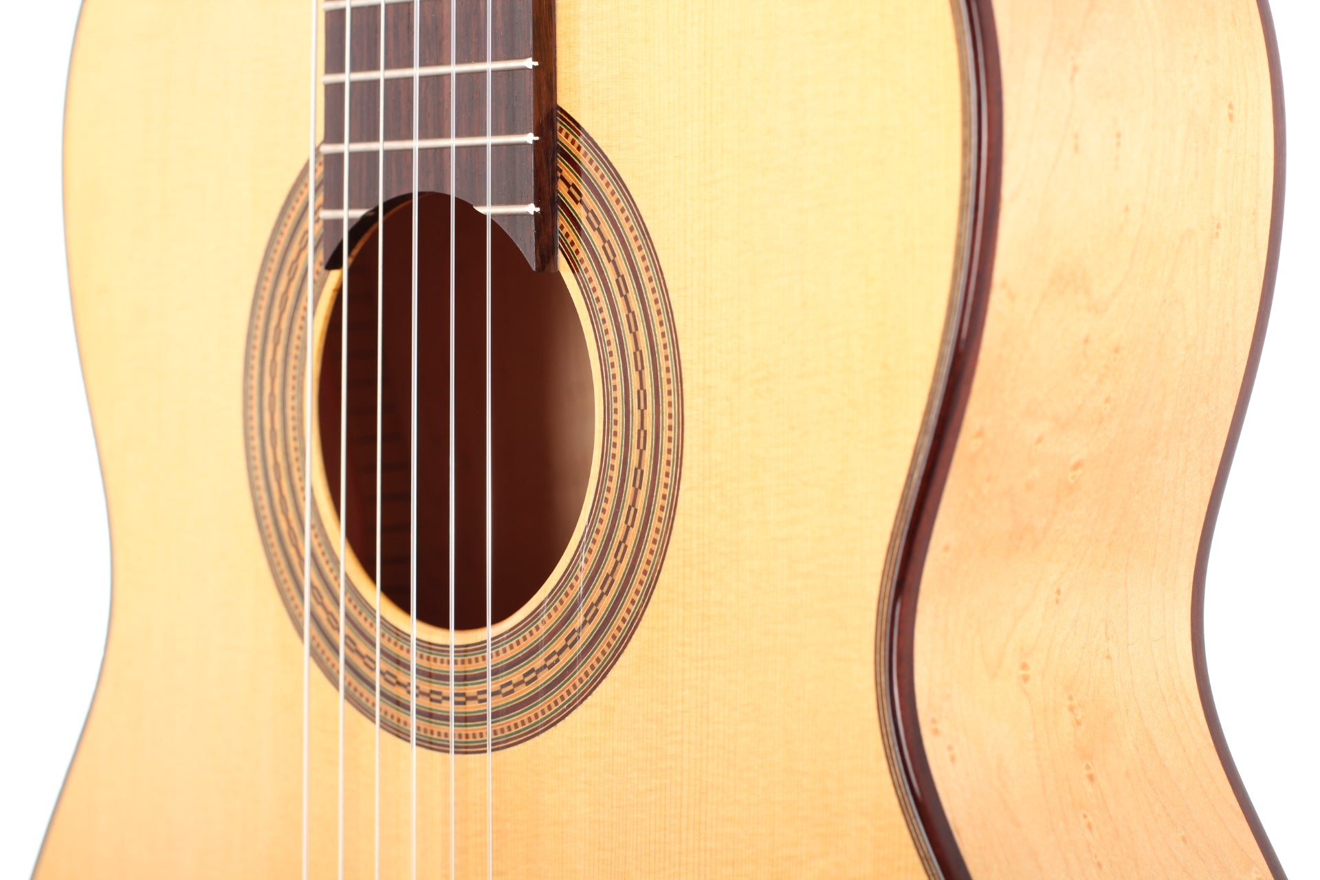 The classical guitar, with its soft nylon strings and characteristic timbre, has become a symbol of chamber music, Spanish tradition, and concert repertoire. Its modern form was shaped by Antonio de Torres in the 19th century, setting the standard for the body, fan bracing, and the 65-centimeter scale length that are still used today. Instruments in this category open up a rich palette from the refined Romantic miniatures of Tárrega to the majestic concertos of Rodrigo. Here you will find guitars that preserve historical continuity and at the same time inspire new interpretations.Look all products of the collection -