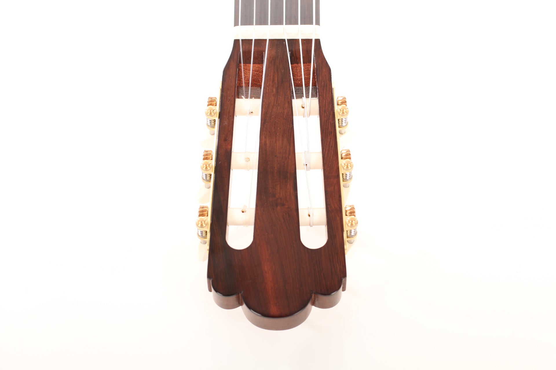 Price on requestLuthier: Fritz OberConstruction Year: 2019Construction Type: TraditionalTop: SpruceBack and Sides: Brazilian rosewood (CITES certified)Soundboard Finish: French polishBody Finish: French polishAir Body Frequency: C sharp / DWeight (g): 1345Tuner: Klaus SchellerCondition: Excellent -