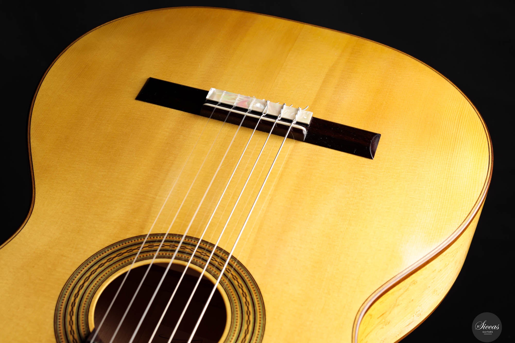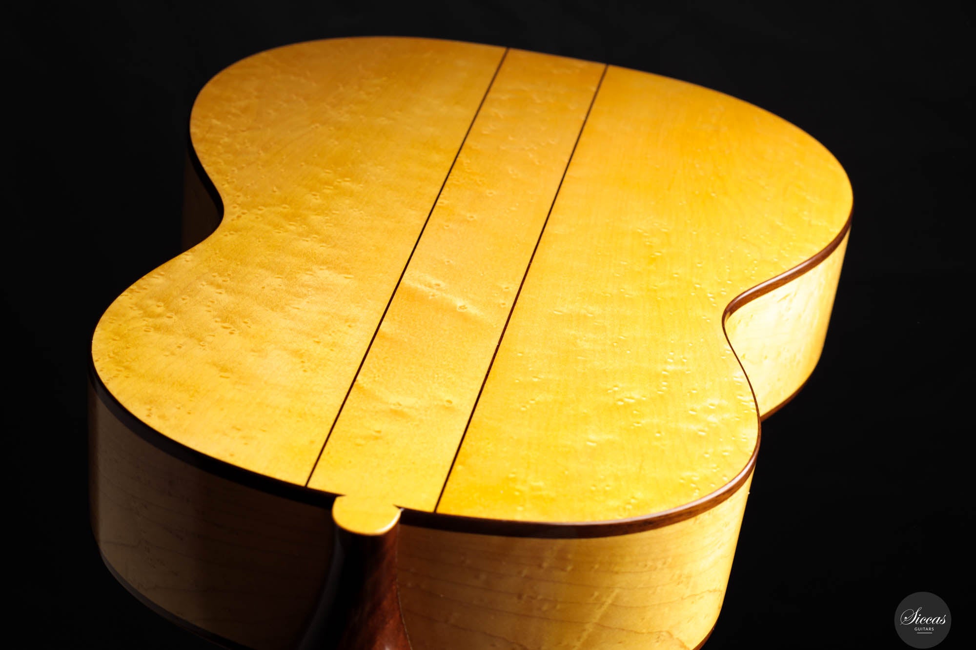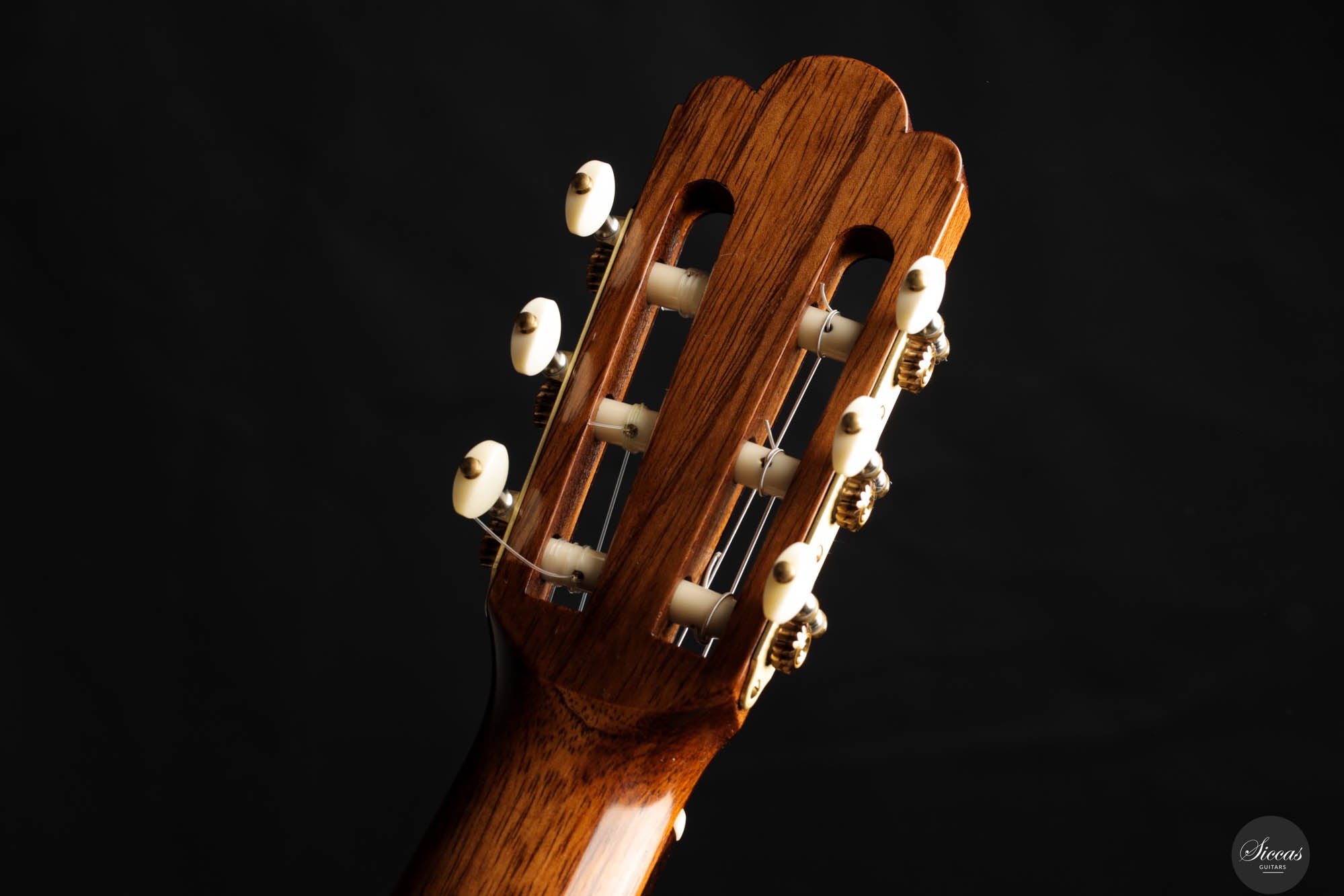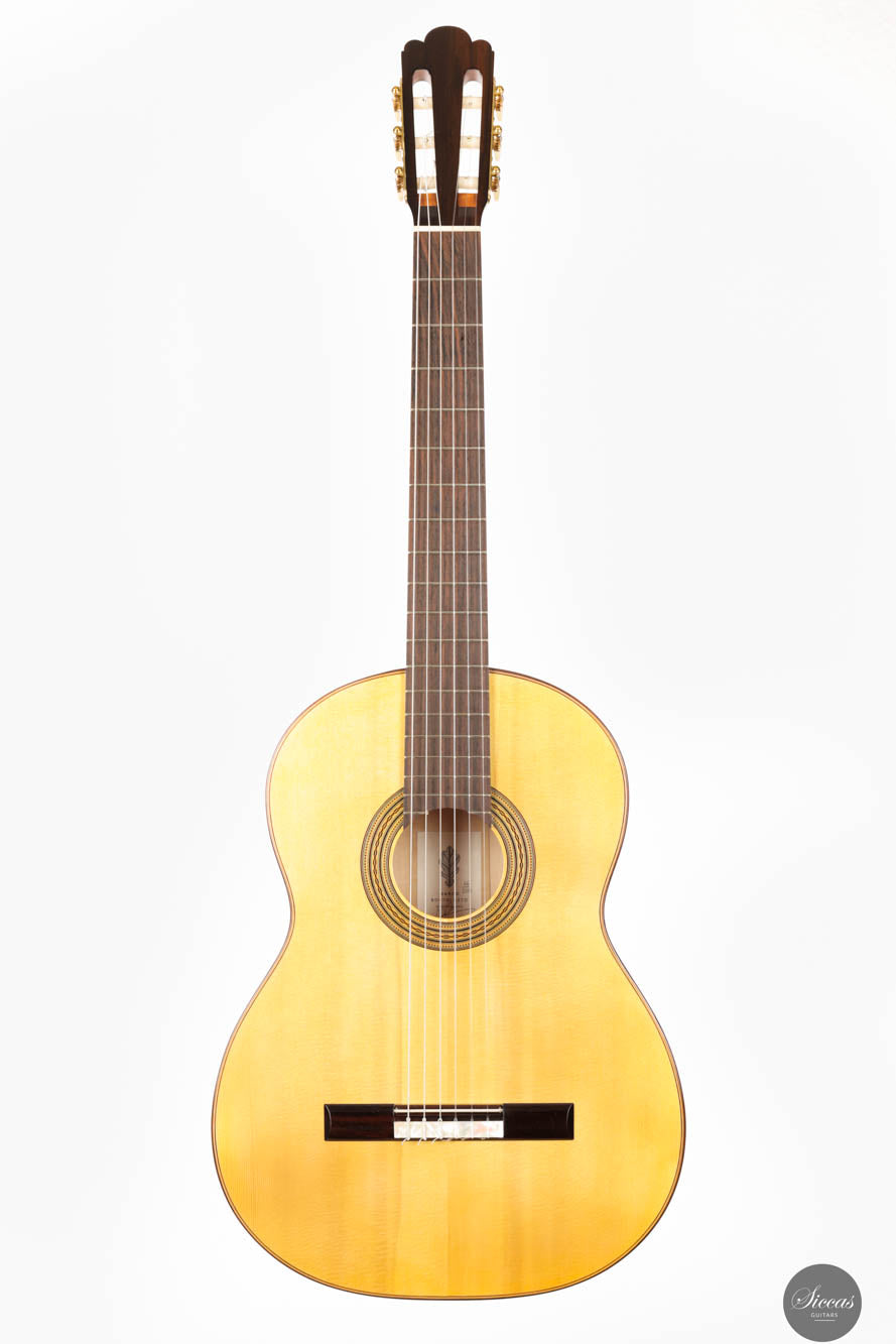 Since 2010, Marco Bortolozzo has distinguished himself in the craft of building traditional classical guitars, demonstrating remarkable skill from the outset. His creation, guitar numbered 66, draws inspiration from the iconic Antonio de Torres FE09, mirroring its historic template and decorative style. The FE09 model, renowned for being the favored guitar of Miguel Llobet, represents a pinnacle in classical guitar design, known for its profound musical expression and aesthetic beauty. Marco's homage to this tradition is evident in instrument 66, which stands out not only for its faithful adherence to the FE09's design principles but also for its exceptional craftsmanship. This guitar features a visually stunning three-piece bird's-eye maple back, alongside the finest selection of woods for its construction. The addition of Alessi tuners and the inclusion of a Hiscox Pro II case further underscore the premium nature of this guitar, making it a significant acquisition for any enthusiast.