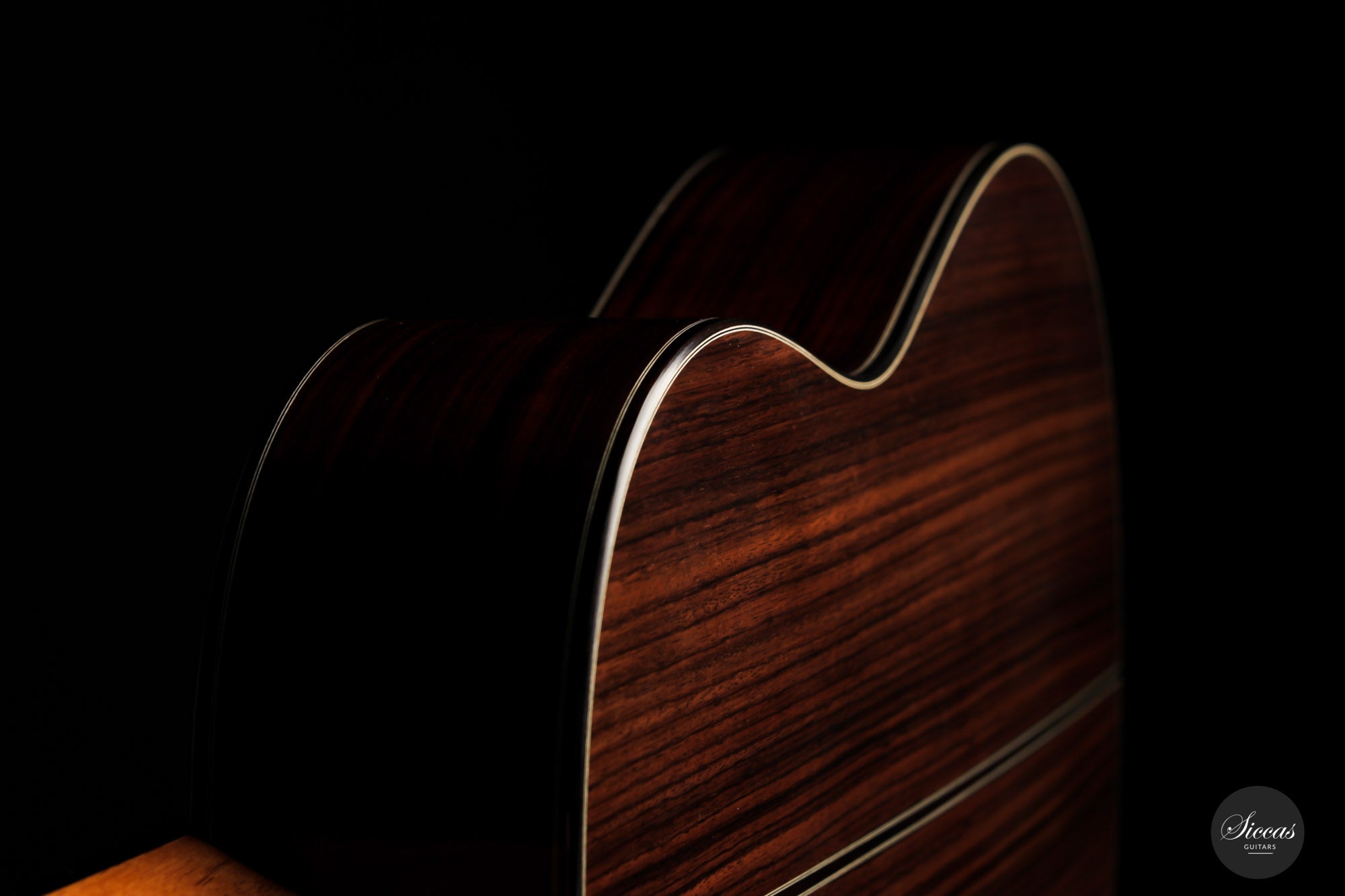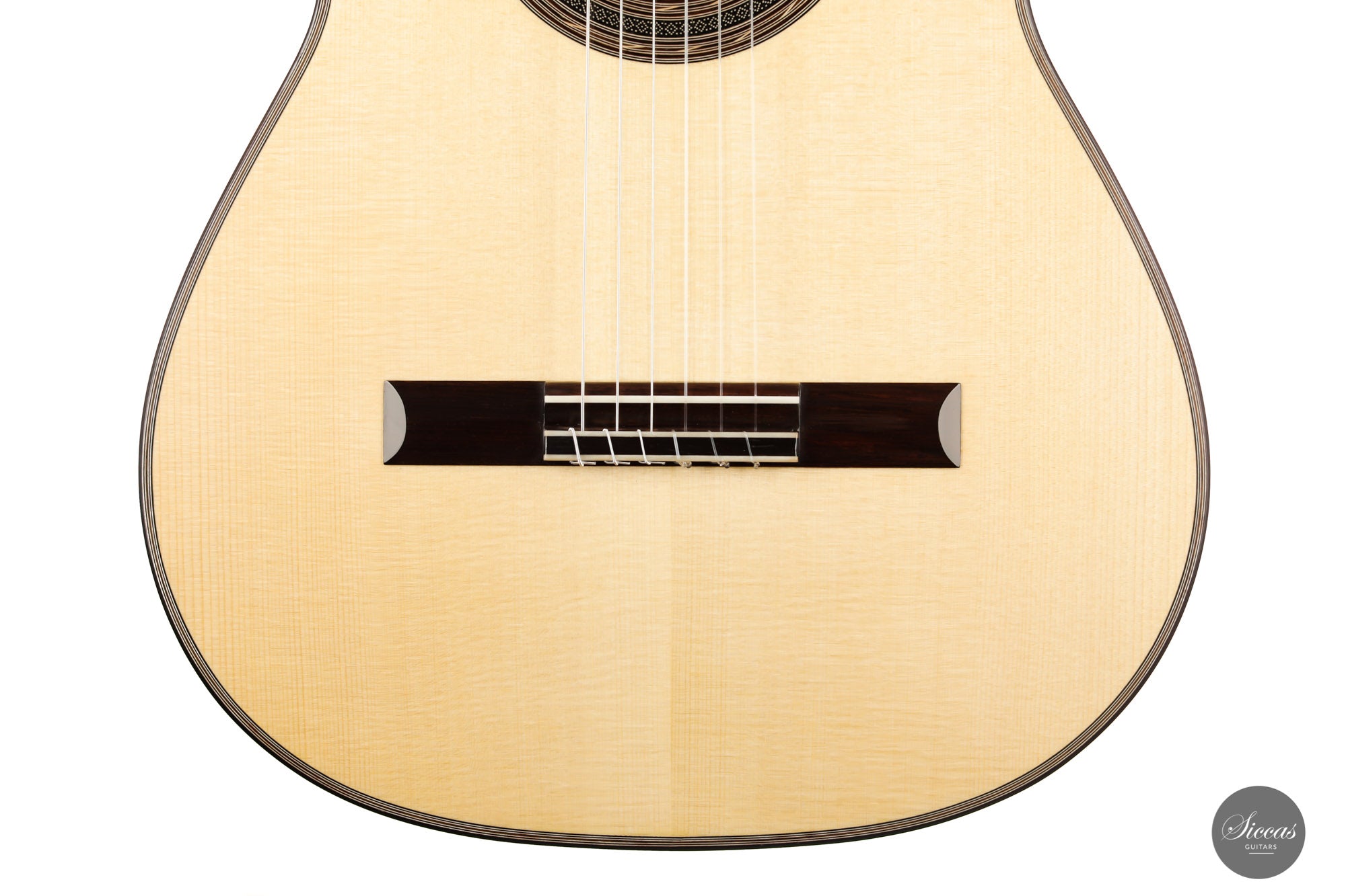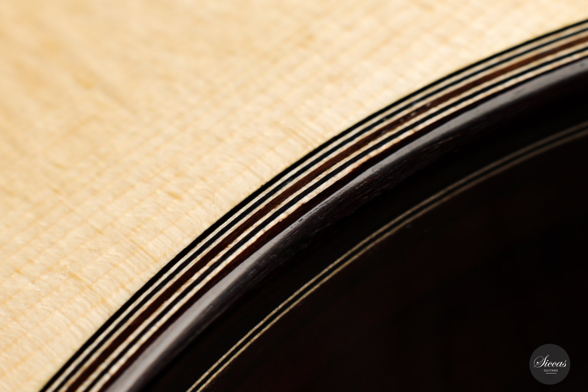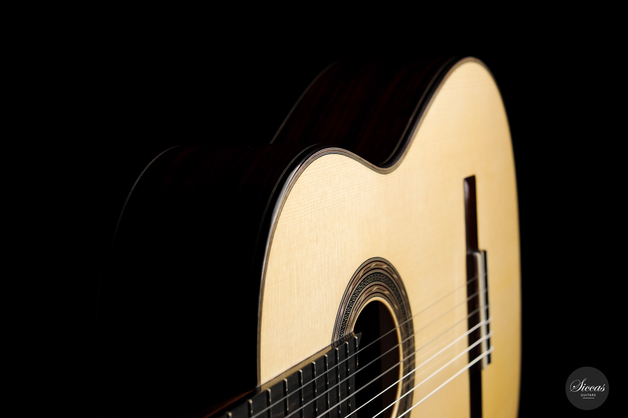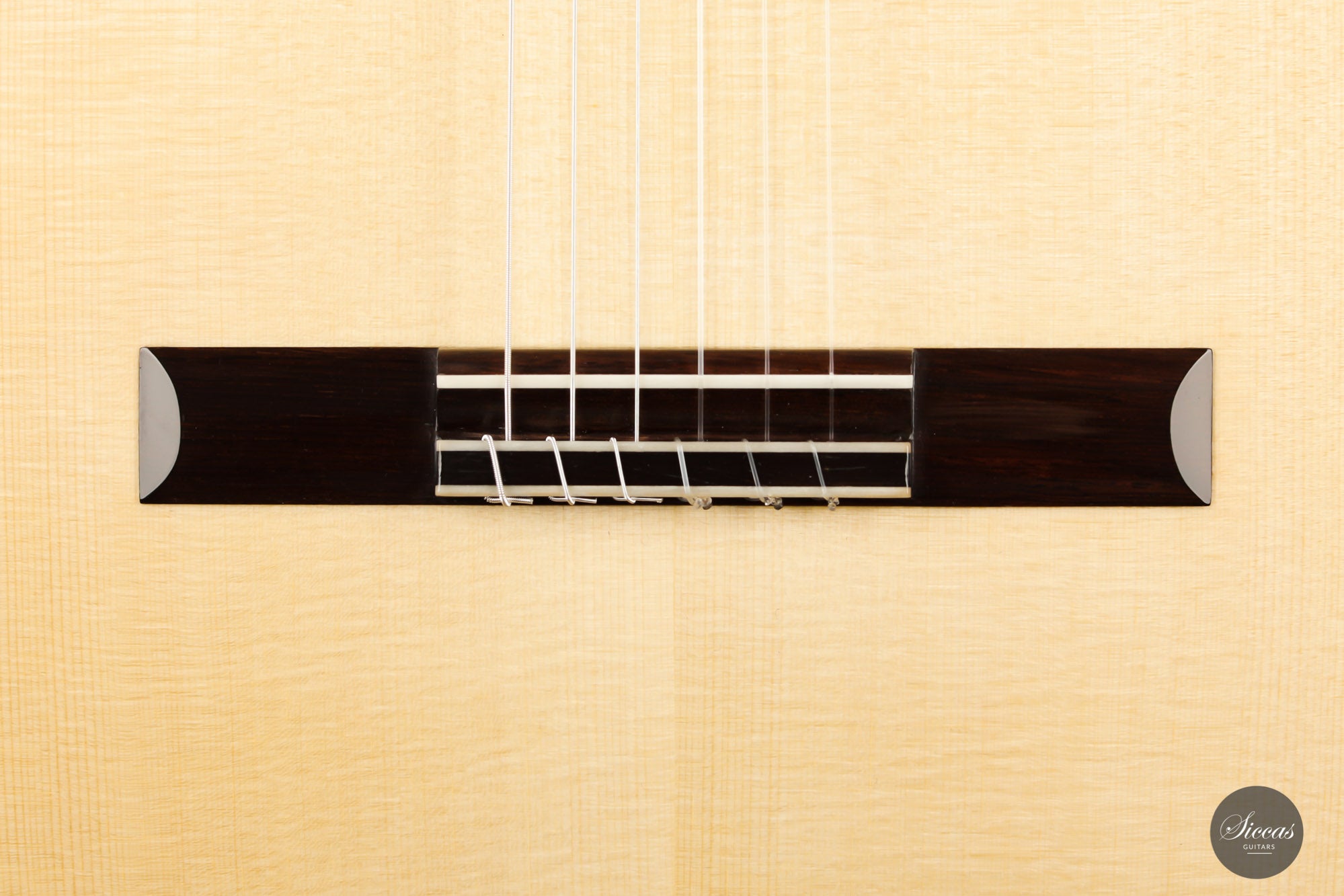 This lightweight instrument shows the impressive craftsmanship of the young Italian luthier. It is a very sensitive instrument with an immediate response. Its lightweight makes this traditionally built Gilioli very comfortable to play, giving the player a pleasant feedback. Exploring the dynamics of this guitar, one immediately notices how inspiring it is to play, responding to a delicate touch with a tremendous sweetness usually found on vintage instruments. The exquisite sound combined with the convincing dynamic capabilities makes it a remarkably rewarding and true concert guitar.