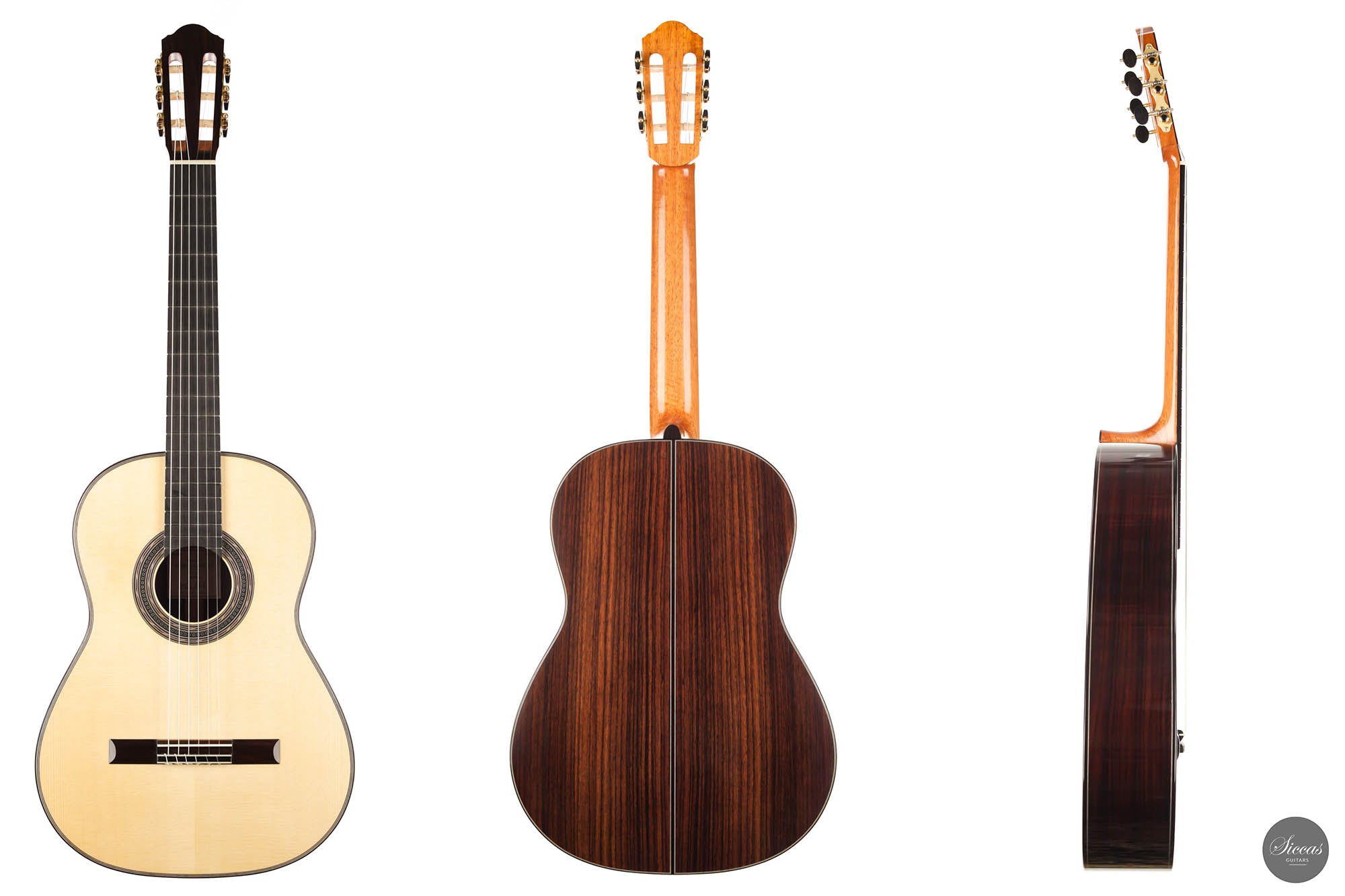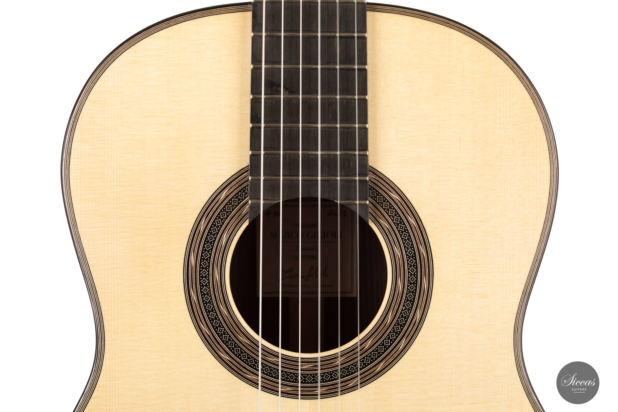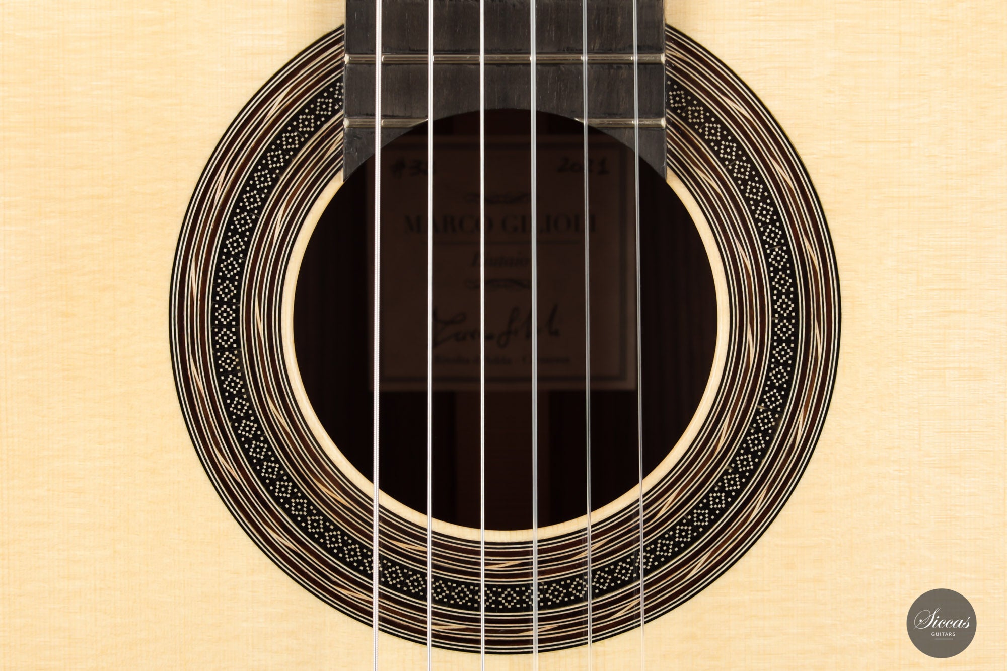 Marco Gilioli is a very talented Italian luthier based near Milan, Italy. His instruments are built according to the traditional Spanish method, focusing on both the sound and the needs of the guitarist. A sweet, soft, and well-balanced tone, with deep basses and clear trebles, characterize his guitars. The playability and sound projection are also very important for Marco. As a result, his instruments are very charming, easy to play, and suitable for concert players as well as for amateurs of fine guitars.