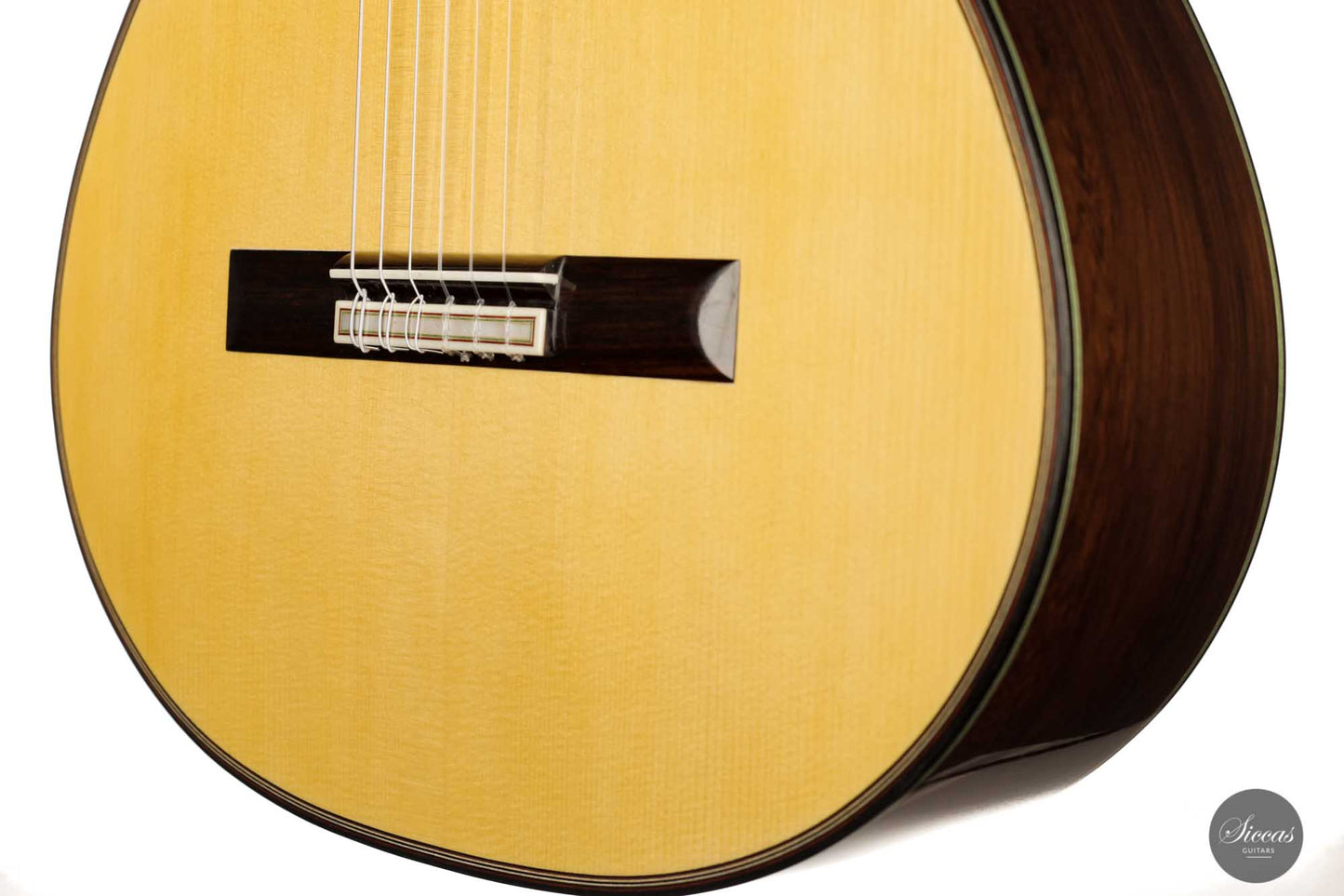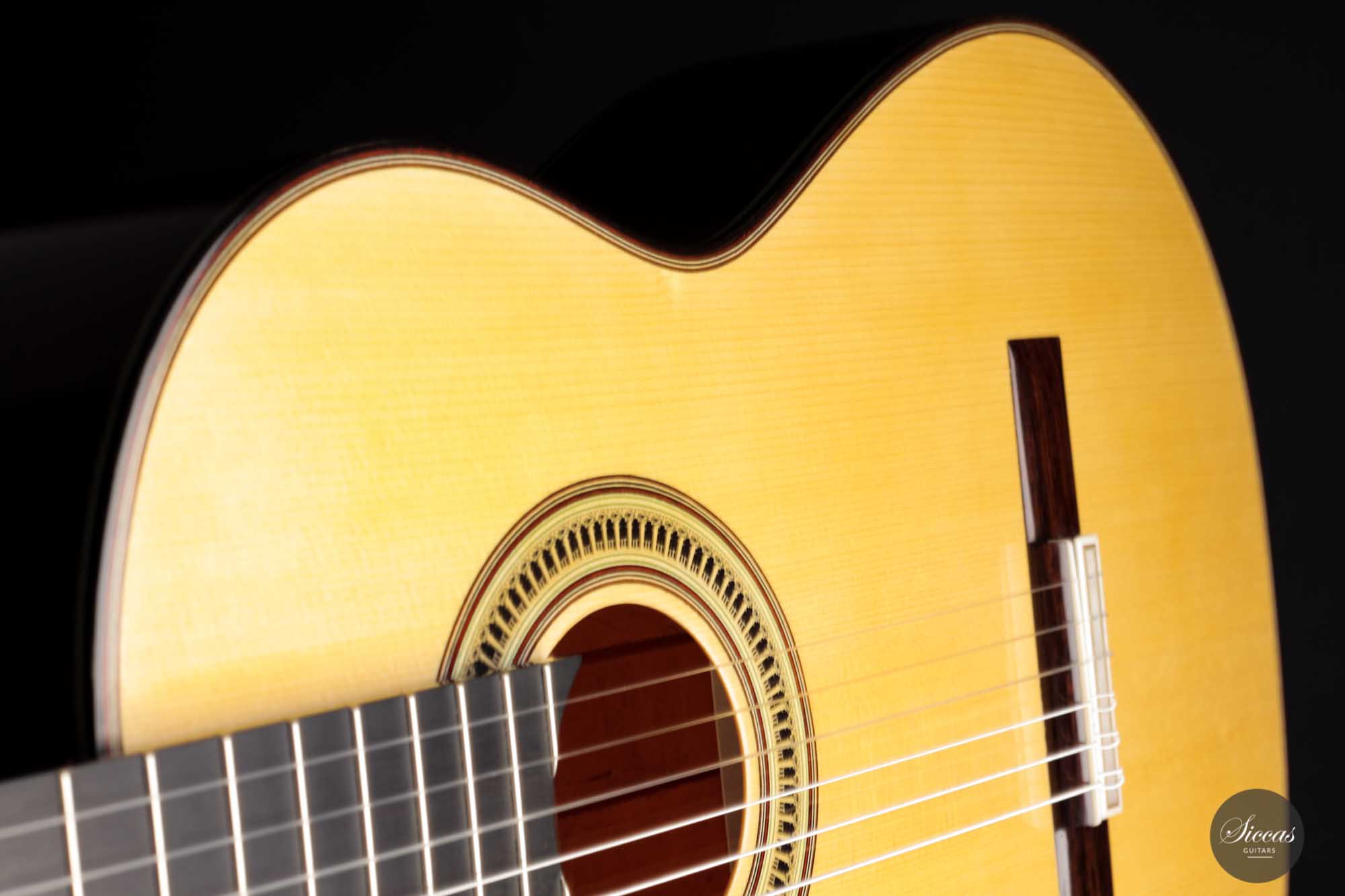 As always with Marco's guitars, this is a lightweight, traditional powerhouse. The responsiveness, volume and overall energy of this instrument are a revelation. With lyrical baryton basses and crystal clear, strikingly coloured trebles, this is a sound you won't forget. On top of that, the playability is superb, resulting in an inspiring instrument that is a joy to play and supports the player in every way.