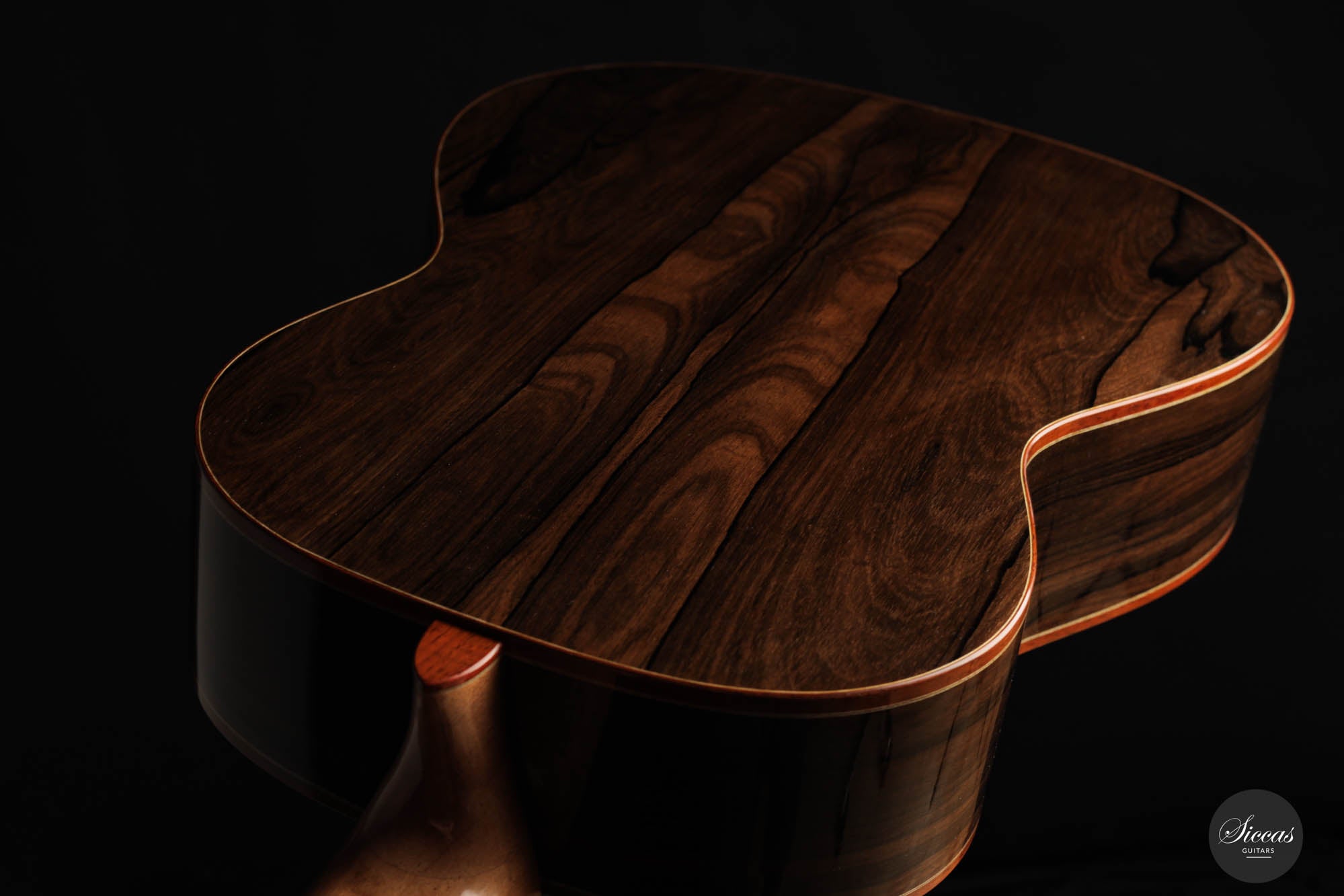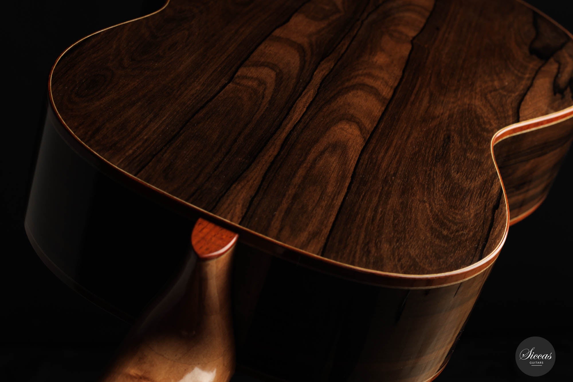 The 2023 Marie Lequeux guitar stands as a testament to intricate engineering. It features five fan bracings, two horizontal bars, and a bridge bar - a structural design that is not just robust but also enhances the overall volume and projection.