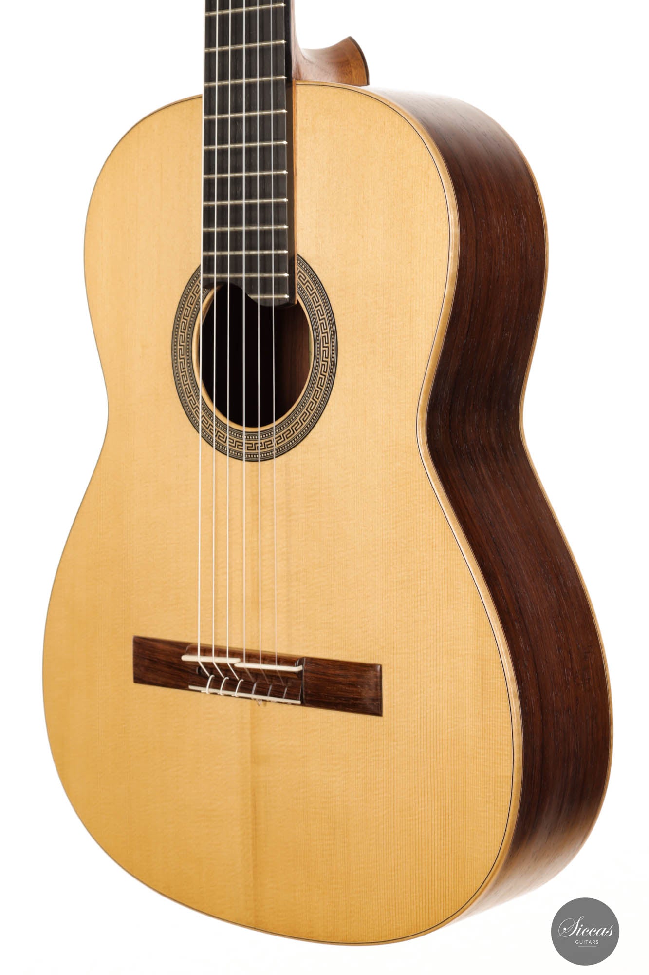 The classical guitar, with its soft nylon strings and characteristic timbre, has become a symbol of chamber music, Spanish tradition, and concert repertoire. Its modern form was shaped by Antonio de Torres in the 19th century, setting the standard for the body, fan bracing, and the 65-centimeter scale length that are still used today. Instruments in this category open up a rich palette from the refined Romantic miniatures of Tárrega to the majestic concertos of Rodrigo. Here you will find guitars that preserve historical continuity and at the same time inspire new interpretations.