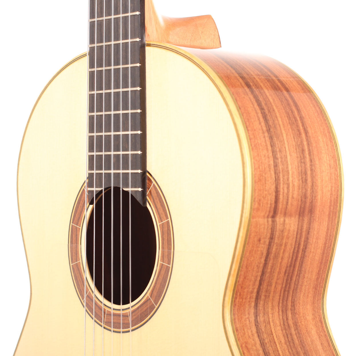 The classical guitar, with its soft nylon strings and characteristic timbre, has become a symbol of chamber music, Spanish tradition, and concert repertoire. Its modern form was shaped by Antonio de Torres in the 19th century, setting the standard for the body, fan bracing, and the 65-centimeter scale length that are still used today. Instruments in this category open up a rich palette from the refined Romantic miniatures of Tárrega to the majestic concertos of Rodrigo. Here you will find guitars that preserve historical continuity and at the same time inspire new interpretations.Look all products of the collection -