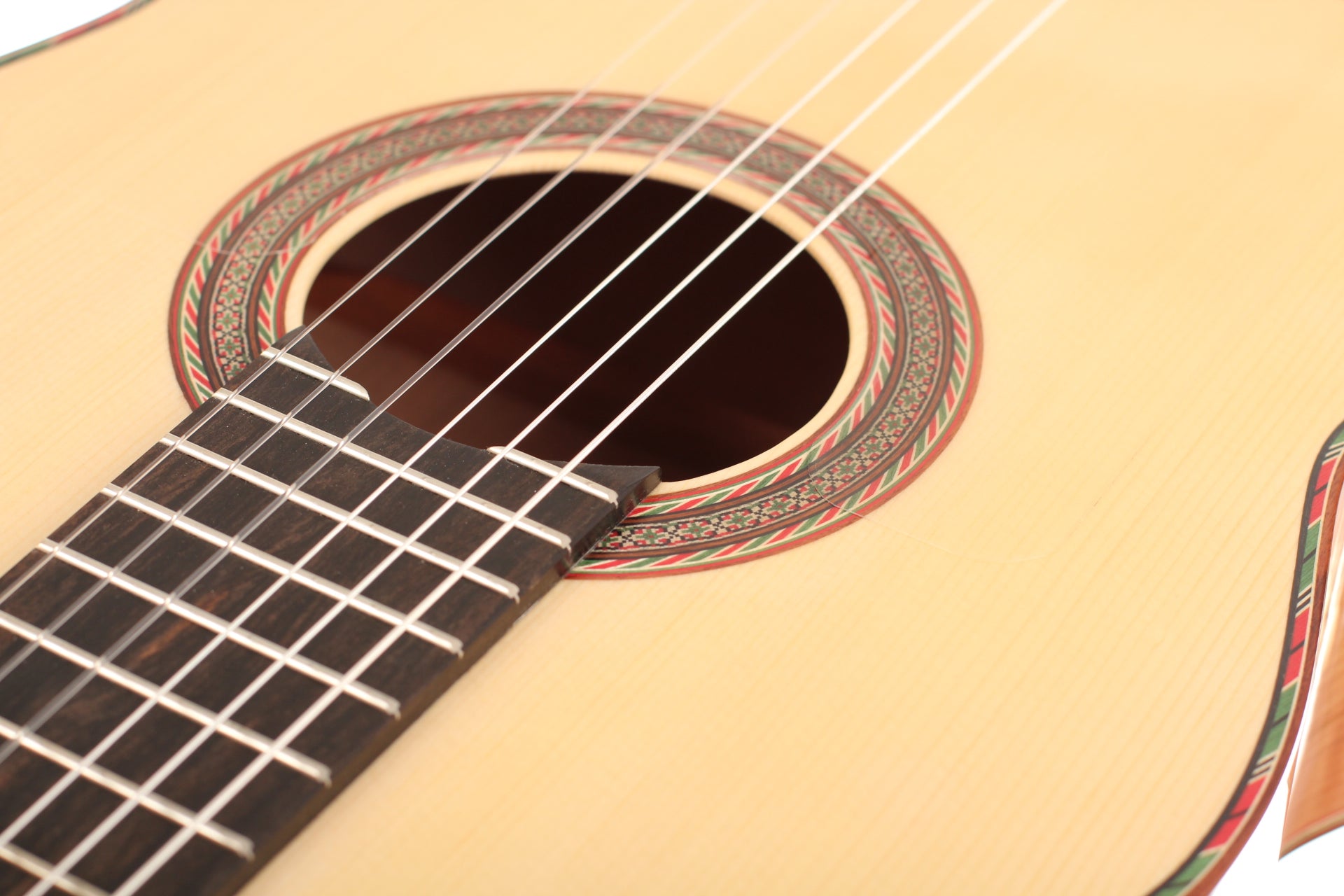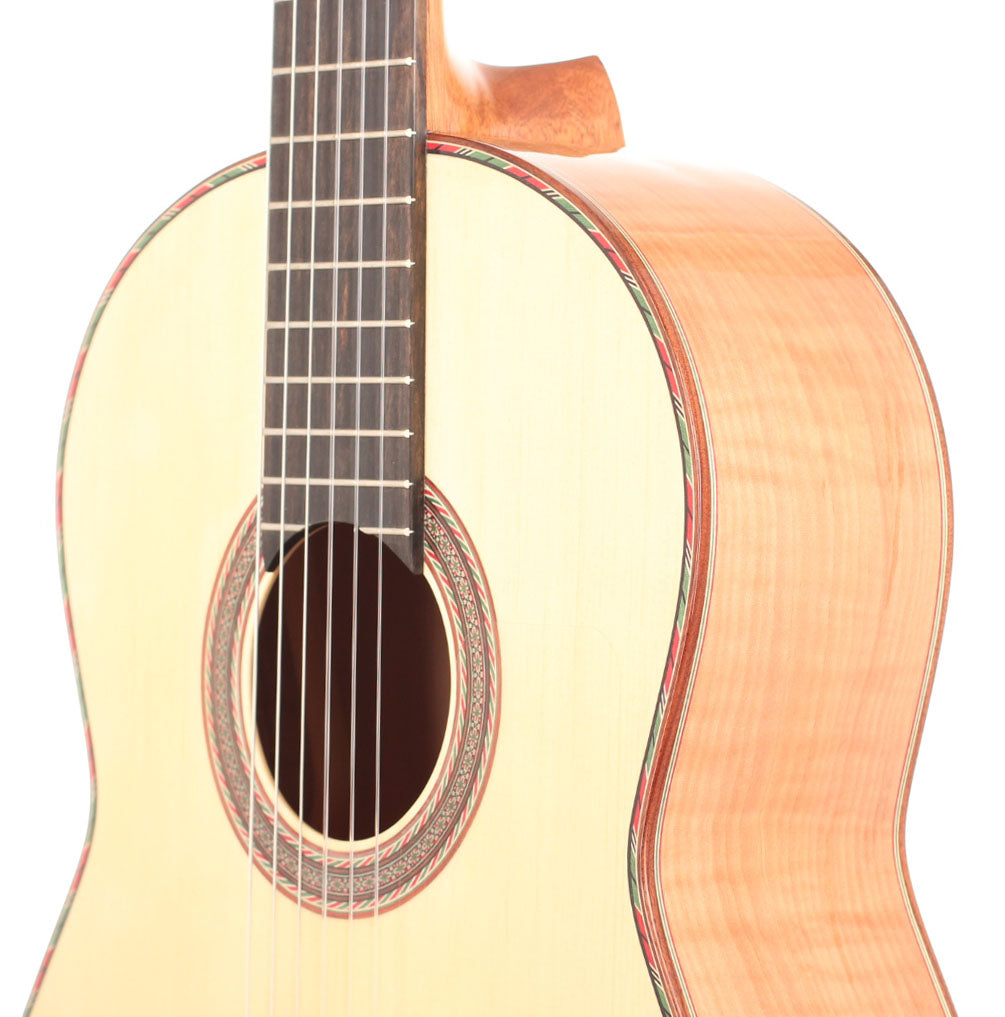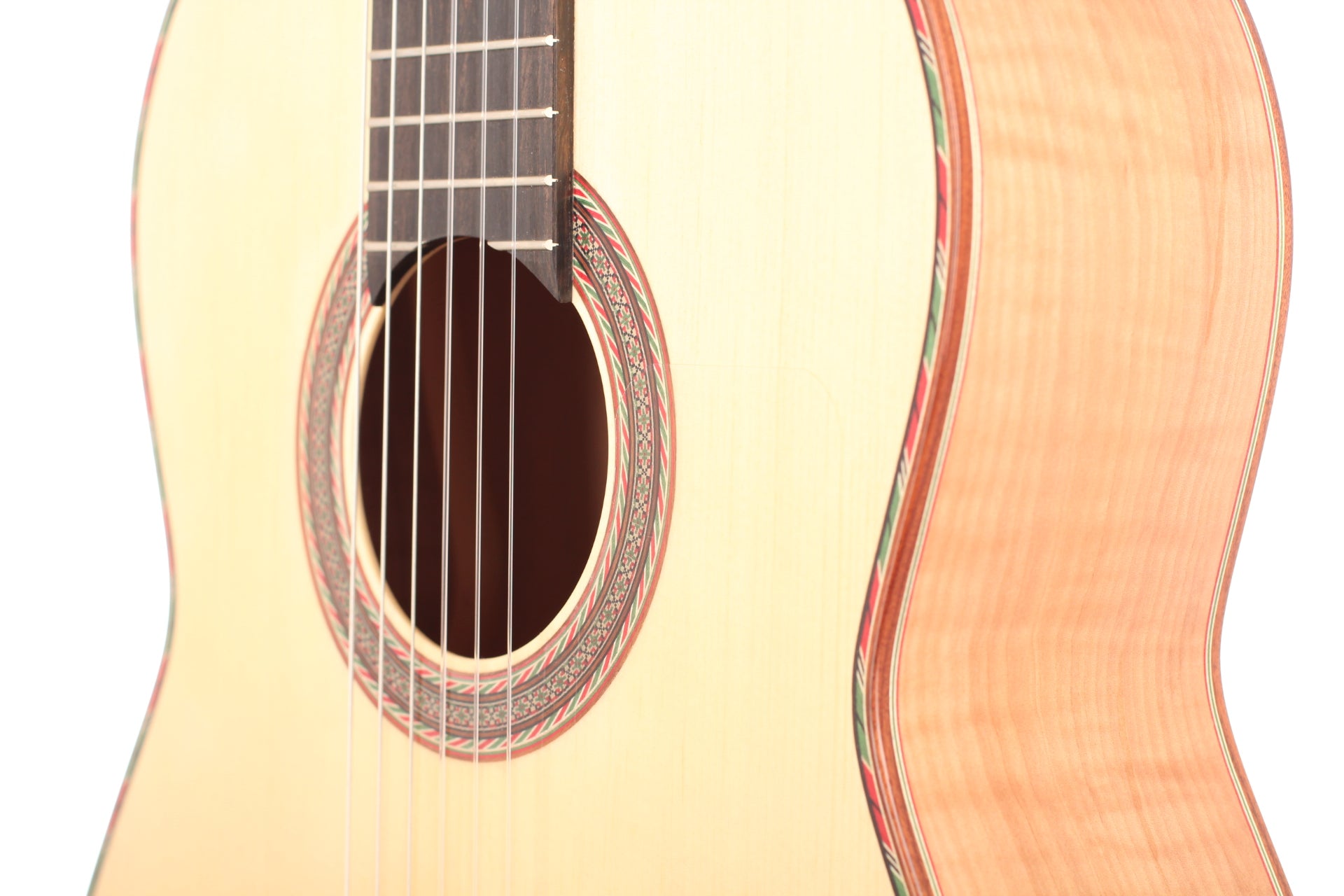 The classical guitar, with its soft nylon strings and characteristic timbre, has become a symbol of chamber music, Spanish tradition, and concert repertoire. Its modern form was shaped by Antonio de Torres in the 19th century, setting the standard for the body, fan bracing, and the 65-centimeter scale length that are still used today. Instruments in this category open up a rich palette from the refined Romantic miniatures of Tárrega to the majestic concertos of Rodrigo. Here you will find guitars that preserve historical continuity and at the same time inspire new interpretations.Look all products of the collection -