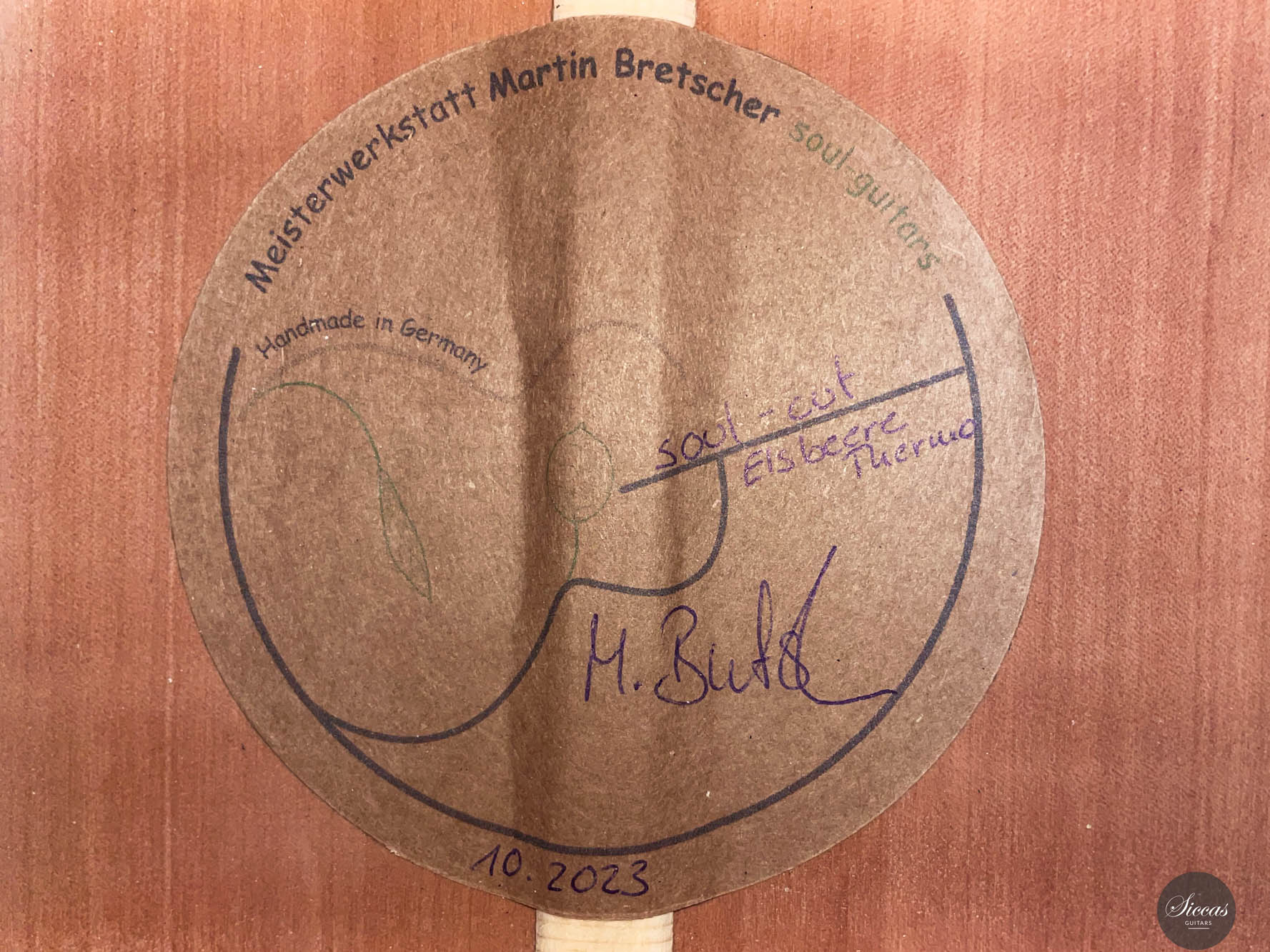 Martin Bretscher is a guitar maker known for his exceptional craftsmanship and dedication to sustainable, fair, and unique guitars. His journey into the world of luthiery began with an apprenticeship as a cabinet maker. In 2003, Martin pursued his guitar-making passion and started his secondary education as a plucked instrument maker with Armin Hanika. He quickly distinguished himself as a talented and dedicated student, earning his master’s certificate in 2007. Martin was awarded the Master Craftsman Prize of the Bavarian State Government in the same year, an honor recognizing his exceptional talent and commitment to his work. In 2020, Martin founded Soul Guitars in Bavaria, which reflects his passion for creating sustainable, fair, and unique instruments. With a deep commitment to environmental sustainability and social responsibility, Martin’s guitars are built with the finest materials and designed to stand the test of time.