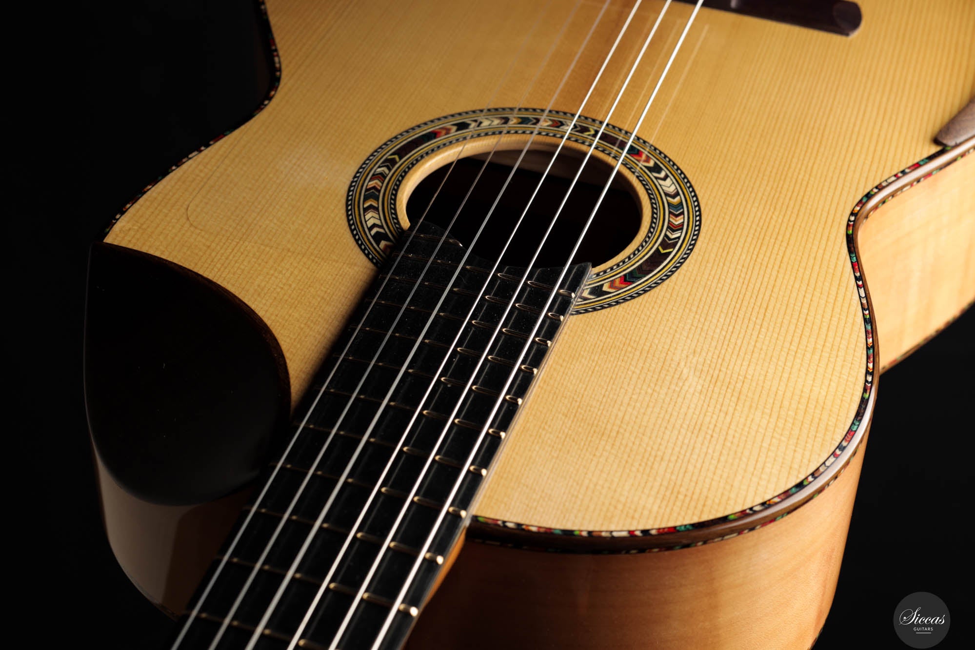 The classical guitar, with its soft nylon strings and characteristic timbre, has become a symbol of chamber music, Spanish tradition, and concert repertoire. Its modern form was shaped by Antonio de Torres in the 19th century, setting the standard for the body, fan bracing, and the 65-centimeter scale length that are still used today. Instruments in this category open up a rich palette from the refined Romantic miniatures of Tárrega to the majestic concertos of Rodrigo. Here you will find guitars that preserve historical continuity and at the same time inspire new interpretations.