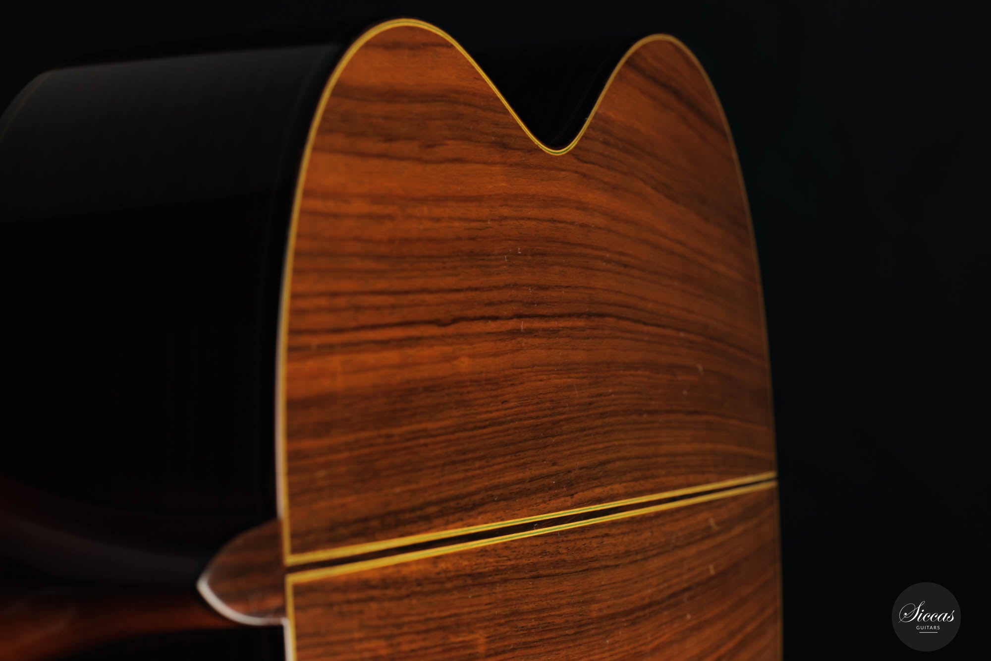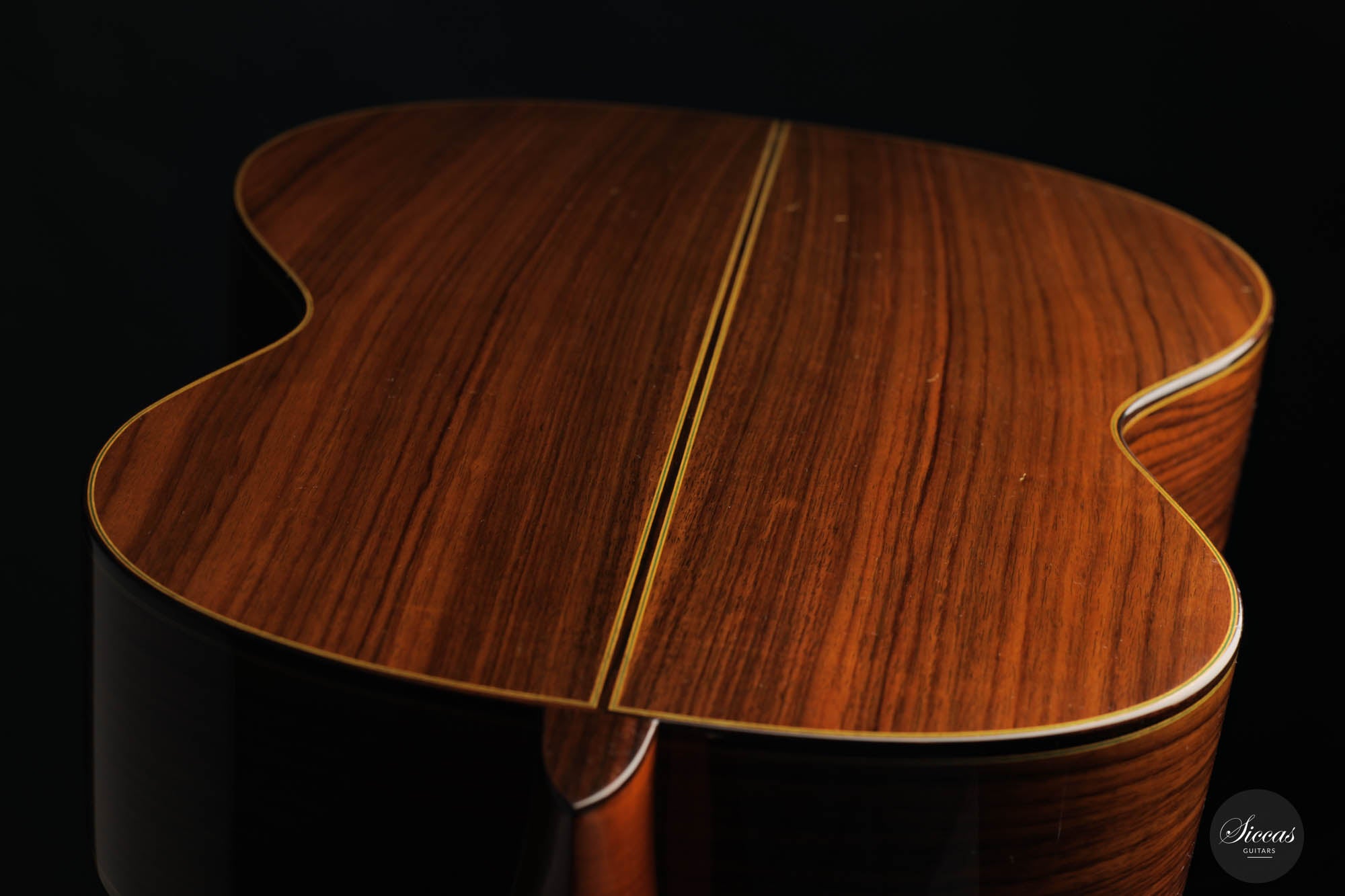 The Masaru Kohno No. 10 from 1973 is a stunning guitar that will impress any guitarist. This exceptional instrument is characterized by its balanced tonal quality across the fingerboard, making it ideal for playing various styles and genres. The cedar soundboard is a key factor in the guitar's warm and round timbre, which is sure to delight even the most discerning musicians. Despite being a pre-loved instrument, this Kohno No. 10 is in very good condition, with several playing wears and no structural issues. This is a testament to the high quality of craftsmanship that went into its creation and the care and attention it has received over the years. One of the standout features of this guitar is its beautiful Indian rosewood back and sides, which give it an eye-catching appearance that is sure to turn heads. This, combined with exceptional sound quality and playability, make this instrument a true gem. For guitarists looking for a concert instrument at an affordable price, this Kohno No. 10 is a rare opportunity that should not be missed. It is an exceptional guitar that will inspire and delight for years.