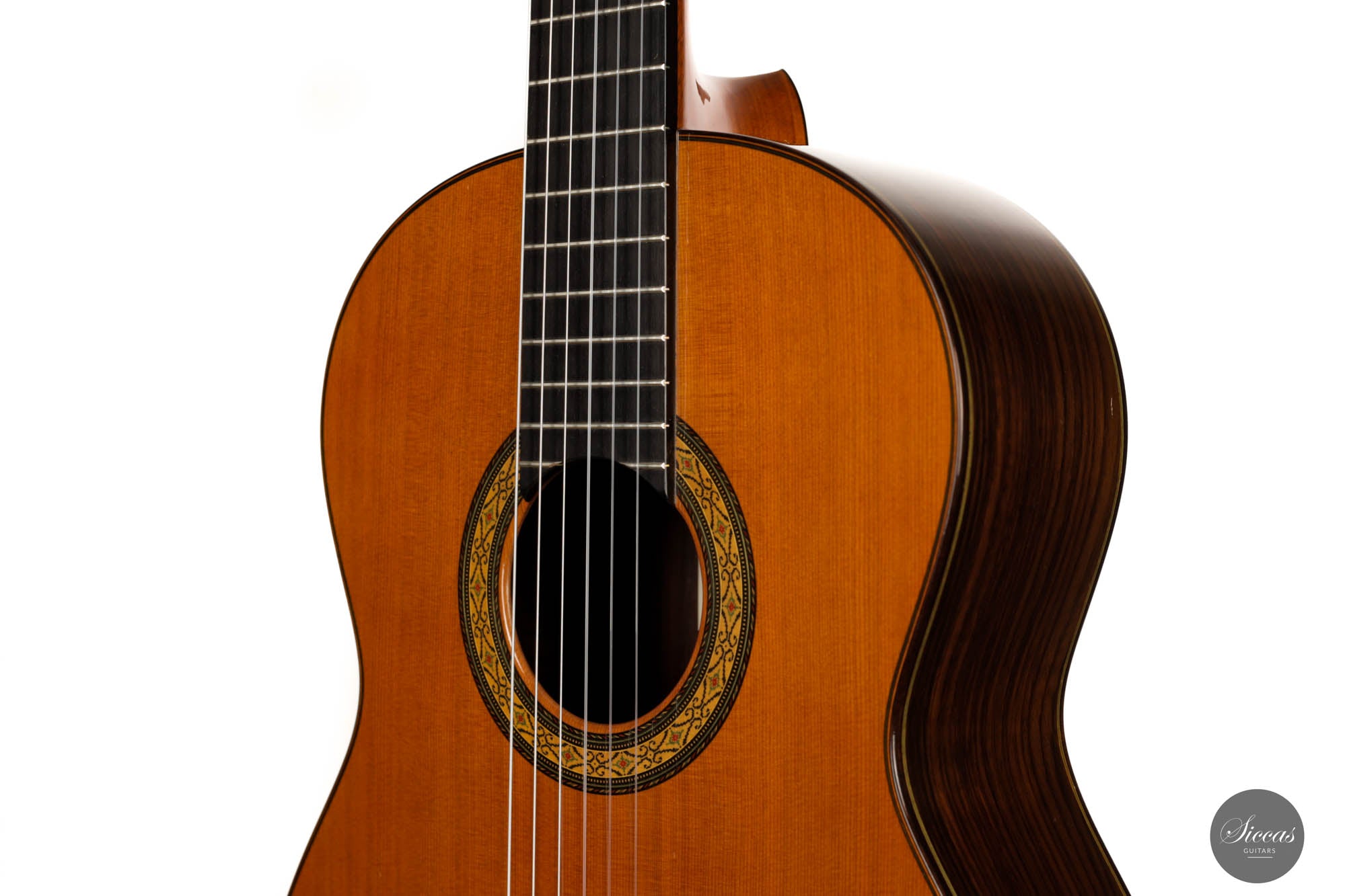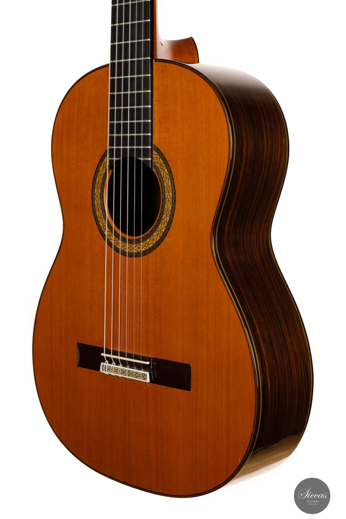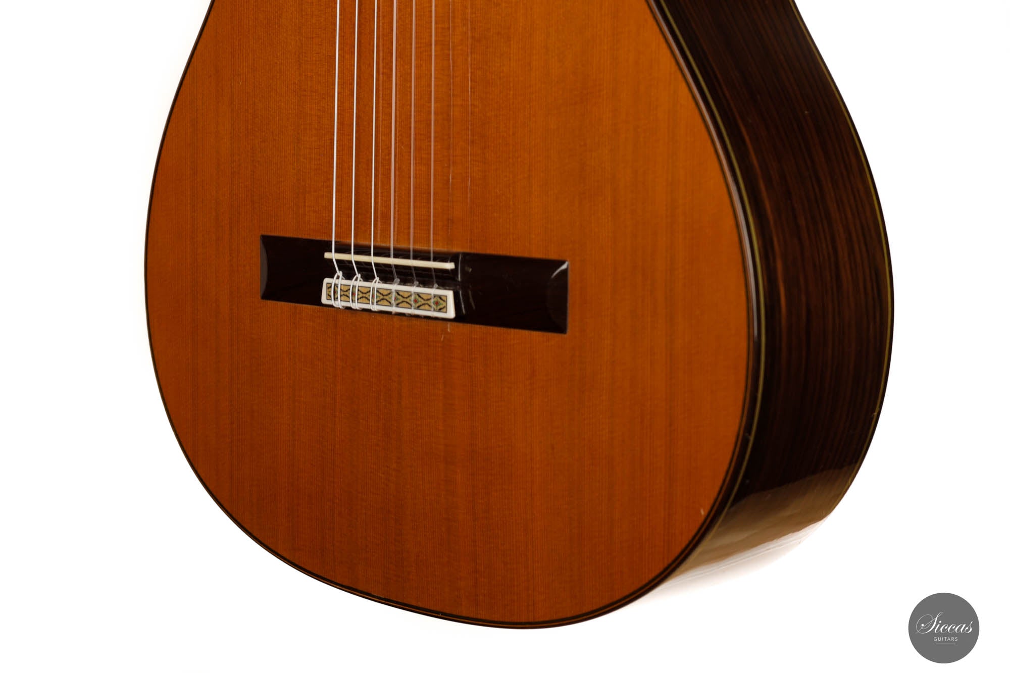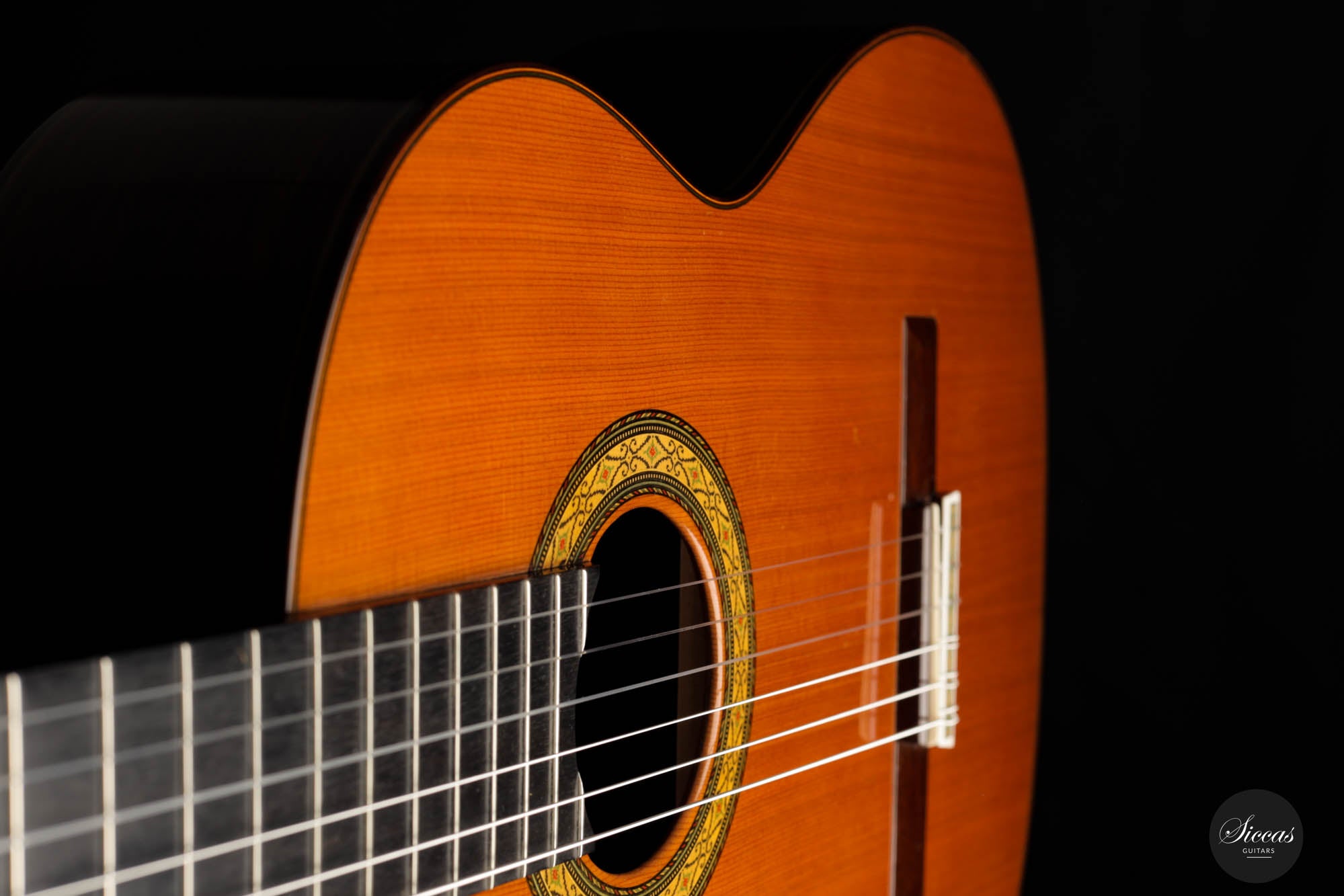 Masaru Kohno (1926-1998) is an essential figure in Japanese guitar-making history and a visionary luthier. Born in Mito City, Japan, he started his career as a luthier after graduating from the Tokyo College of Arts and Crafts. In 1959, Masaru Kohno traveled to Arcangel Fernandez’s workshop in Spain, where he stayed for six months for an enlightening apprenticeship. A turning point in his career was winning the Gold Medal at the Elizabeth’s Concourse International Guitar Building Competition in Belgium in 1967, which brought him worldwide recognition. The list of players having recorded and performed on Masaru Kohno’s guitar is substantial, and to name a few, Julian Bream, Oscar Gighlia, and Sharon Isbin.