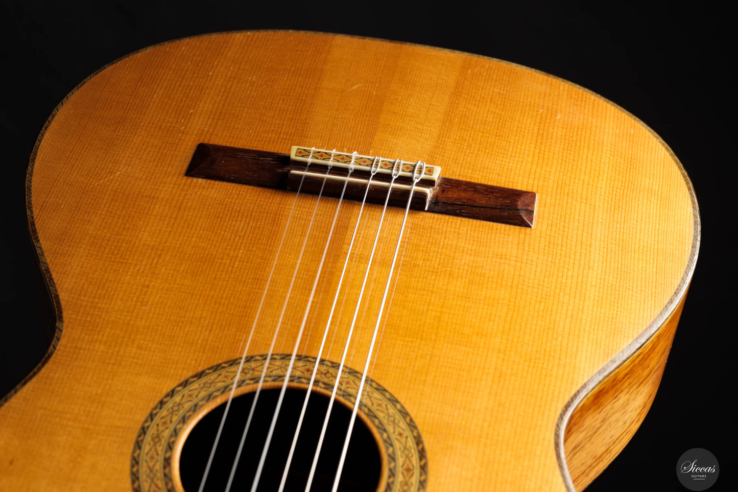 Masaru Kohno (1926-1998) is an essential figure in Japanese guitar making history and visionary luthier. Born in Mito City, Japan, he started his career as a luthier after graduating from the Tokyo College of Arts and Crafts. In 1959, Masaru Kohno travelled to Arcangel Fernandez’s workshop in Spain, where he stayed six months for an enlightening apprenticeship. A turning point in his career was winning the Gold Medal at the Elizabeth’s Concourse International Guitar Building Competition in Belgium in 1967, which brought him worldwide recognition. The list of players having recorded and performed on Masaru Kohno’s guitar is substantial, and to name a few, Julian Bream, Oscar Gighlia, and Sharon Isbin.