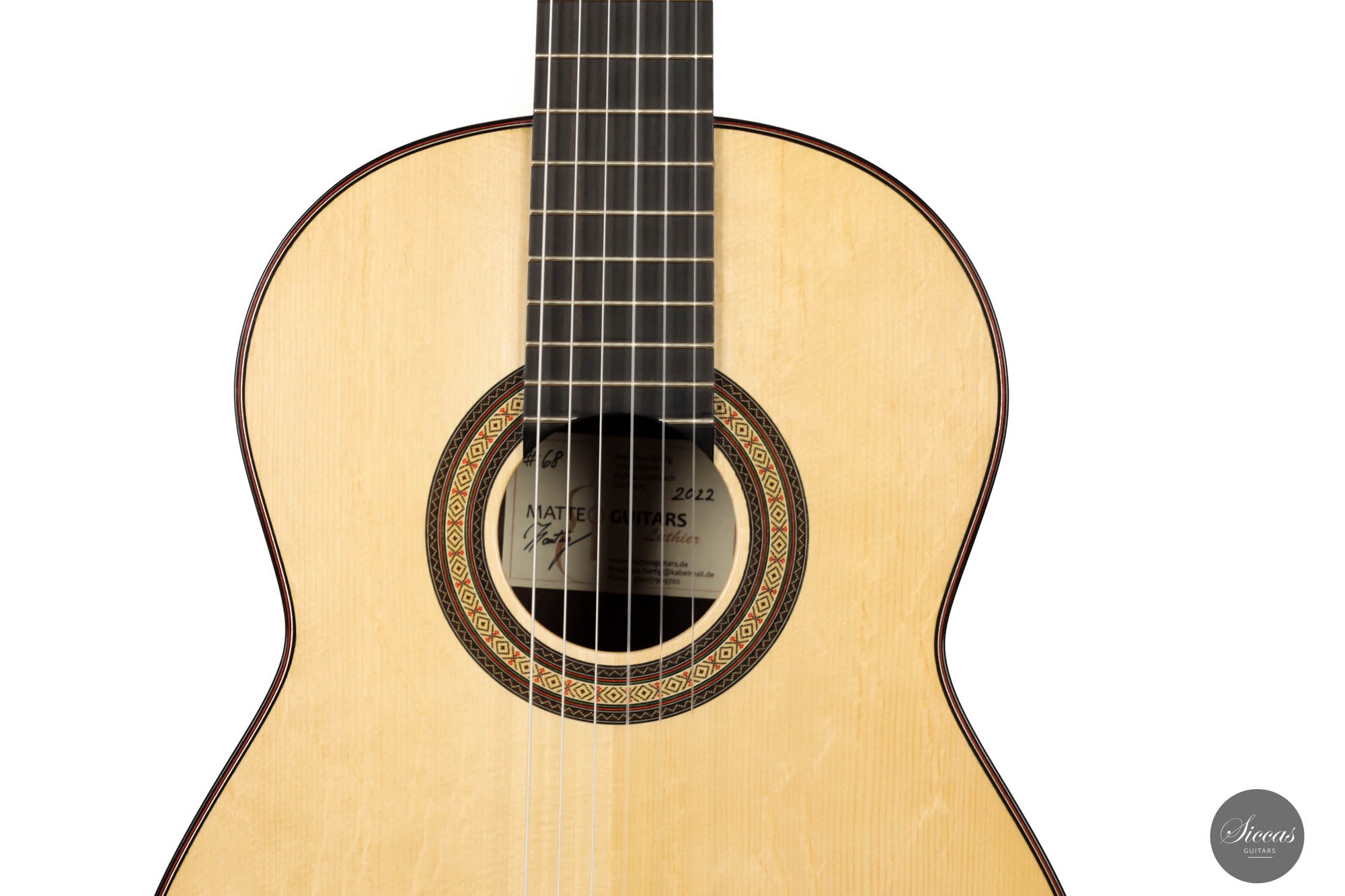 Matthias "Matteo" Hartig is a German luthier from Glattbach, Bavaria. Just like the famous Robert Bouchet, it was only in his forties that he discovered his true vocation in guitar making. His inspiration is the sound of the instruments of the old masters. Especially Torres, Enrique Garcia, Antonio Emilio Pascual and Richard Jacob “Weißgerber”. Matteo is dedicated to traditional building methods, using almost exclusively hide glue for his construction and shellac for the finish.
