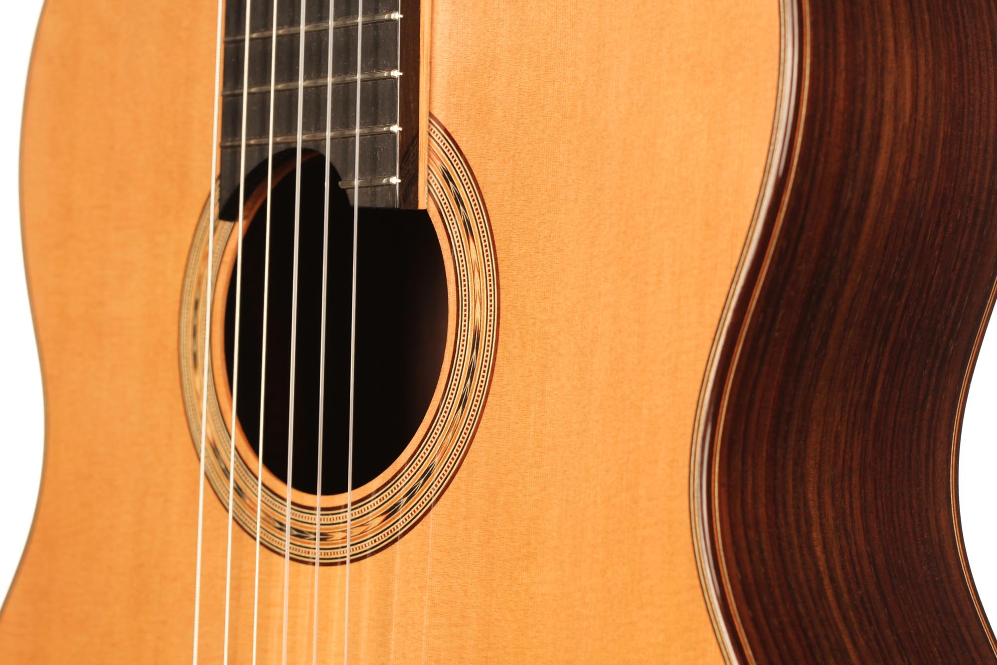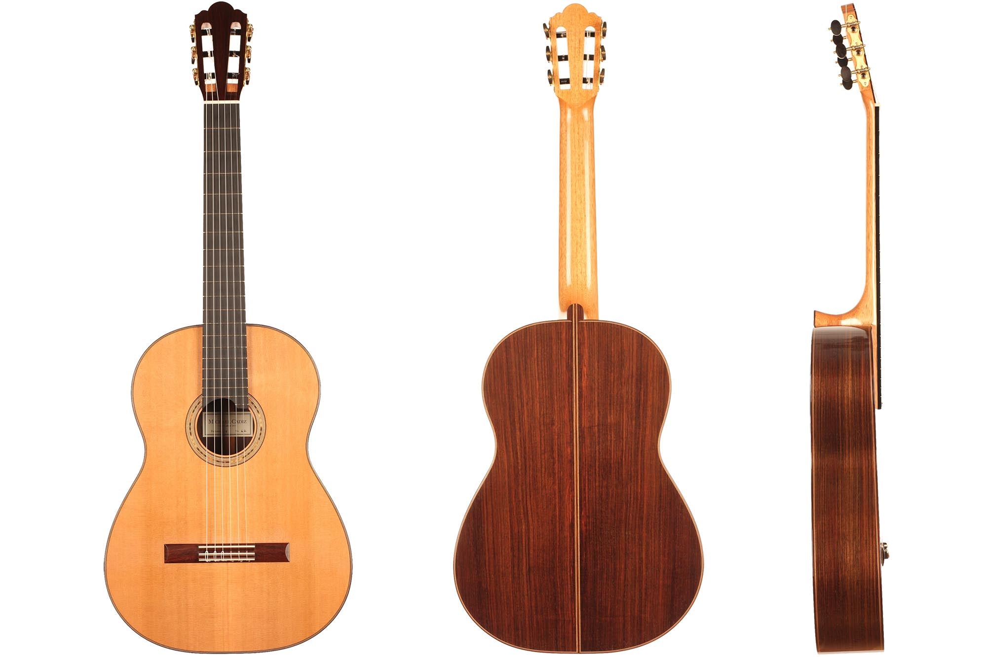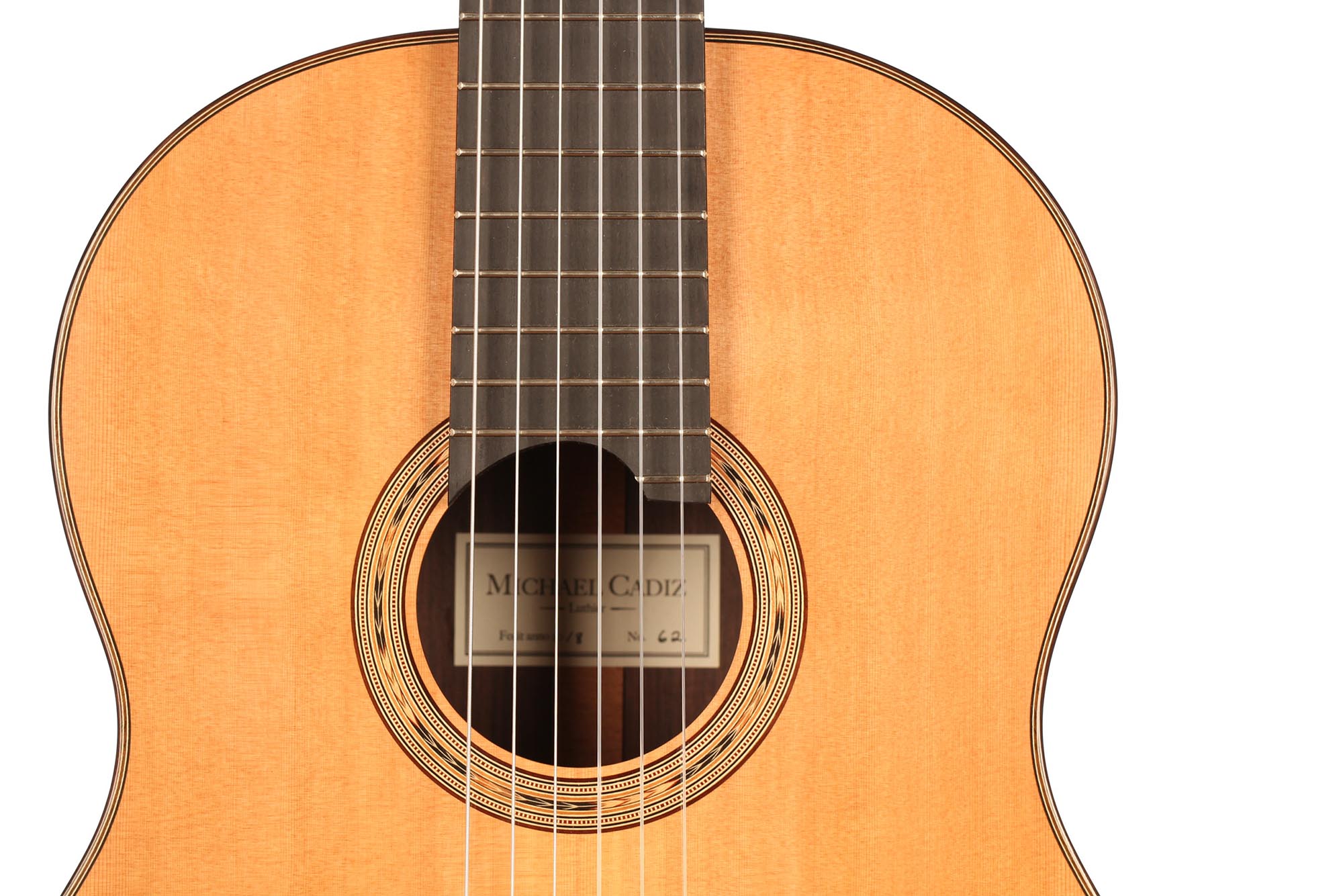 This guitar is the latest concert model built by Michael Cadiz and one must say that it’s a truly inspiring guitar. It has a great volume and projection, with a prodigiously immediate response and an endless sustain. The crystal-clear sound of the instrument goes well along with the rich overtones and sympathetic resonances, which make it a rich singing instrument. Finally, the perfect set up of the guitar and the elevated fingerboard offer an enjoyable playing comfort of the highest level.