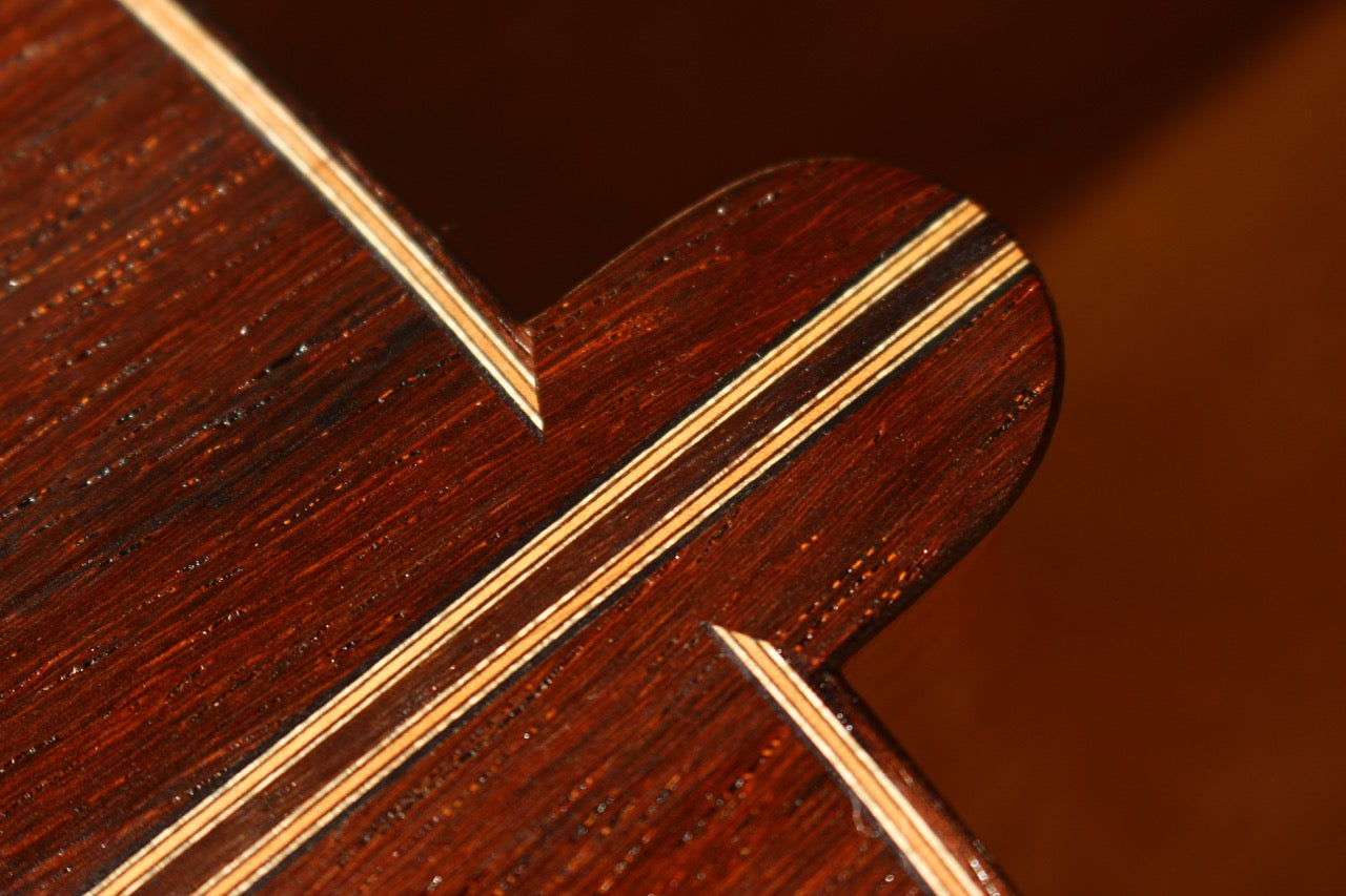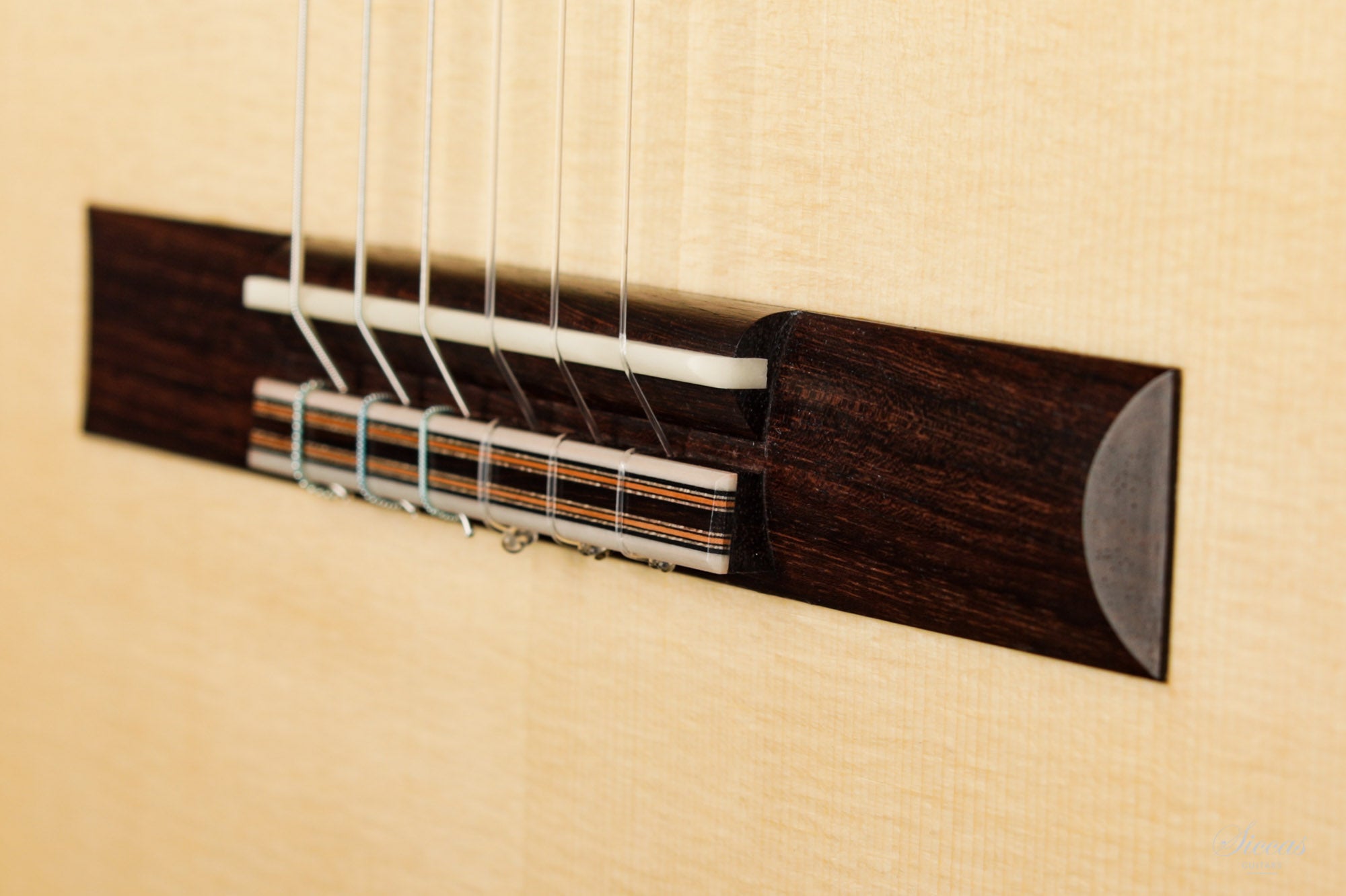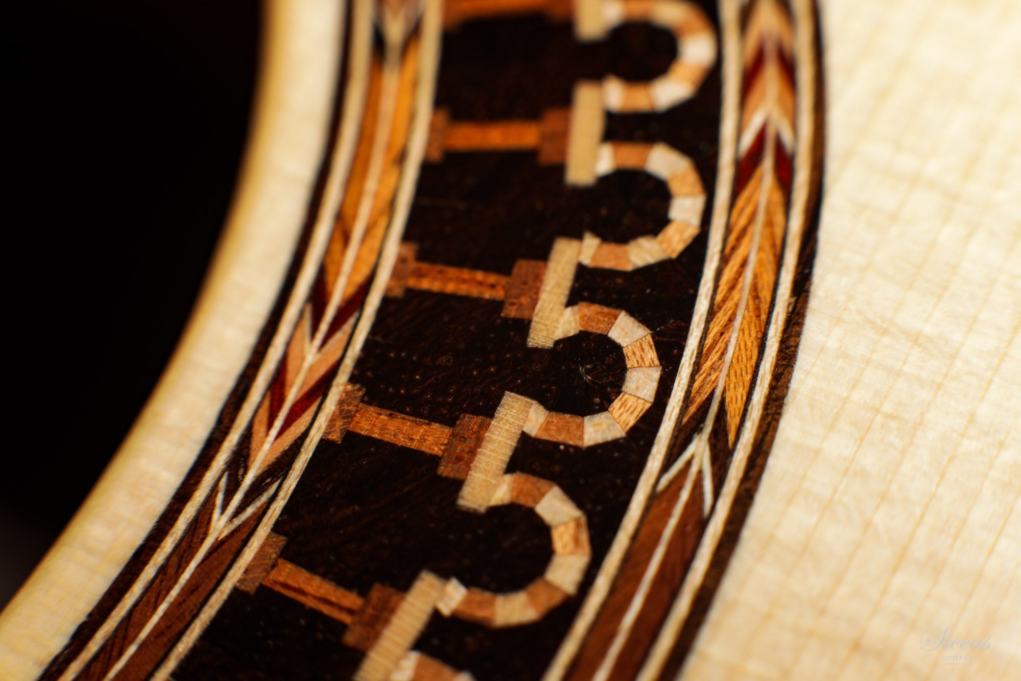 “This model is inspired by the traditional sound of Antonio de Torres and the unmistakable aesthetic of José Romanillos. More specifically, the plantilla and bracing is derived from the 1888 SE114 owned by Francisco Tarrega. It has a very typical deep F to F# body resonance, a dark and velvety warmth, as well as a direct presence and responsive color palette. I have been building variations of this model for years now and it has in most respects remained unchanged. In recent years, I’ve enlarged the plantilla and depth of the instrument just a touch from the original Torres instrument, which makes it a bit closer to a Romanillos or Hauser in size.”