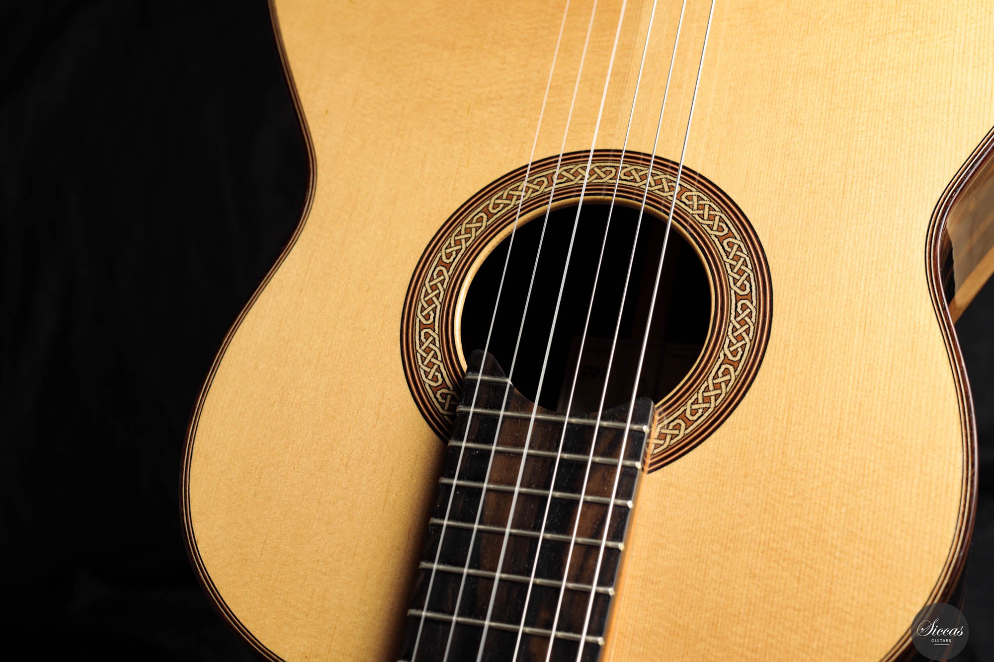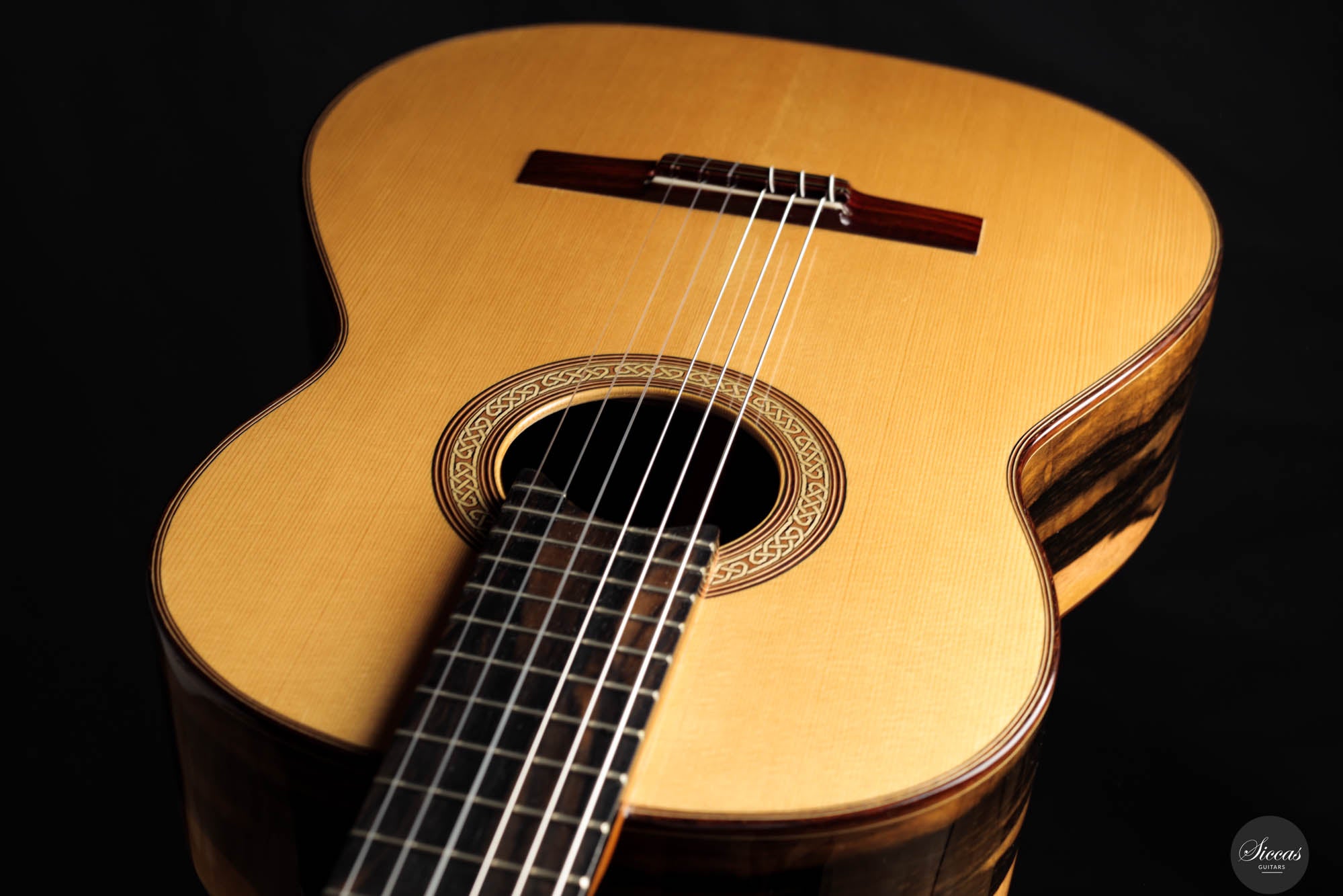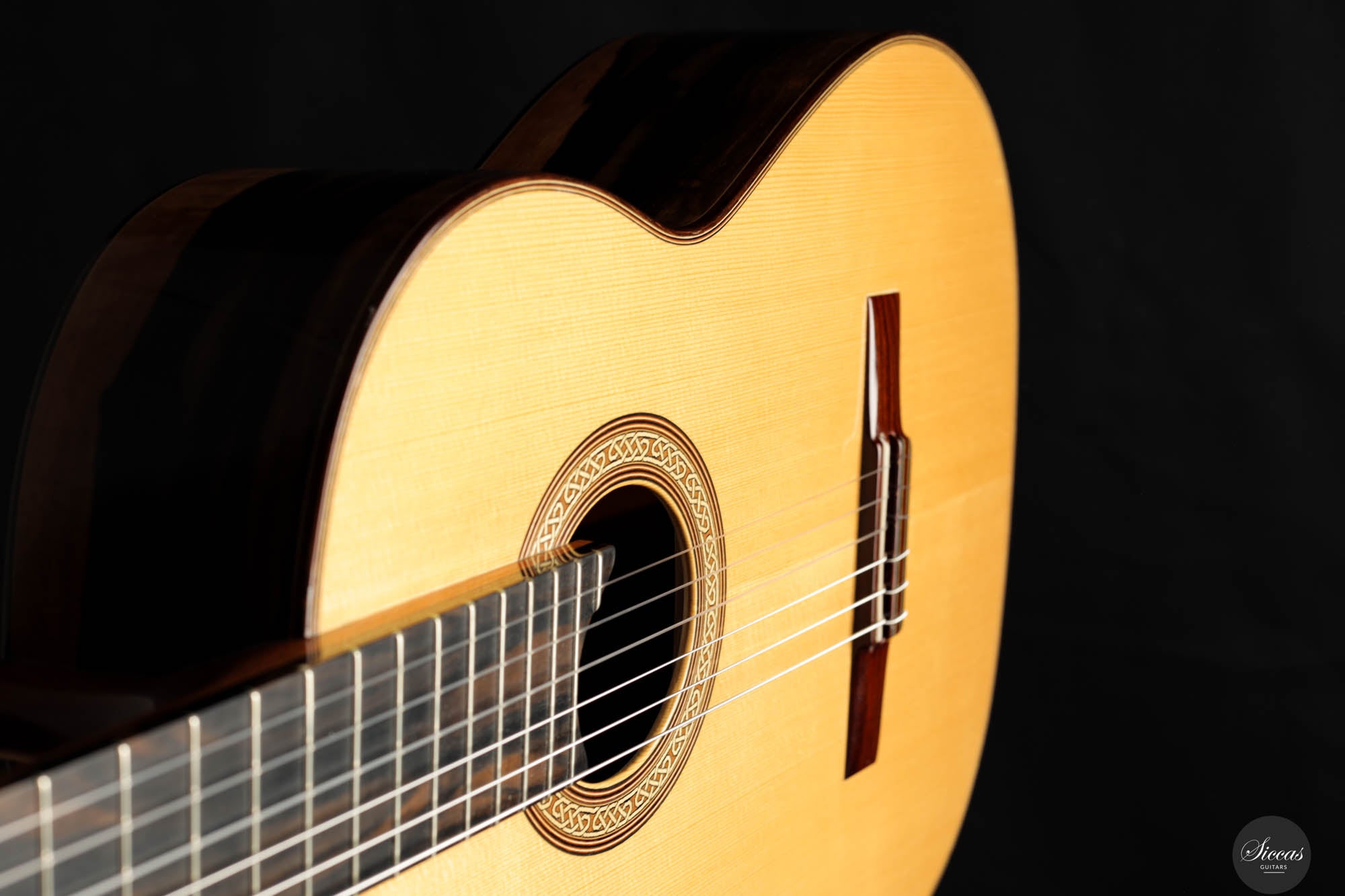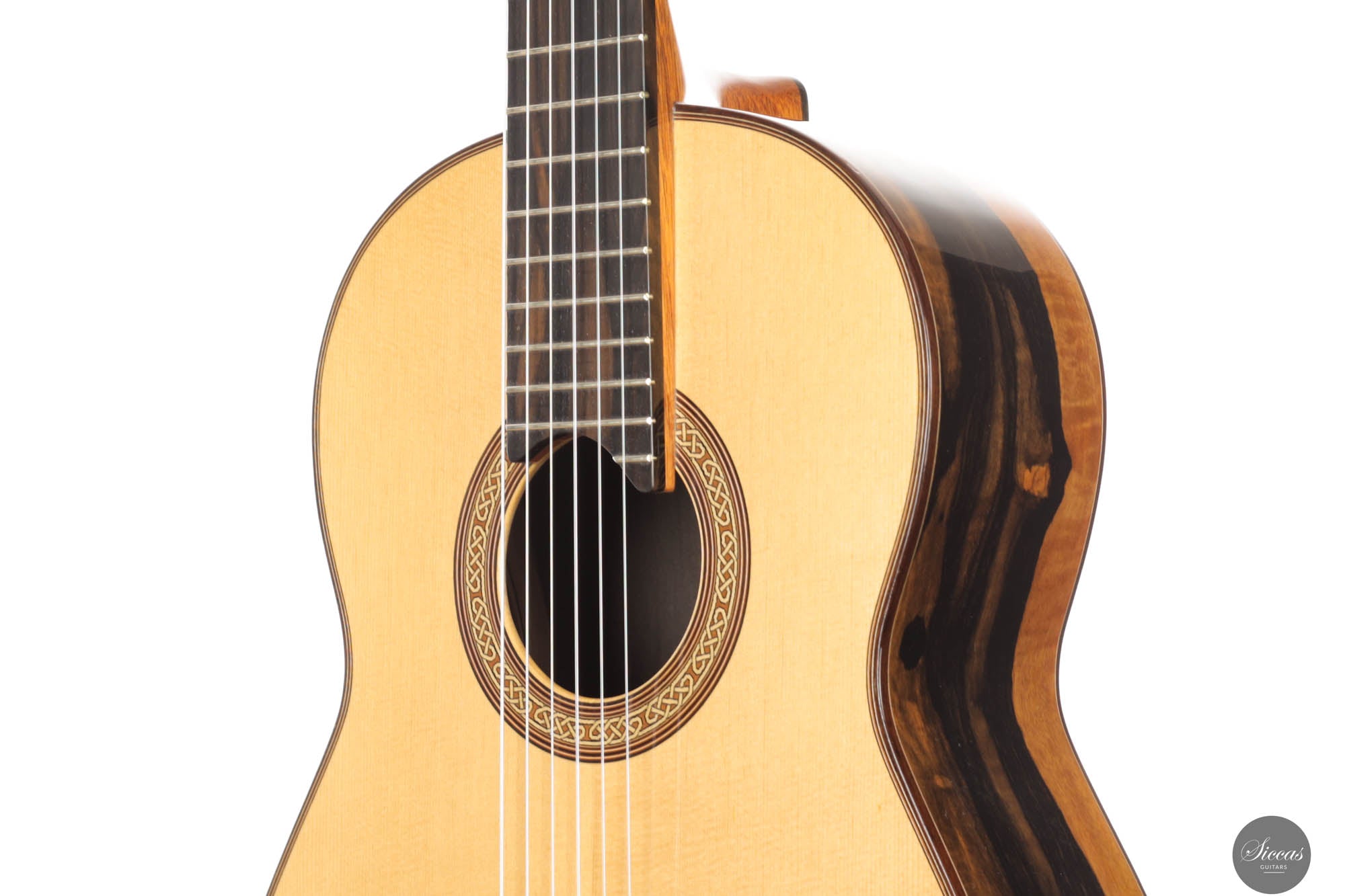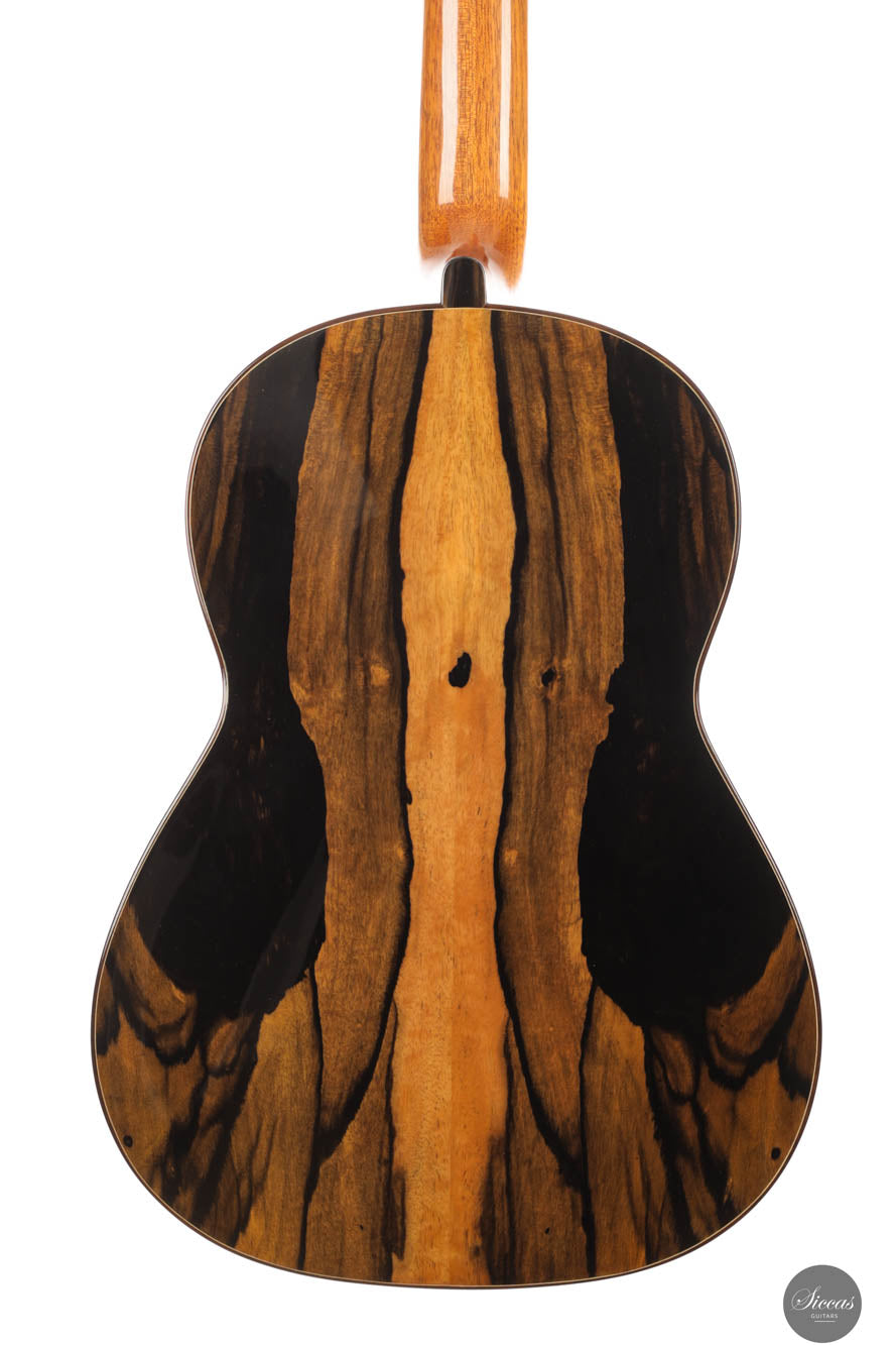 This remarkable guitar from 2021 is the "Exclusive" model, representing the pinnacle of craftsmanship by Michael O’Leary in his Irish workshop. It features a spruce soundboard paired with a stunning African ebony back and sides, showcasing O’Leary’s distinctive design elements such as the intertwined rosette, elevated fingerboard, and braceless back. The construction of this guitar allows for a massive volume while preserving a balanced beauty and subtlety of tone. Its impeccable setup ensures effortless playability. Despite being a second-hand instrument, it remains in excellent condition with minimal playing marks, ready to excel in any concert situation.