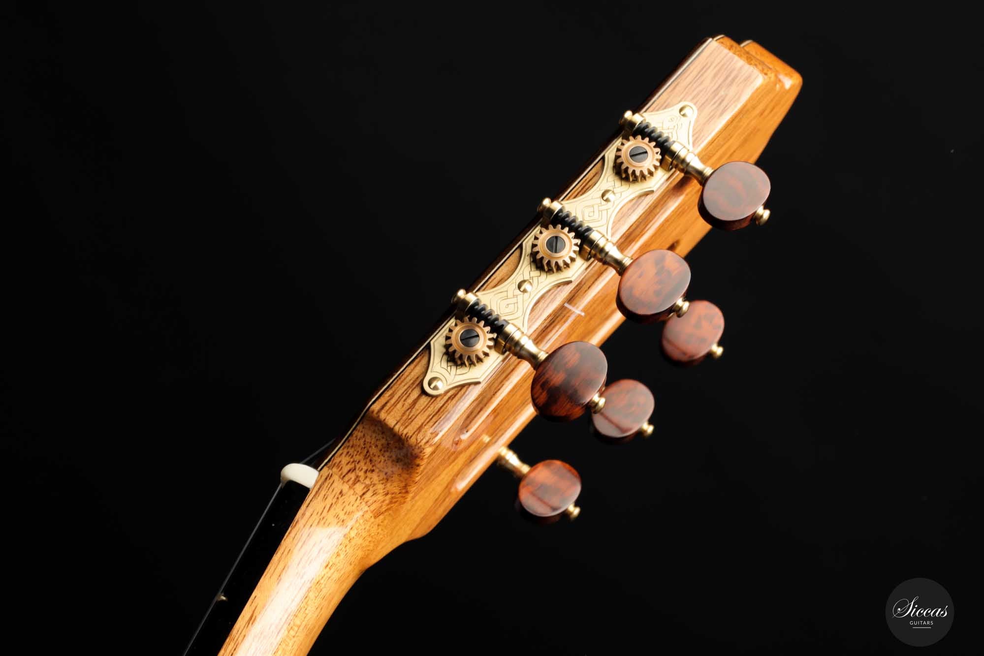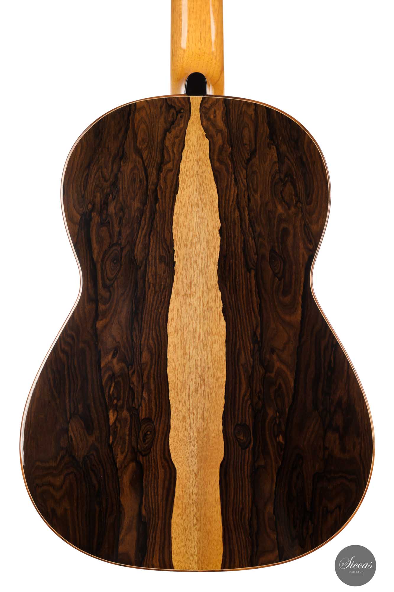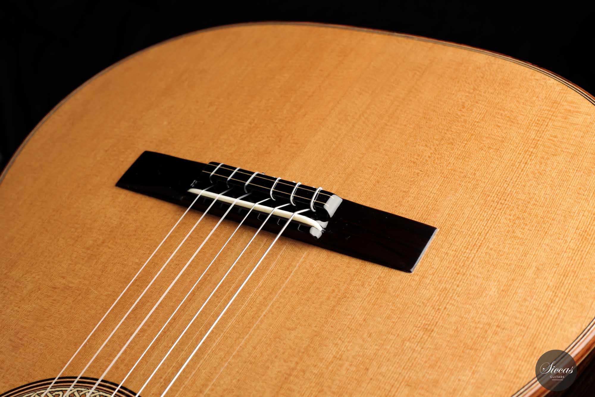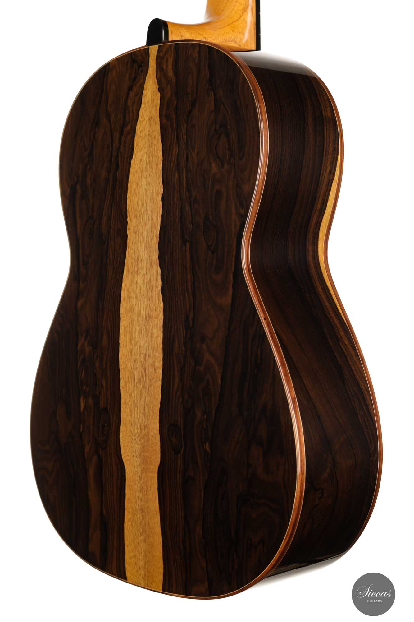 This incredible guitar from 2021 is the "Exclusive" model, the highest model built by Michael O'Leary in his Irish workshop. It has a cedar soundboard combined with a beautiful Ziricote back and sides. It features distinctive elements of O'Leary's guitars, such as the intertwined rosette, the elevated fingerboard, and the braceless back. Due to its construction, this guitar has a massive volume yet maintains its balanced beauty and subtlety of tone. Thanks to its incredible setup, this guitar is effortless to play. Despite being a second-hand instrument, this guitar is in excellent condition with minimal playing marks and is ready to make its way to any concert situation.