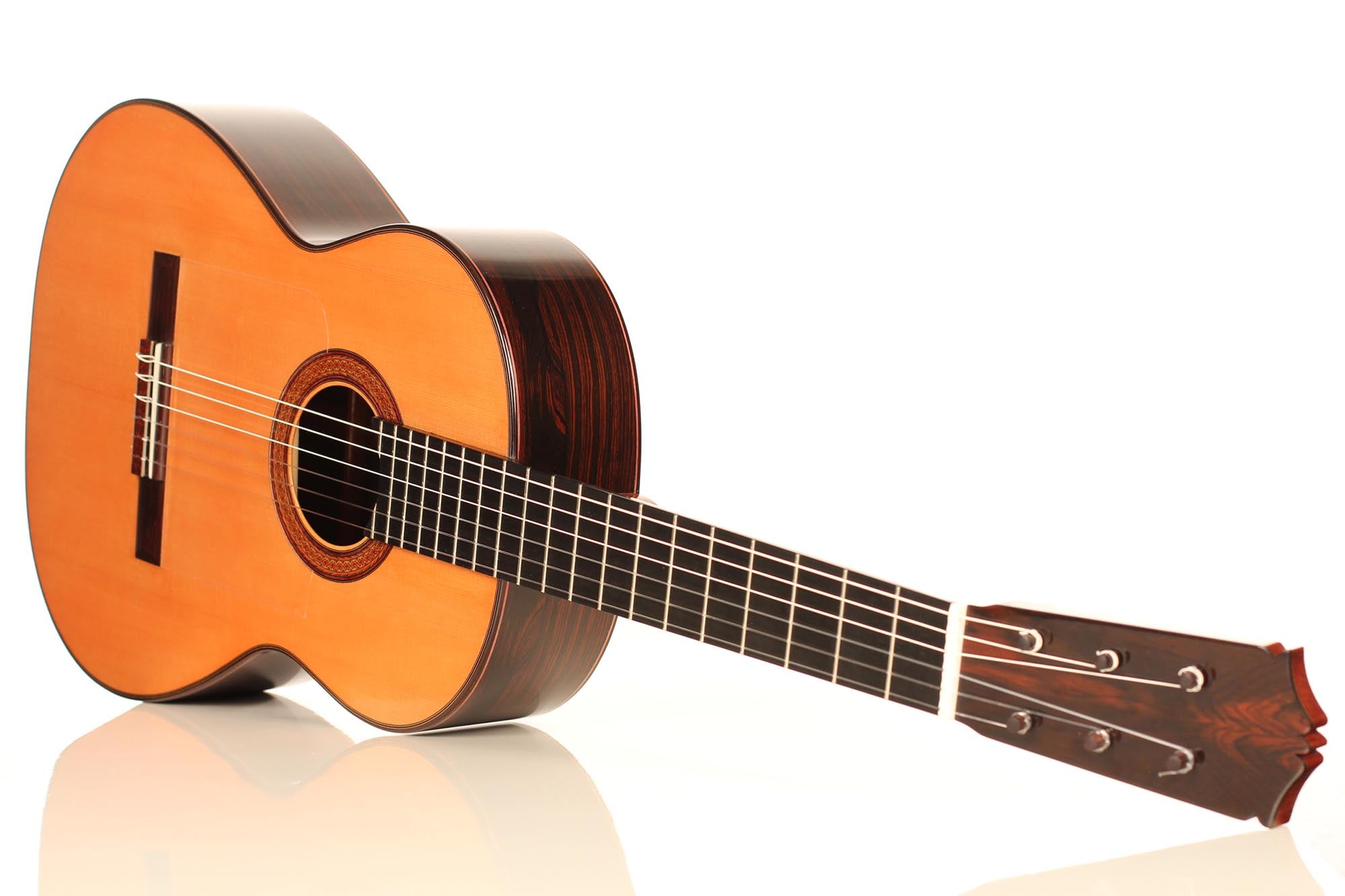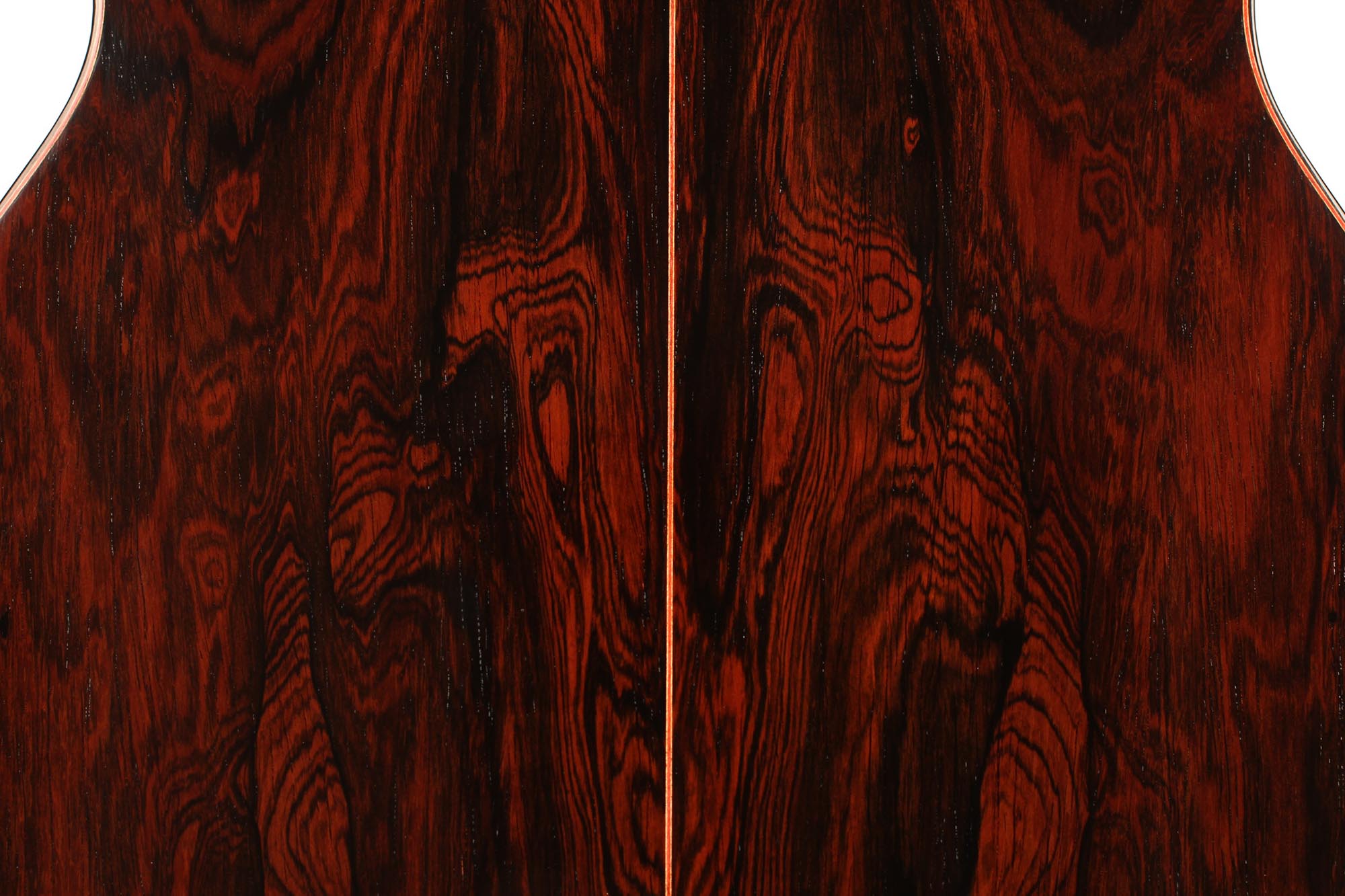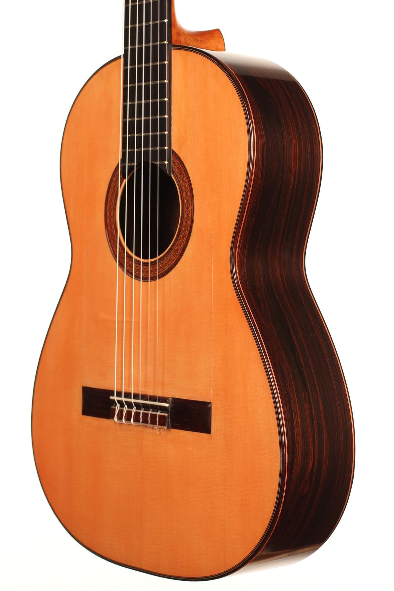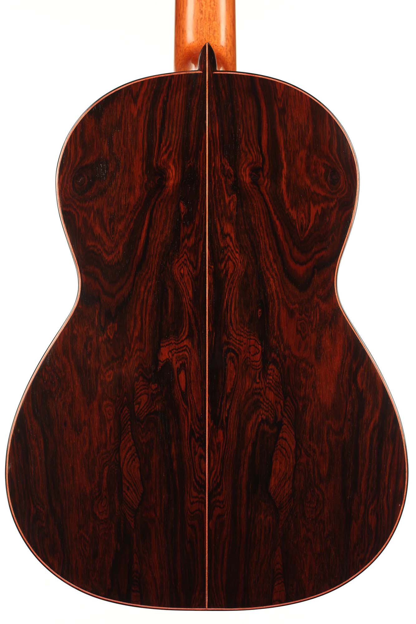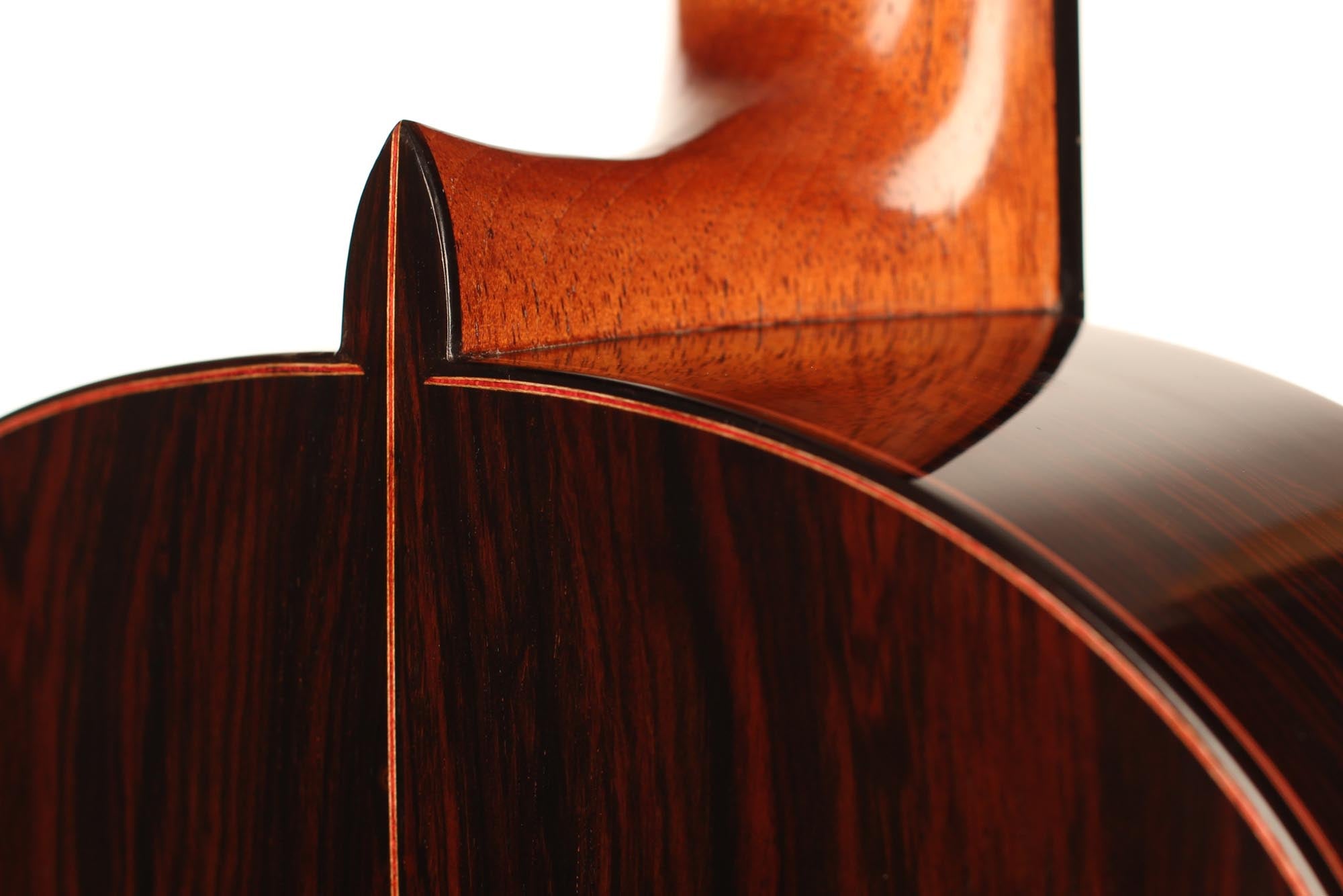 This beautiful flamenco model was built in 2016. It is a very special instrument with CITES certified highly figured Brazilian rosewood back and sides, in excellent condition and only has few superficial playing marks. This guitar can be played in both flamenco and classical style. It is both percussive and singing, has a clear strong attack and a long sustain, and offers a rich colourful tone.