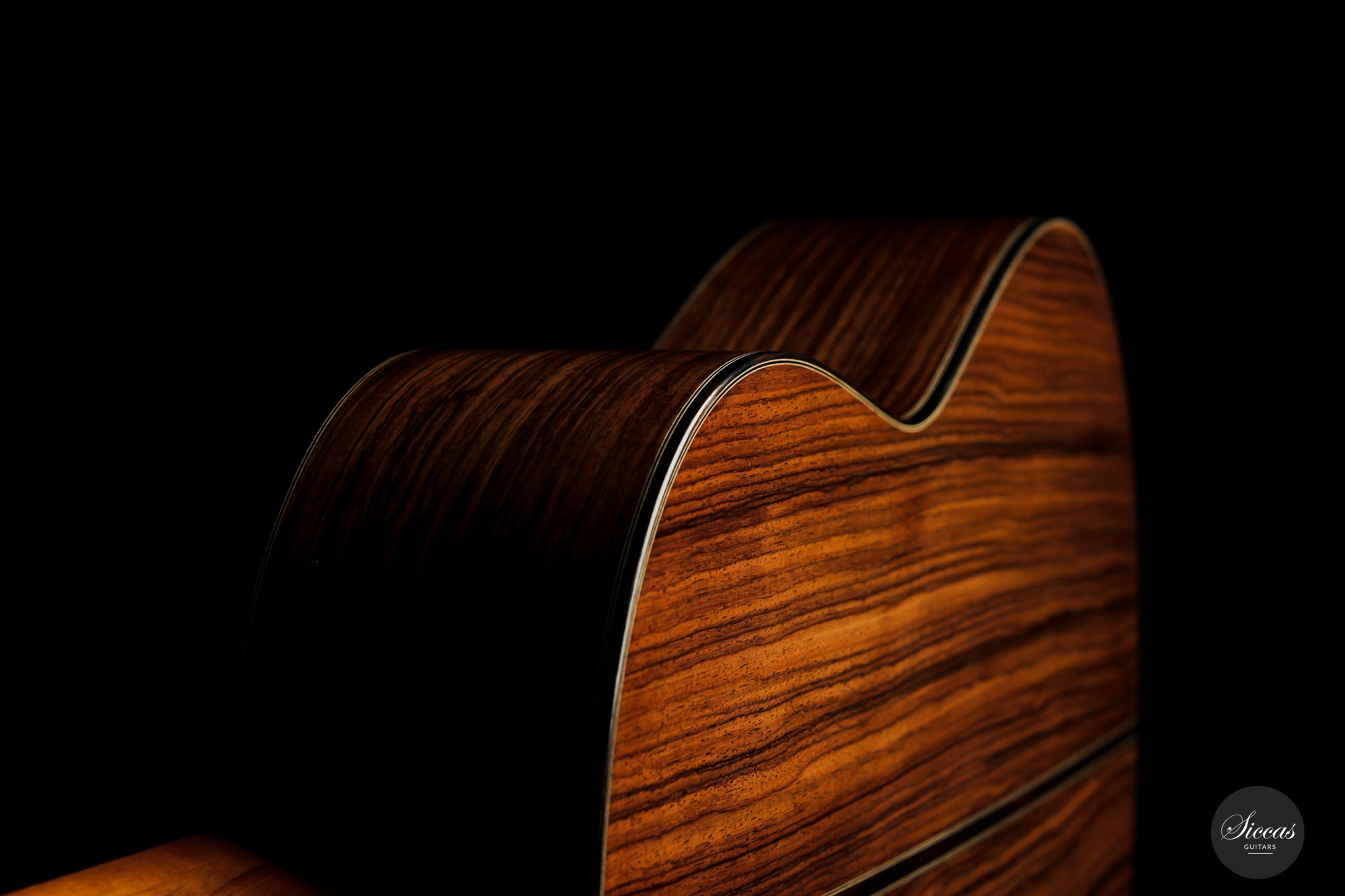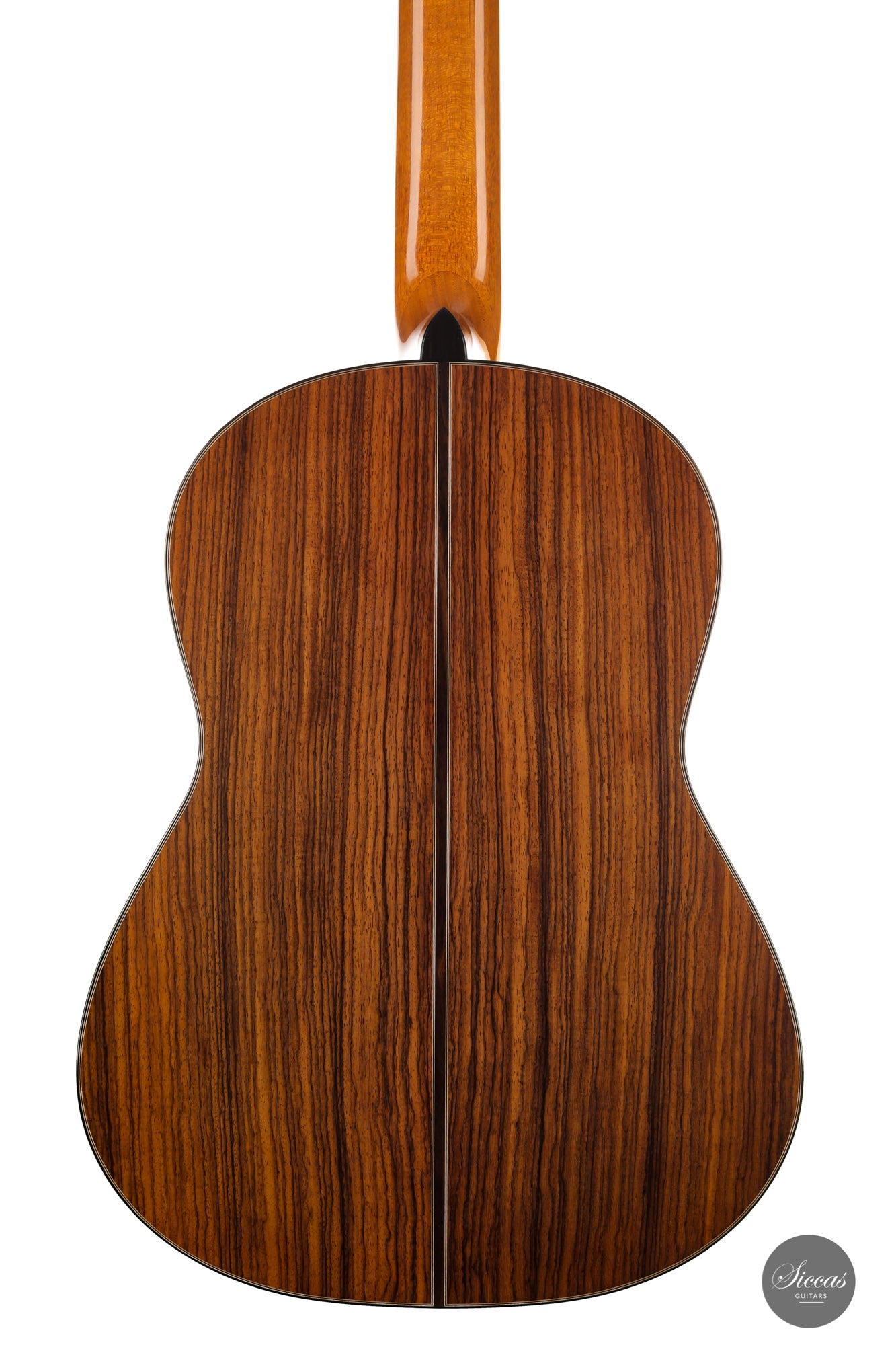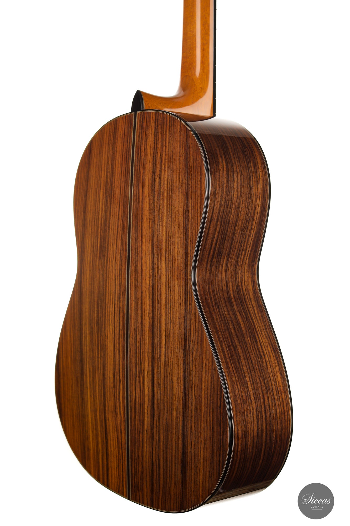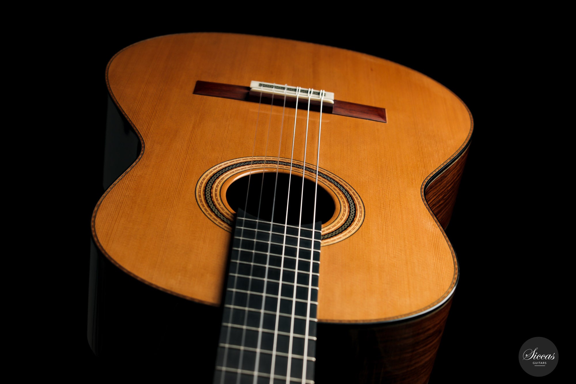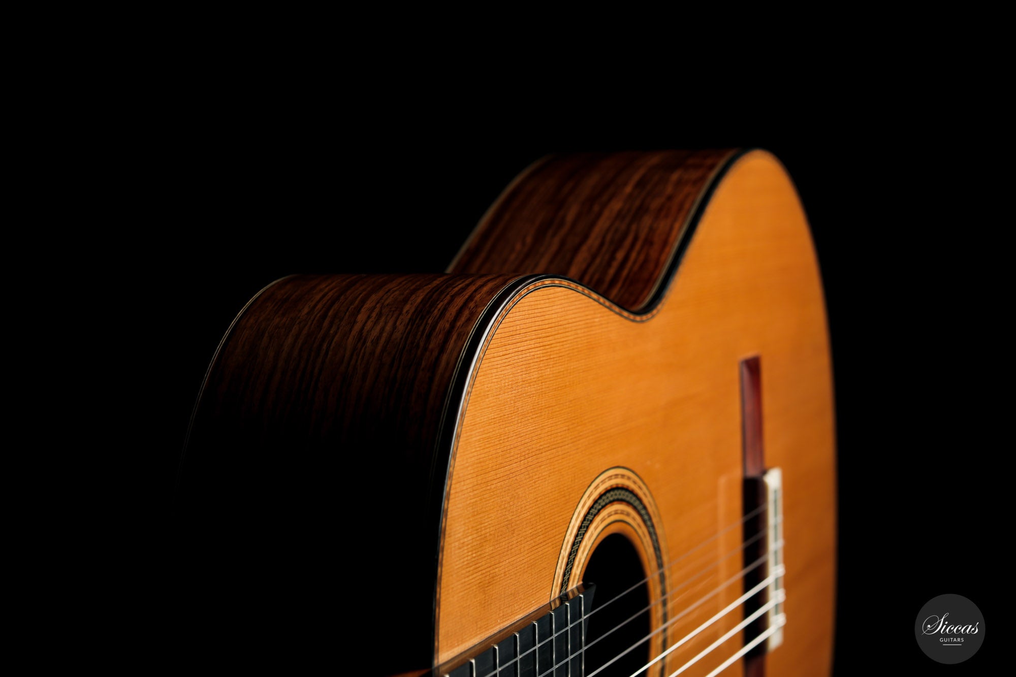 What a sound! One finds exactly the qualities of the great Daniel Friederich guitars of the 80s. A rich timbre, orchestral in all registers, deep and full and generous as well. The responsiveness of the top, the sustain of the sound, the elegance of the first string, everything comes together and we can only say this: chapeau.