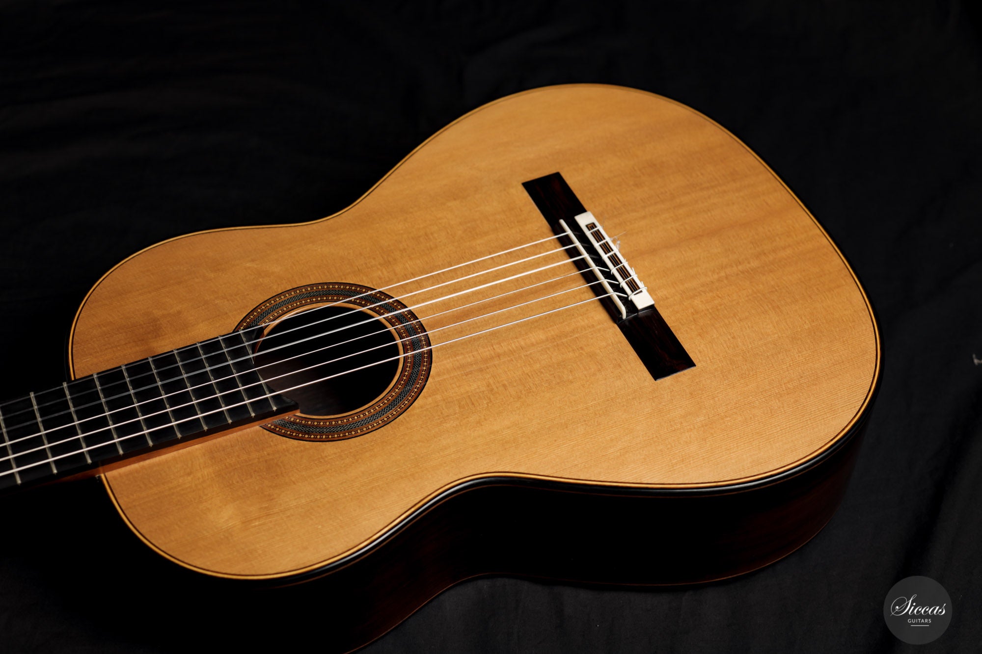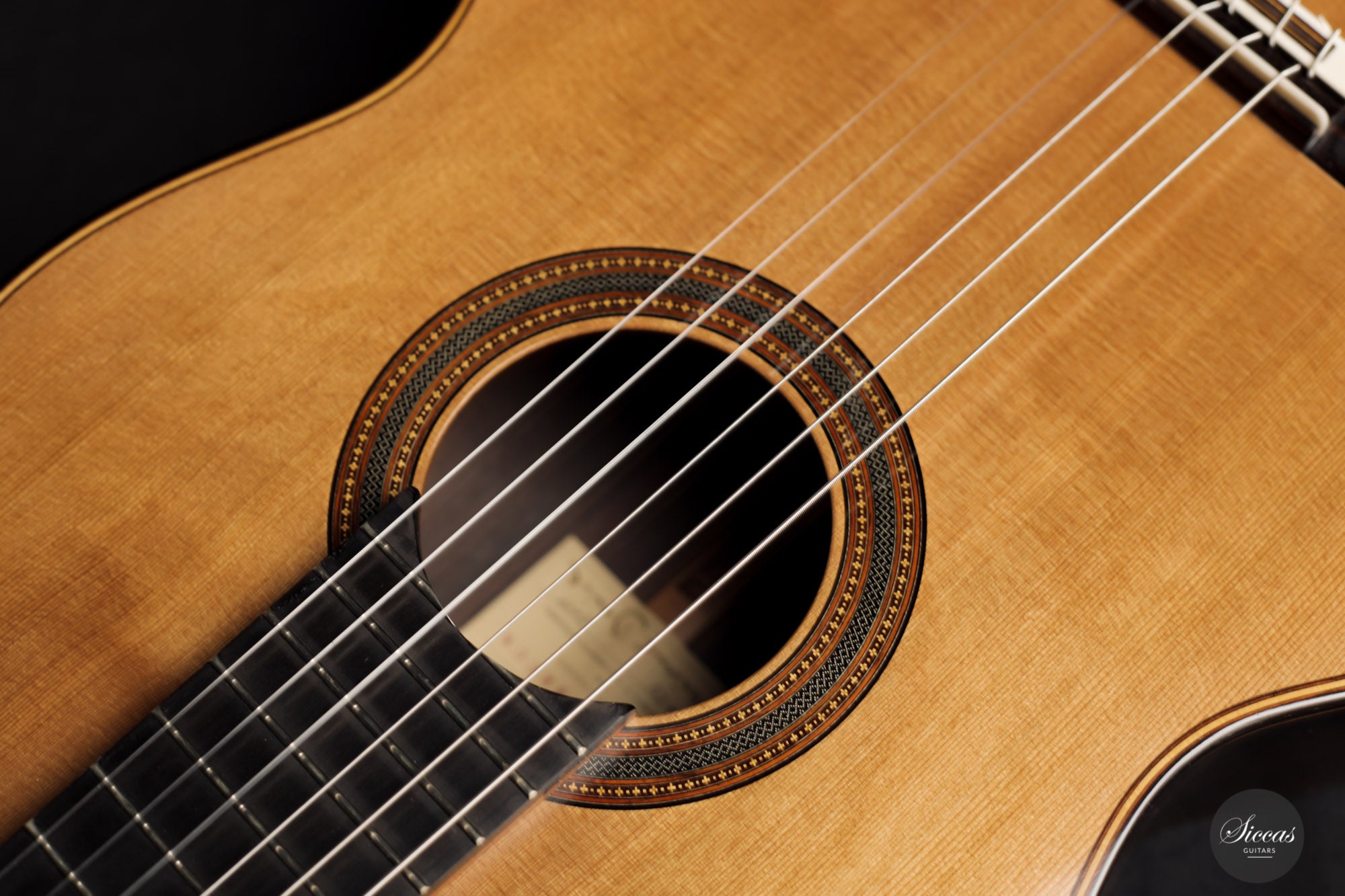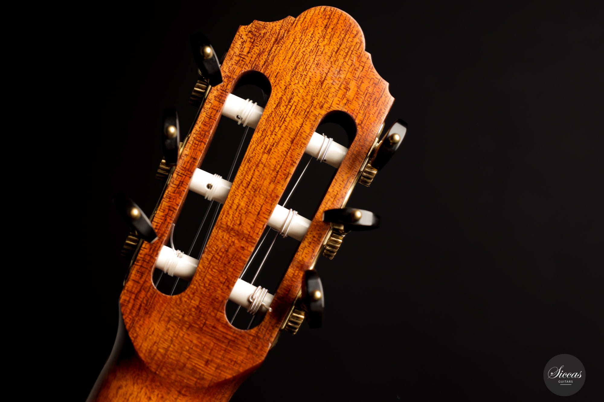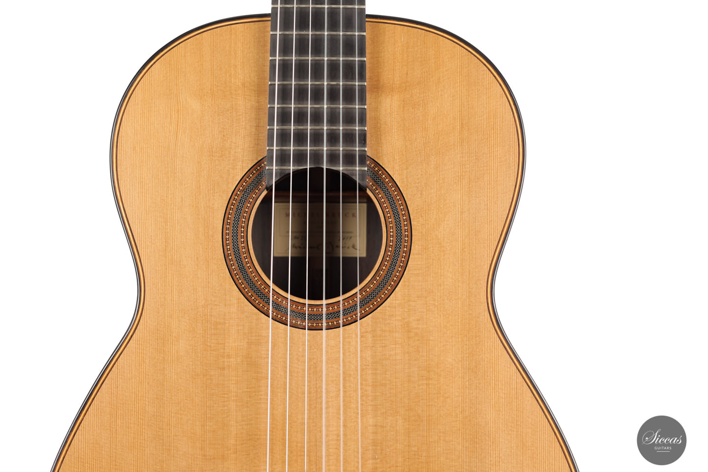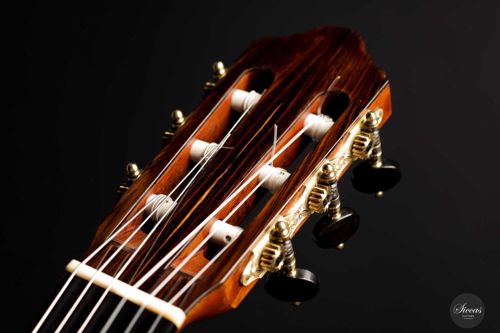 Diese sehr seltene Michel Brück Gitarre wurde 2019 gebaut und befindet sich in einem sehr guten Zustand mit nur wenigen Gebrauchsspuren. Die Verwendeten Klanghölzer sind von herausragender Qualität und die handwerkliche Arbeit ist schlichtweg atemberaubend. Ebenso wie die hochwertigen Rodgers Mechaniken die perfekt zum Gesamtbild dieser Double-Top passen.Sowohl für die rechte als auch für die linke Hand ist dies Brück sehr angenehm und bequem. Es ist eine sehr ausgewogene Gitarre mit vielen Obertönen und einem reinen und sauberen Klang. Dabei strahlt sie geradezu mit Ihrer Ausdruckskraft und Klangwärme. Gleichzeitig machen das sehr gute Sustain und ihr Obertonreichtum sie zu einem sehr lyrischen Instrument.
