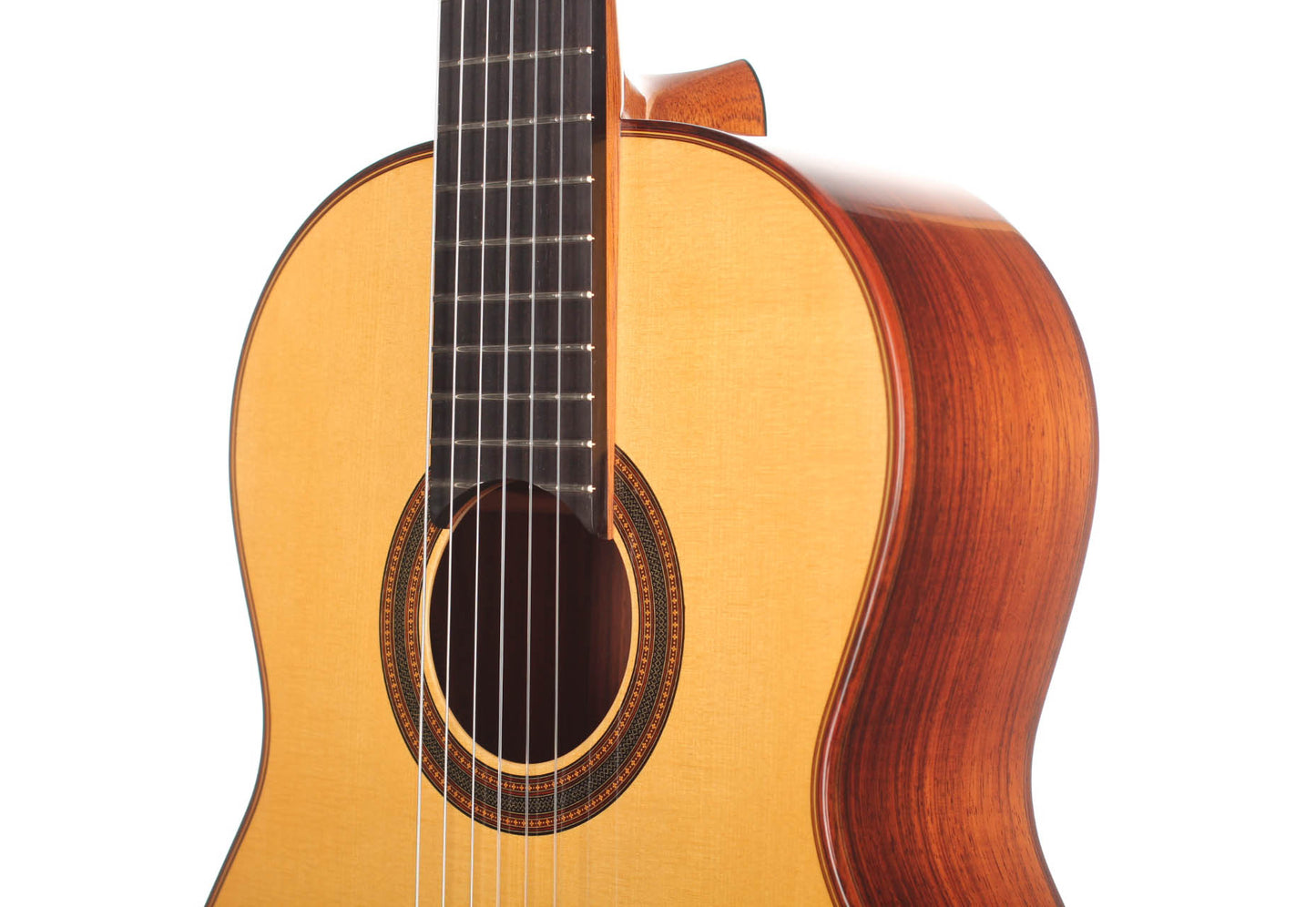 The classical guitar, with its soft nylon strings and characteristic timbre, has become a symbol of chamber music, Spanish tradition, and concert repertoire. Its modern form was shaped by Antonio de Torres in the 19th century, setting the standard for the body, fan bracing, and the 65-centimeter scale length that are still used today. Instruments in this category open up a rich palette from the refined Romantic miniatures of Tárrega to the majestic concertos of Rodrigo. Here you will find guitars that preserve historical continuity and at the same time inspire new interpretations.