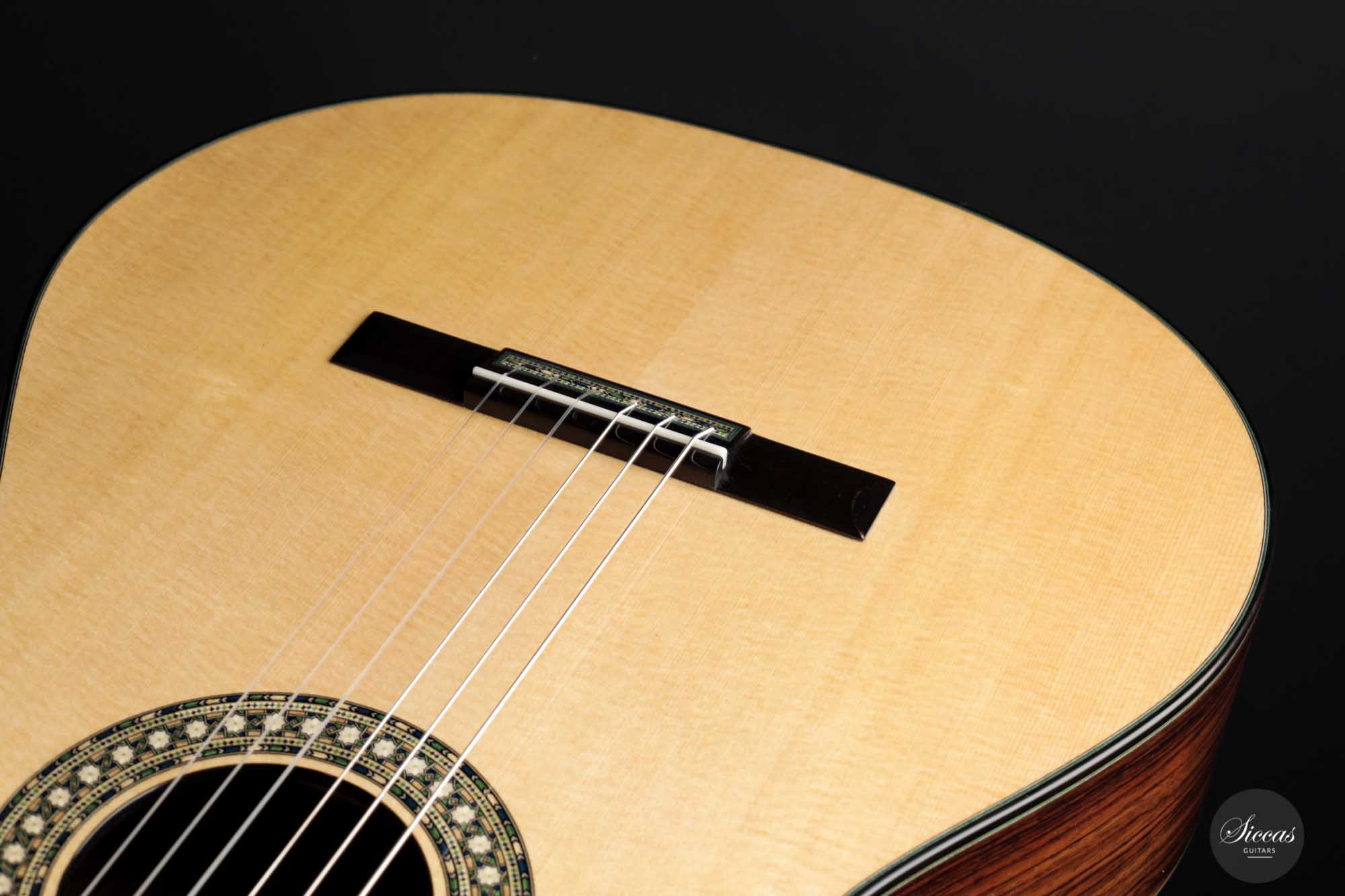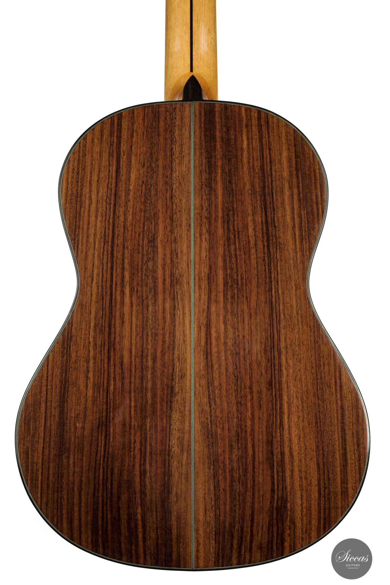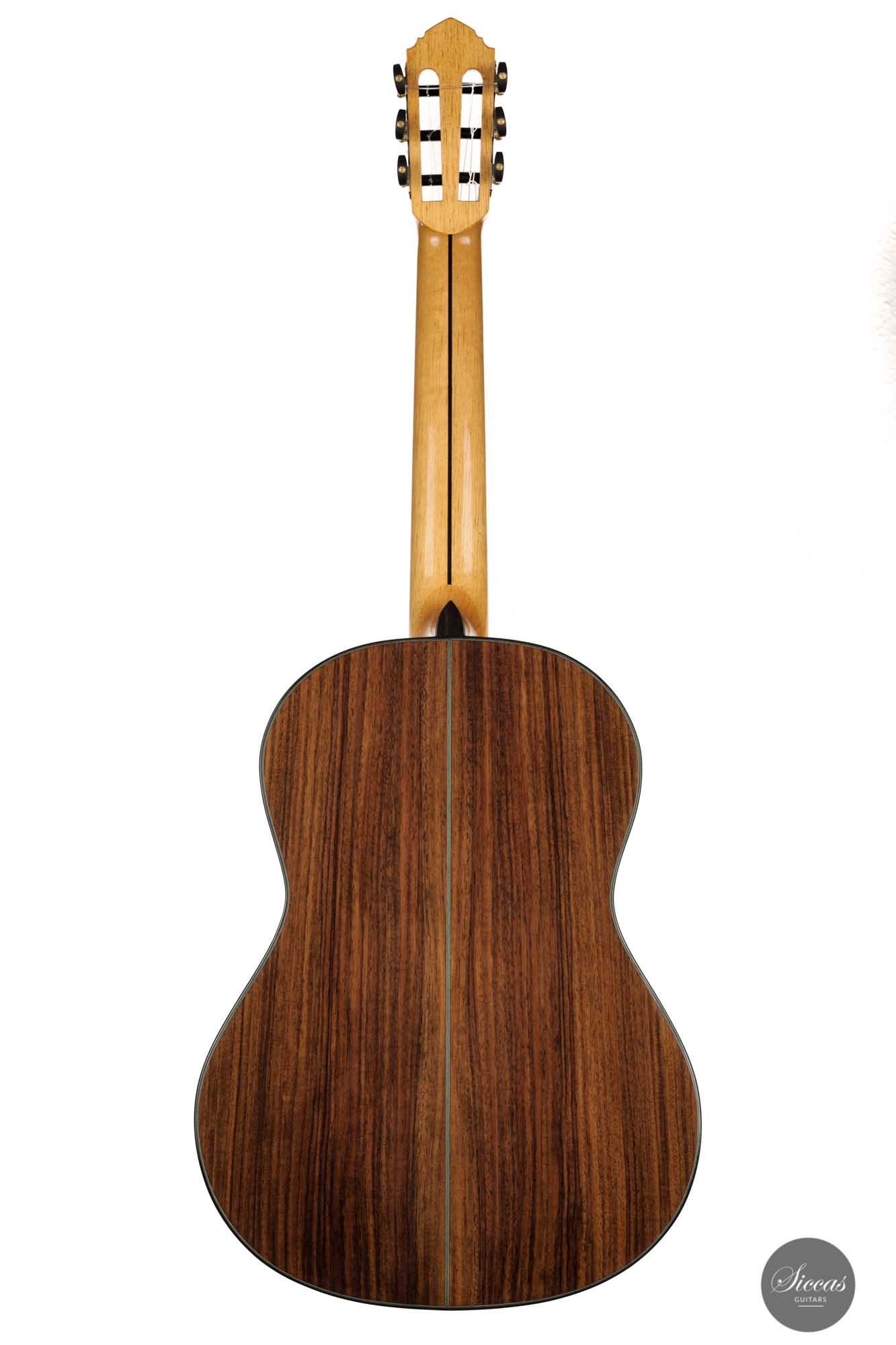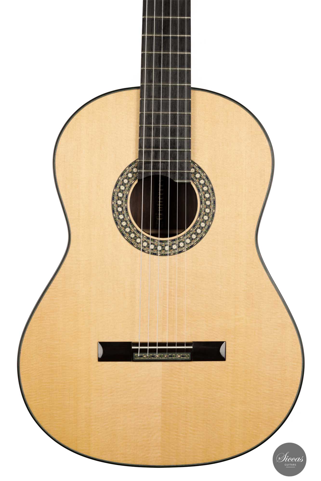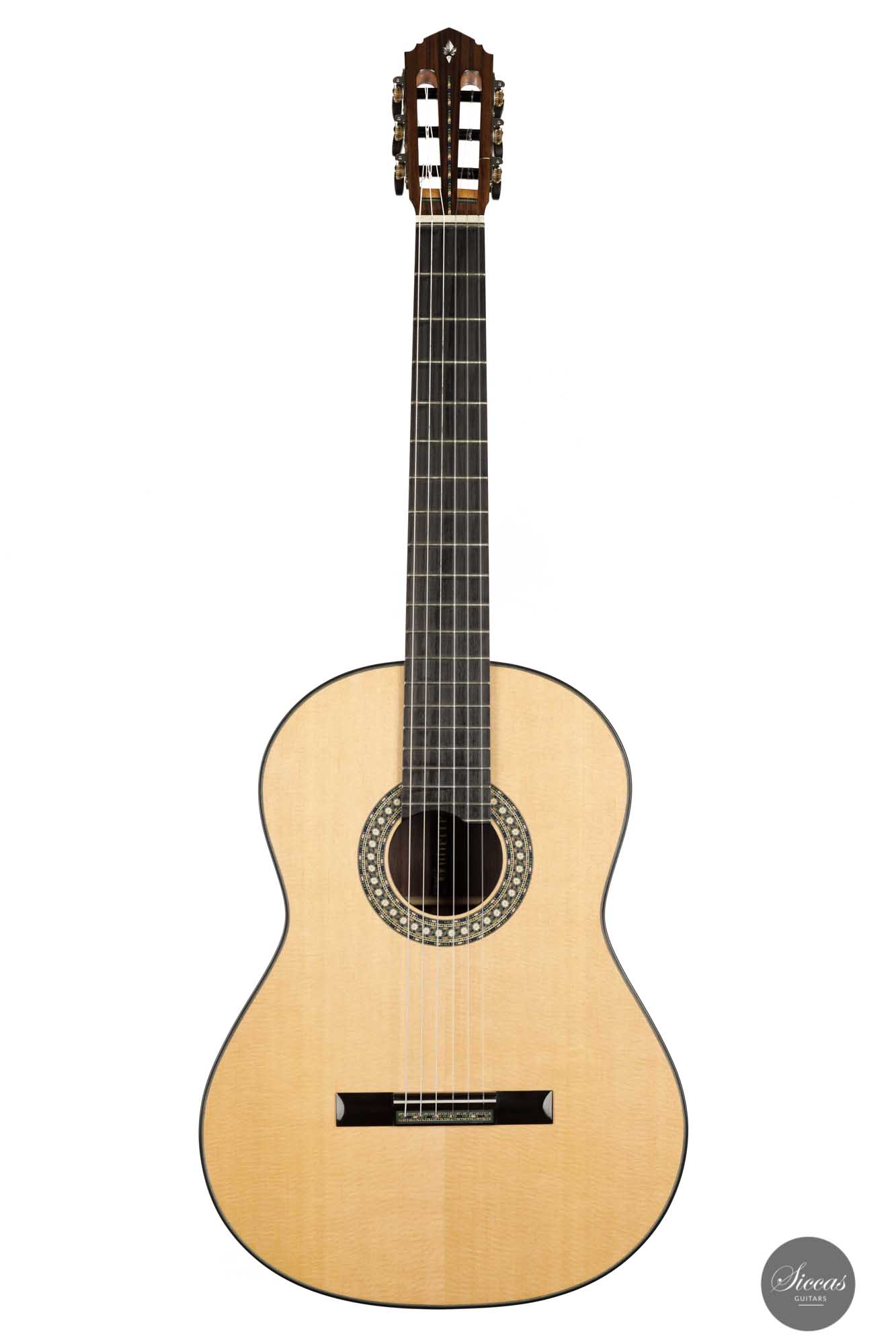 This wonderful 2022 instrument is built with a spruce top with lattice bracing. Aesthetically, it is heavily inspired by Moorish art as depicted in the ornaments of the Alhambra in Granada, Spain. The sumptuous and colourful geometric mosaic of the rosette adds a unique appearance to this instrument and displays Miguel Angel's masterful artistry. Its response and tonal volume, as well as the 65 cm scale length and 52 mm nut, make this model an excellent classical guitar that is suitable for most guitarists, providing fantastic playing comfort and an elegant, carrying overall sound.