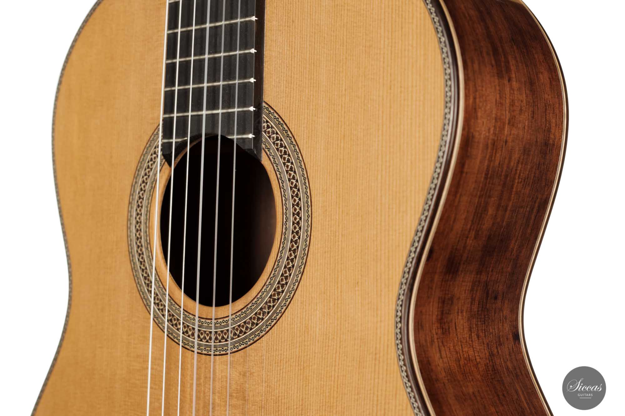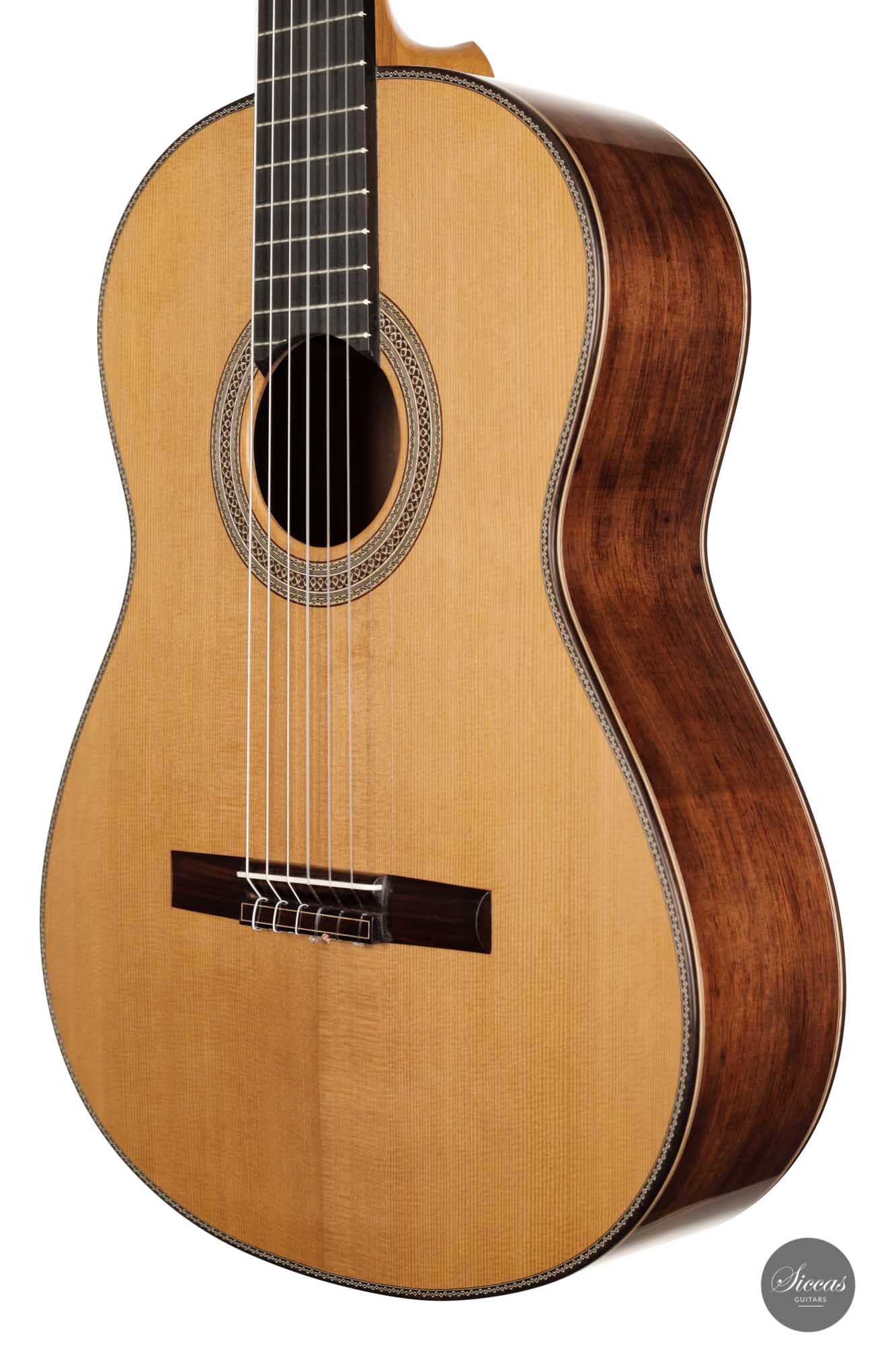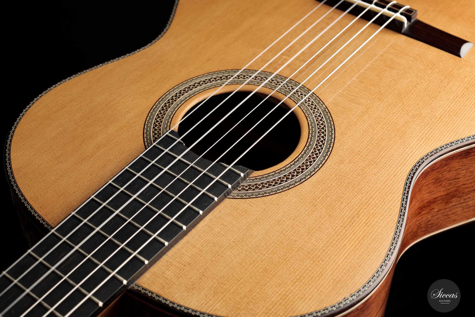 This lightweight from Granada is extremely impressive. It has a warm and open sound character and responds very directly. The beautiful cedar top gives it a wonderfully smooth and silky sound. Back and sides are made of fine Madagascar rosewood. It is great fun to play this guitar and explore its timbres. The price-performance ratio of this Kharash is outstanding, and the 63 cm scale length of this special guitar makes it amazingly comfortable to play.