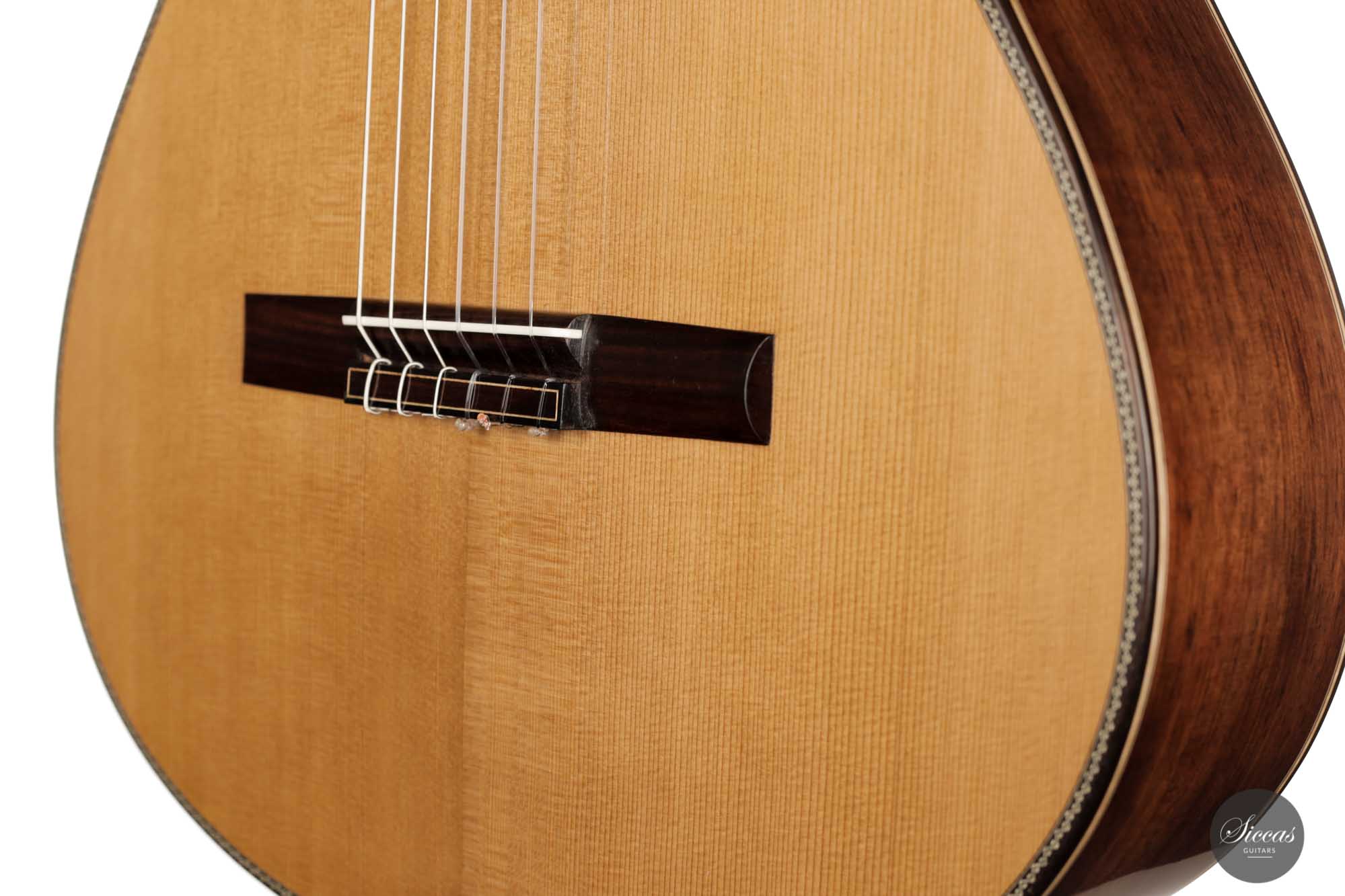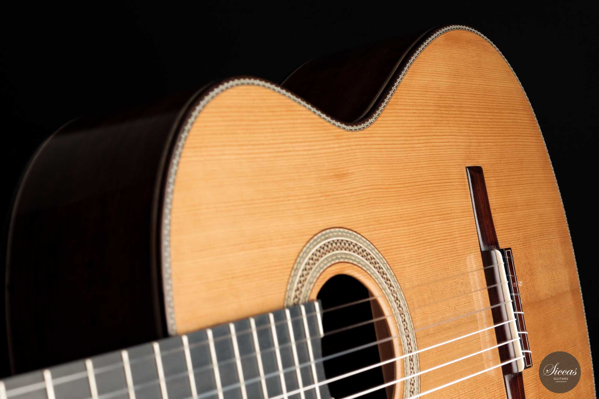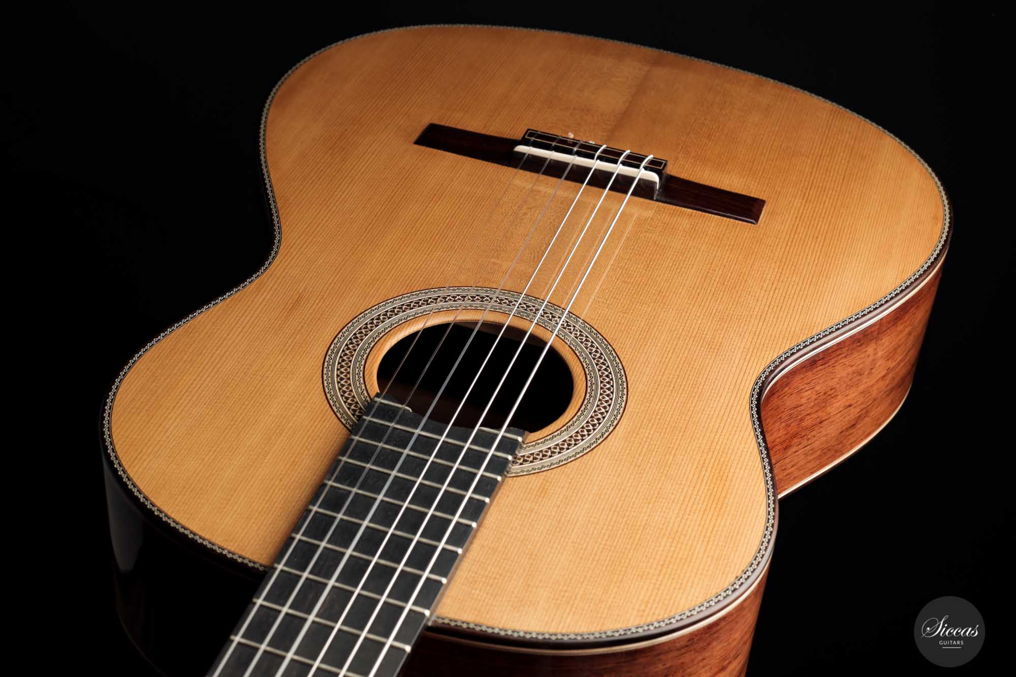 This lightweight from Granada is extremely impressive. It has a warm and open sound character and responds very directly. The beautiful cedar top gives it a wonderfully smooth and silky sound. Back and sides are made of fine Madagascar rosewood. It is great fun to play this guitar and explore its timbres. The price-performance ratio of this Kharash is outstanding, and the 63 cm scale length of this special guitar makes it amazingly comfortable to play.