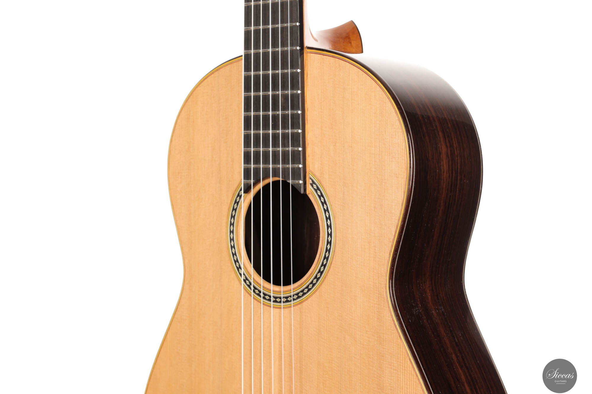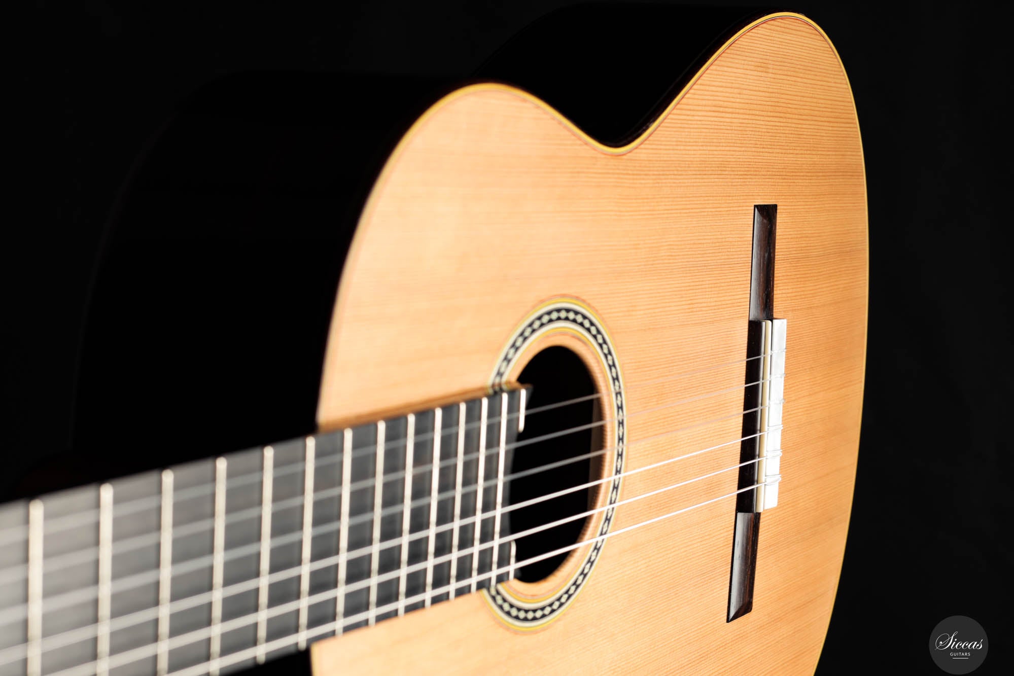 Sonically, this guitar features dark, warm trebles complemented by deep, resonant basses. The removable tornavoz allows players to further refine their experience, subtly lowering the resonance and enhancing the bass depth for a more intimate and controlled sound. With sensational playability, superior craftsmanship, and outstanding tonal balance, this guitar is a masterful creation that meets the highest standards of performance.