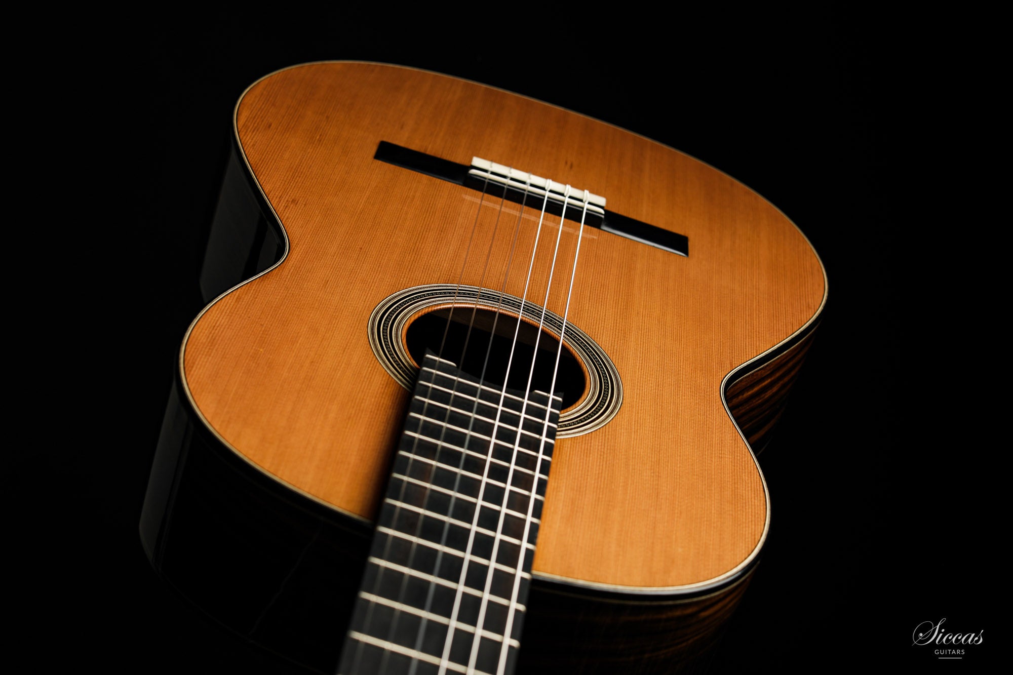 This instrument is surprisingly light considering the wood choice of ebony for the back and sides. The basses are full and round without becoming too heavy or dense, paired with lyrical trebles that have an airy quality to them, makes the guitar a real joy to play. When inspecting the nooks and crannies of the guitar, it is put together with an experts eyes and hands. A clean and charming design is what meets the eye. Easy to play with a superb access to the upper registers, furthermore, just look at that gorgeous back and sides. One could just drown in the well thought of aesthetics of the instrument. We are sure that this instrument will suit anyone who looks for a great sounding guitar within a very reasonable price range.