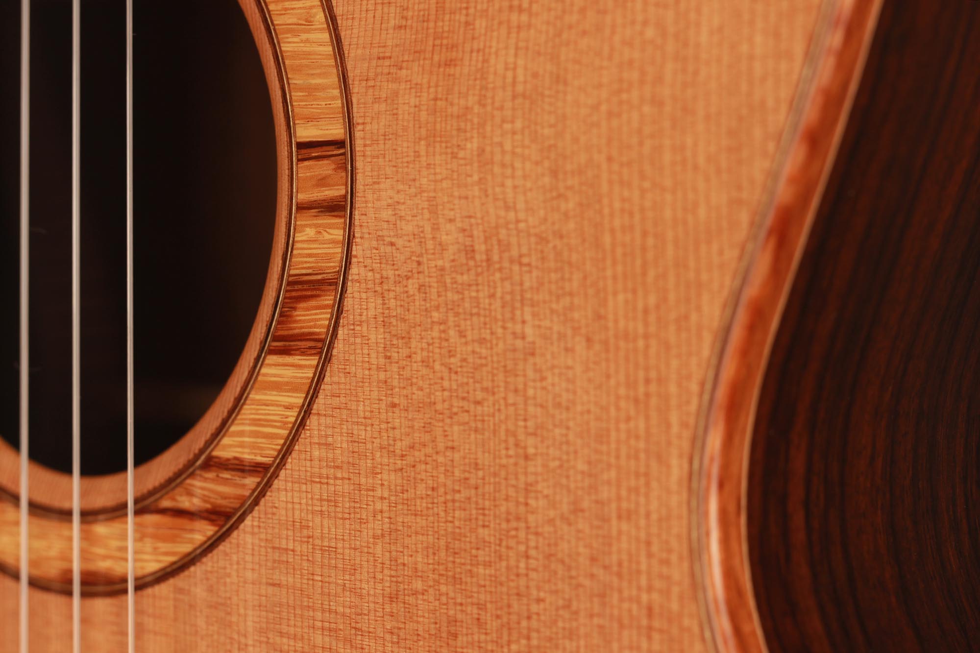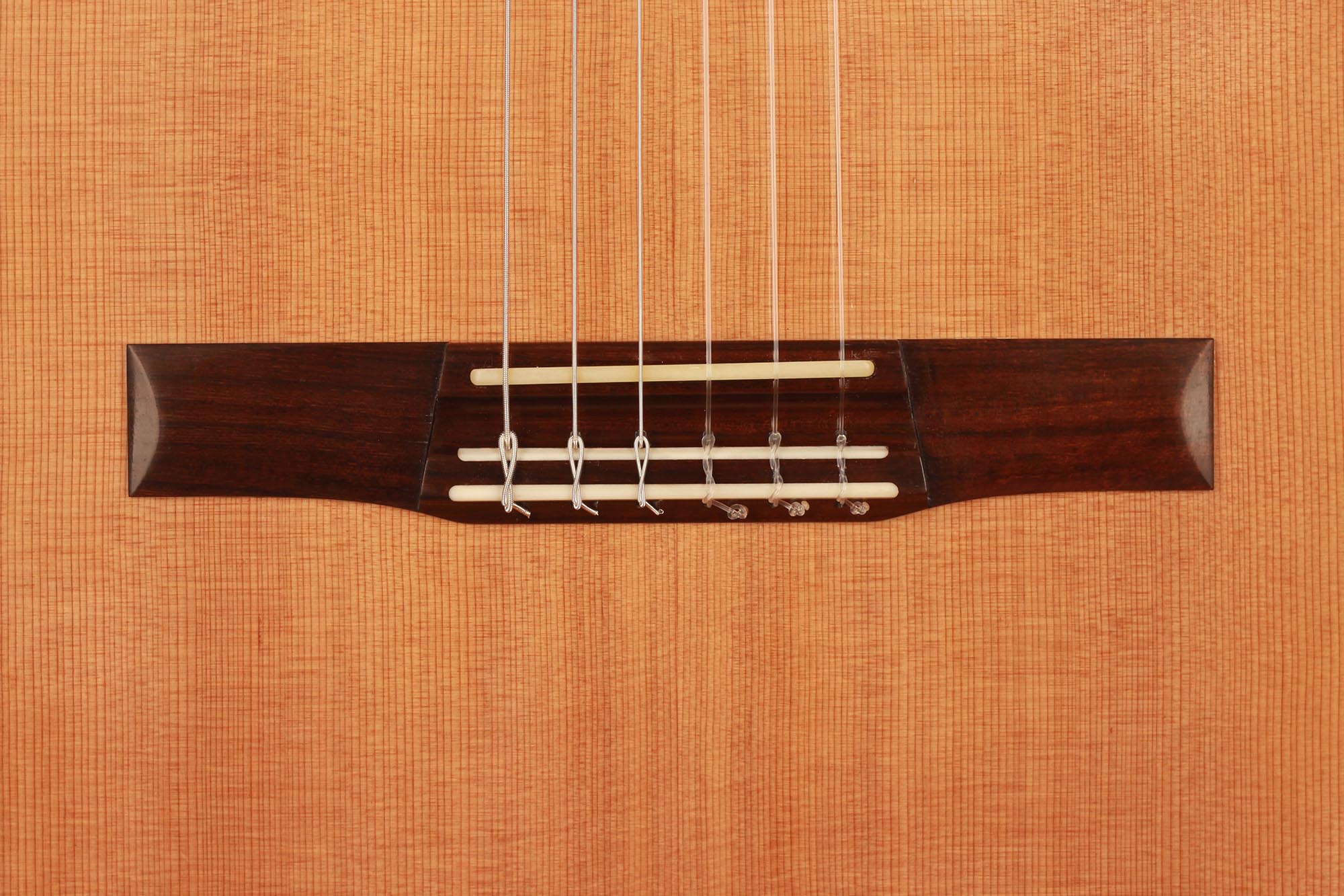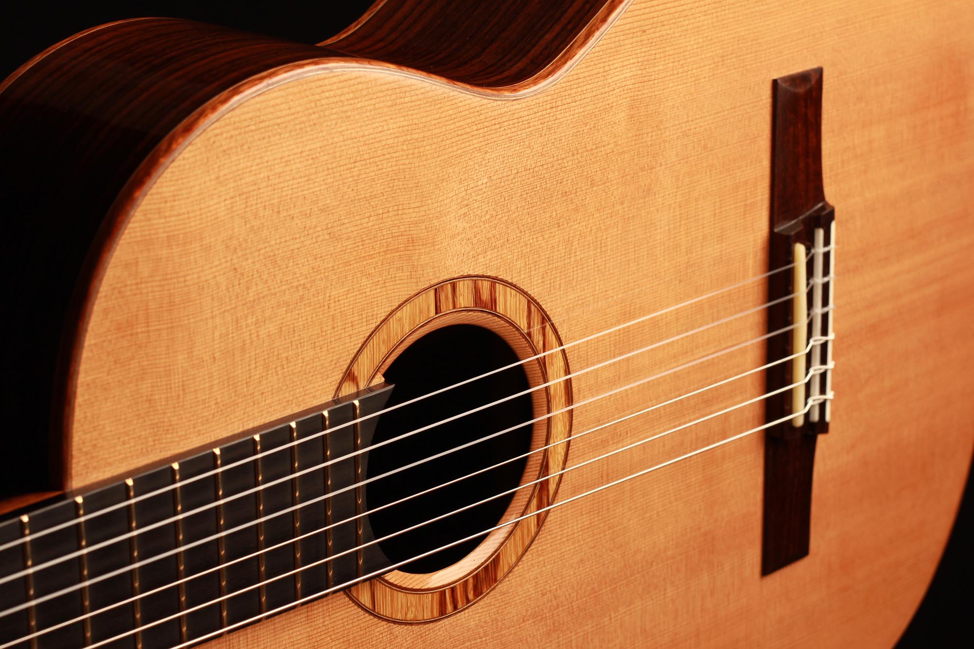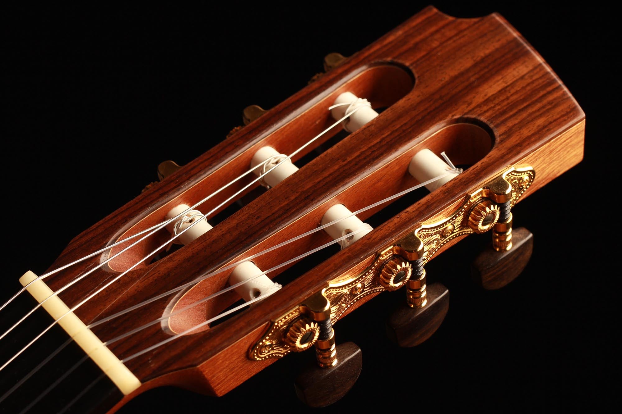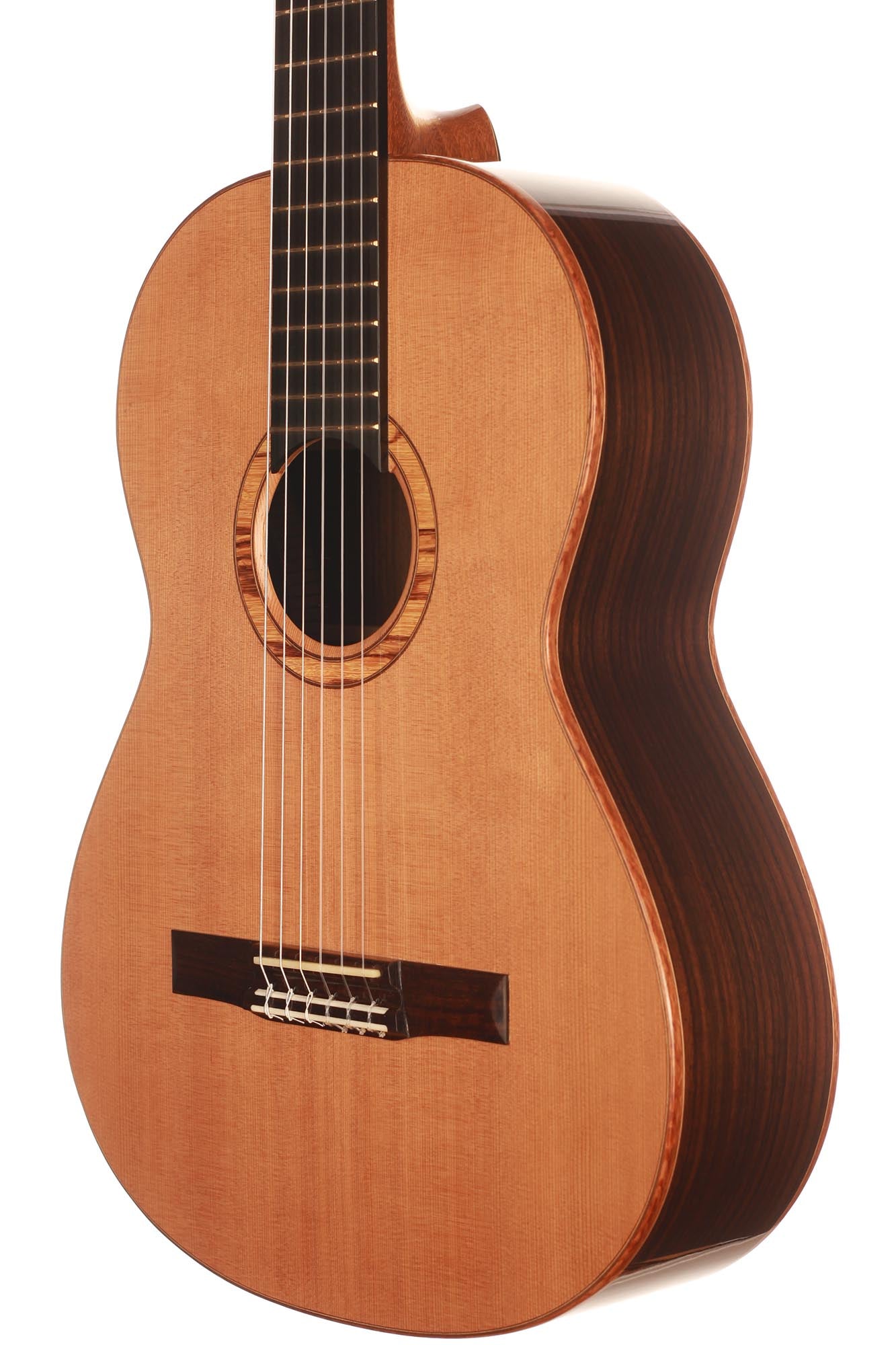 This lattice braced guitar built in 2016 is a both powerful and colourful instrument. It is incredibly sweet and easy to play. Besides the extreme dynamic and volume possibilities, this guitar has a truly smooth and sensible tone. The feeling of fluidity and coherence all along the fingerboard as well as its great balance make it a very suitable concert instrument.