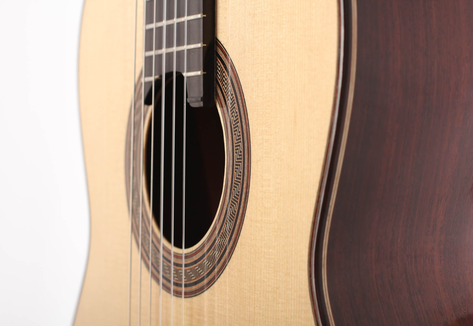 The classical guitar, with its soft nylon strings and characteristic timbre, has become a symbol of chamber music, Spanish tradition, and concert repertoire. Its modern form was shaped by Antonio de Torres in the 19th century, setting the standard for the body, fan bracing, and the 65-centimeter scale length that are still used today. Instruments in this category open up a rich palette from the refined Romantic miniatures of Tárrega to the majestic concertos of Rodrigo. Here you will find guitars that preserve historical continuity and at the same time inspire new interpretations.Look all products of the collection -