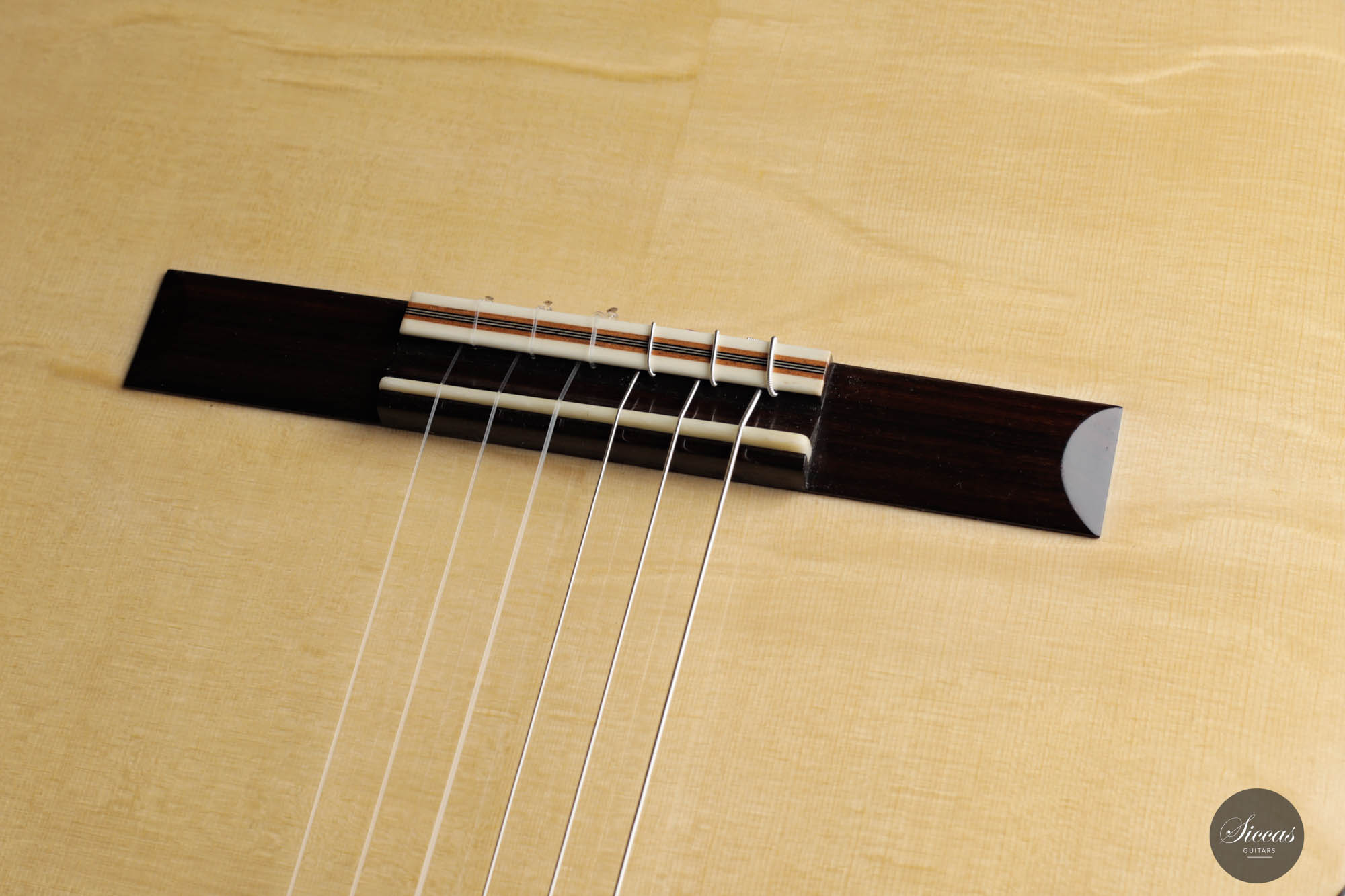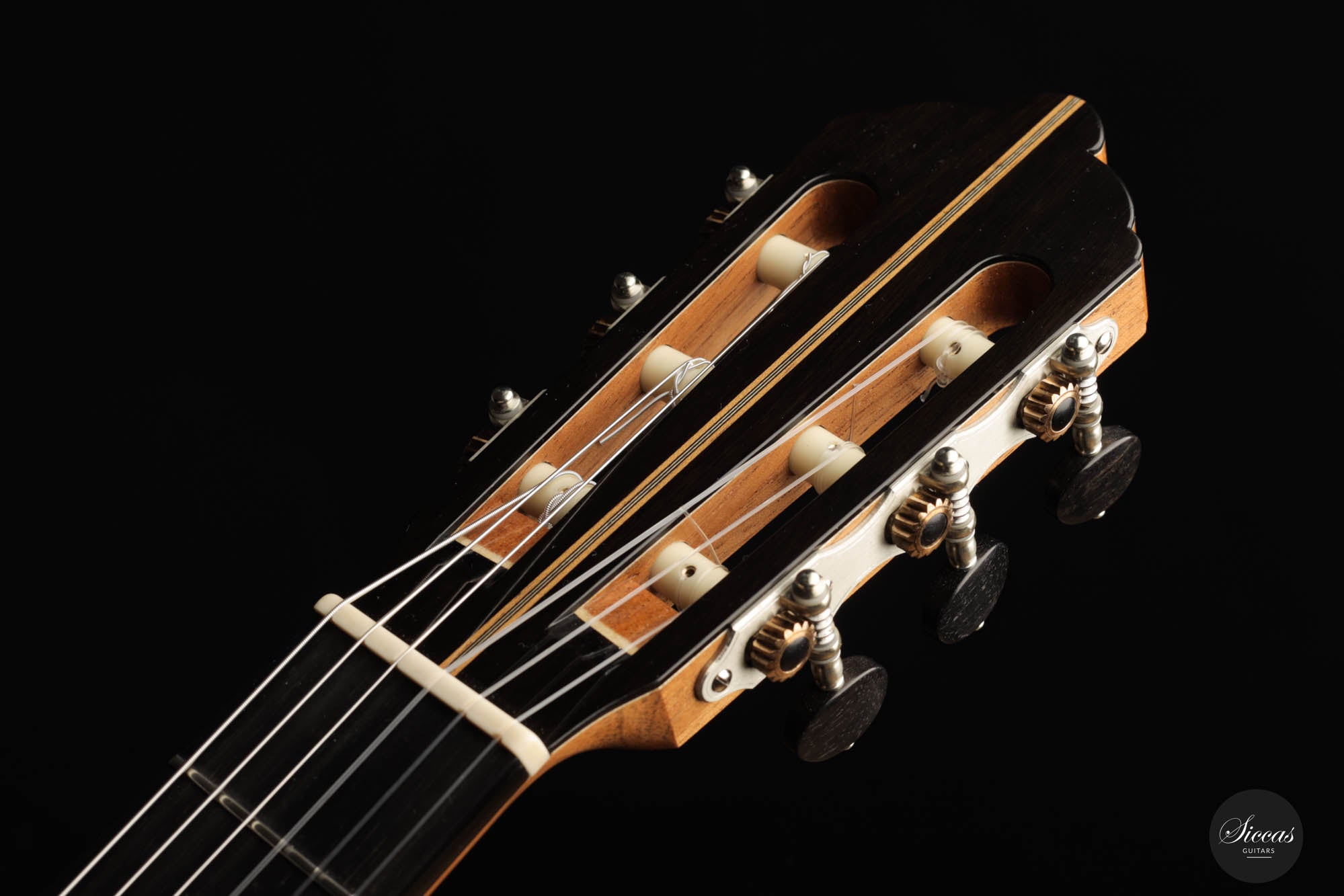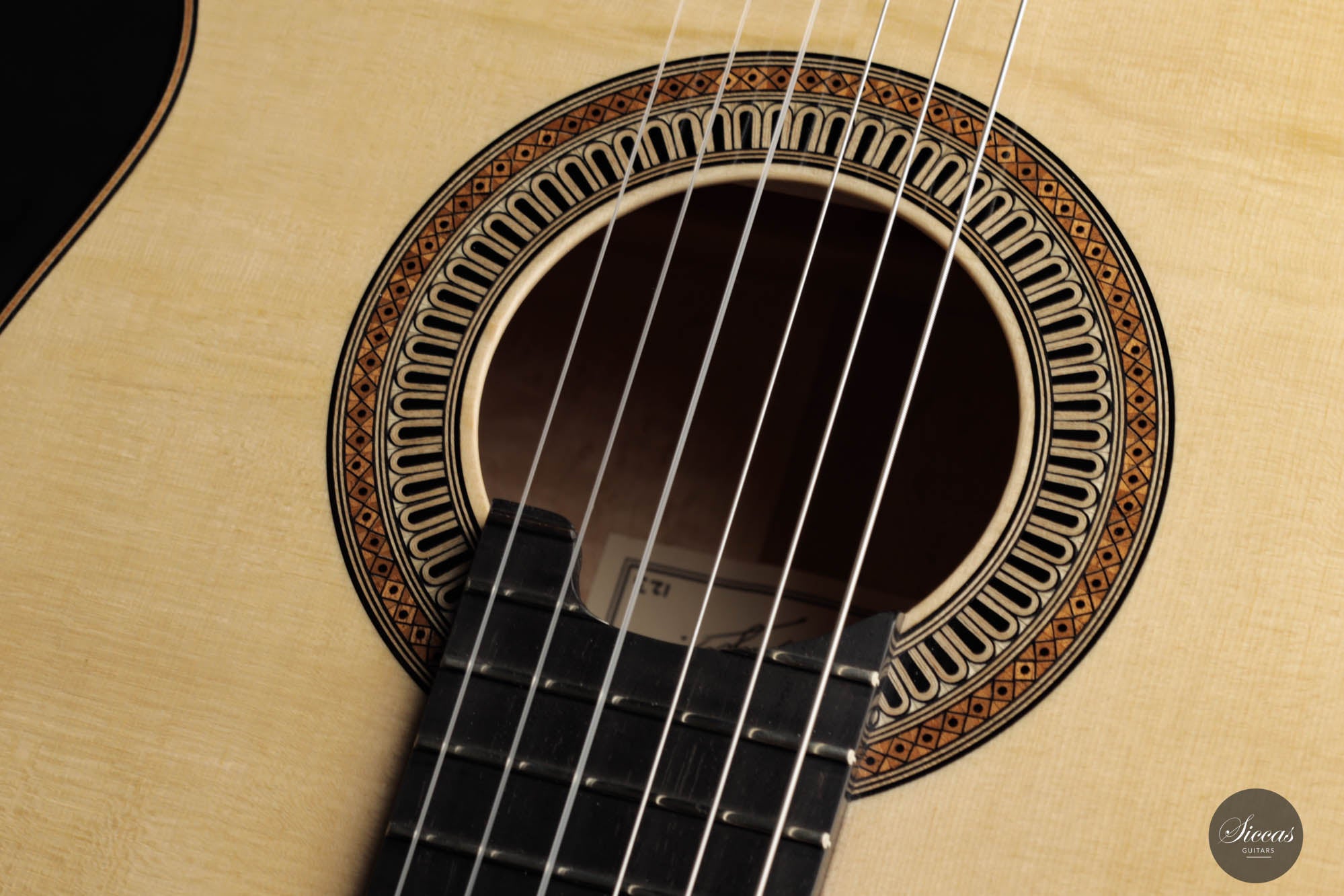 The design of Oren Myers’ guitars and the construction methods he uses fall into the broad category of “traditional” guitars. Although he works within established parameters, he does not copy any particular guitar maker or construction method. Each tonewood is unique; therefore, the exact thickness of the components of each guitar is adjusted accordingly. The body shape is the result of his plantilla and the decorative elements of the guitars are also created by him.