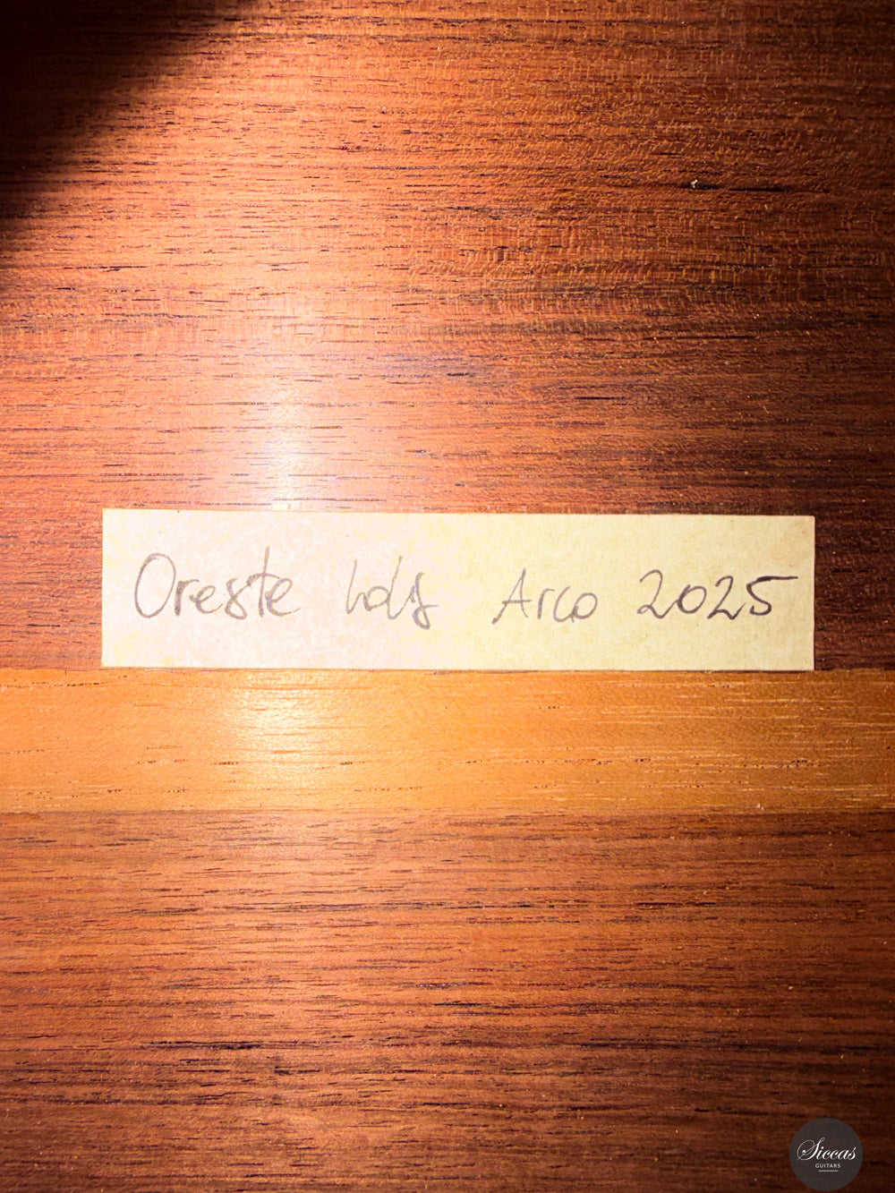 While the influence of Daniele Chiesa and the Granadan school is present in his work, Oreste’s guitars already show a distinct personal identity. His approach brings together disciplined technique, respect for tradition and a calm artistic intuition. The result is a body of work in which a traditional sound ideal is shaped with individuality and intention, and each instrument is conceived as a complete and coherent musical tool.