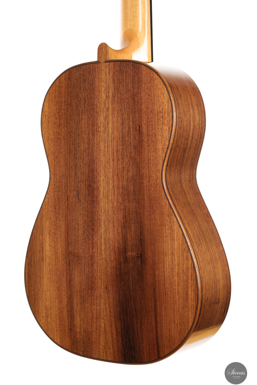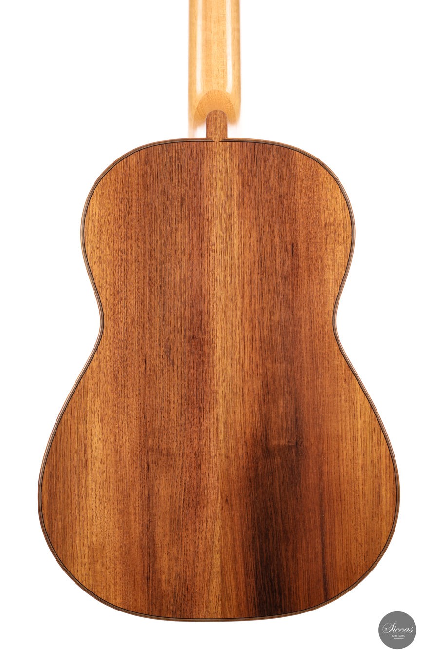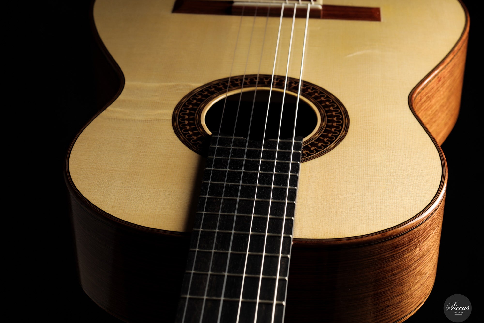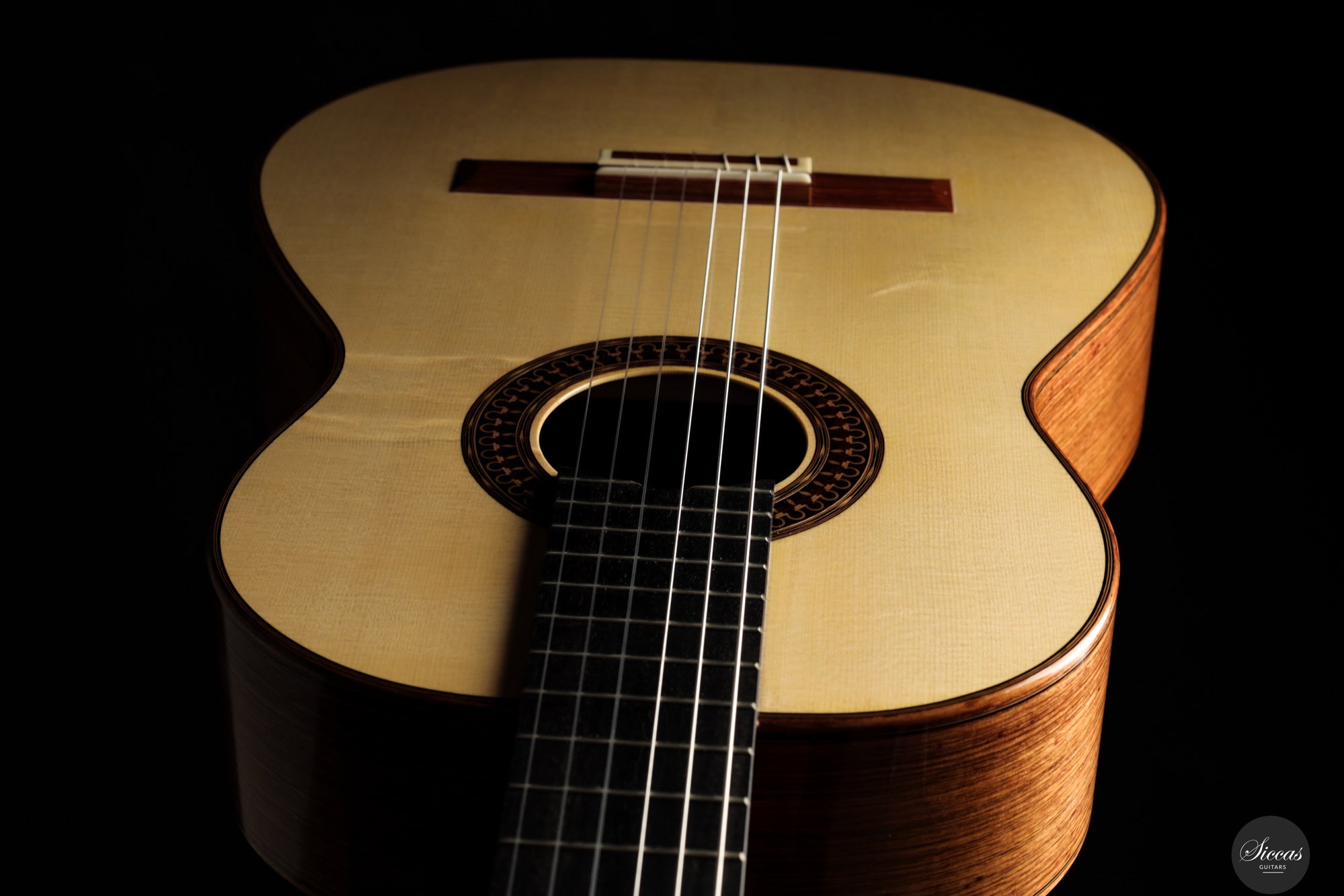 The sound of this instrument is sweet and lyrical, with expressive nuance appearing even at a gentle attack. Notes respond quickly and connect with ease across all registers, so that phrases flow naturally under the hands. The guitar projects with assurance without needing to be driven hard, and colour changes arise readily with subtle right hand movement, offering a wide palette without effort. Playability is one of its strong points. The instrument settles comfortably in the hands and supports relaxed, fluid phrasing from the first touch. Visually and sonically, this guitar presents refinement, coherence and a personal artistic voice. It is an inviting choice for players who seek a traditionally voiced concert instrument shaped with care, sensitivity and clear intention.