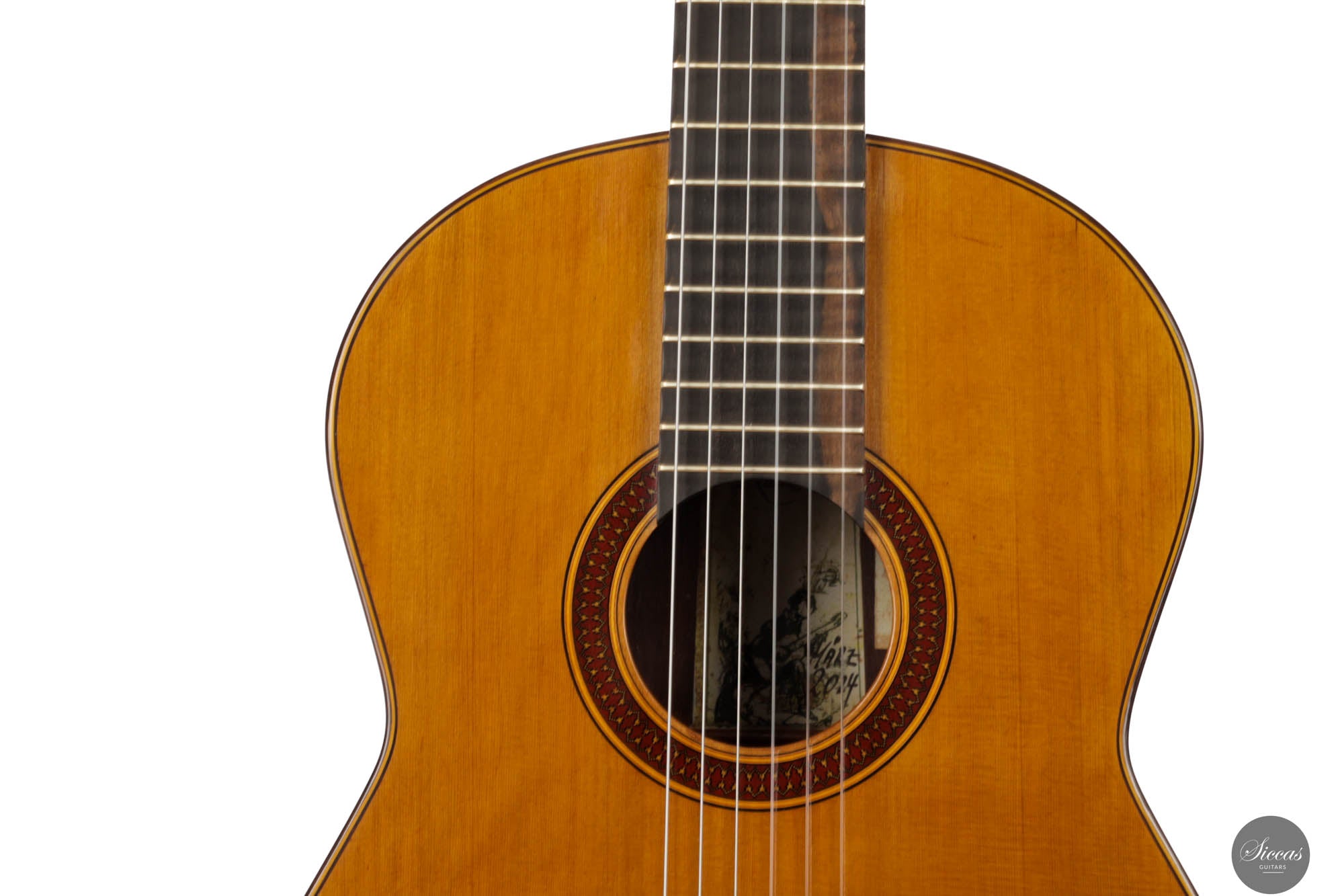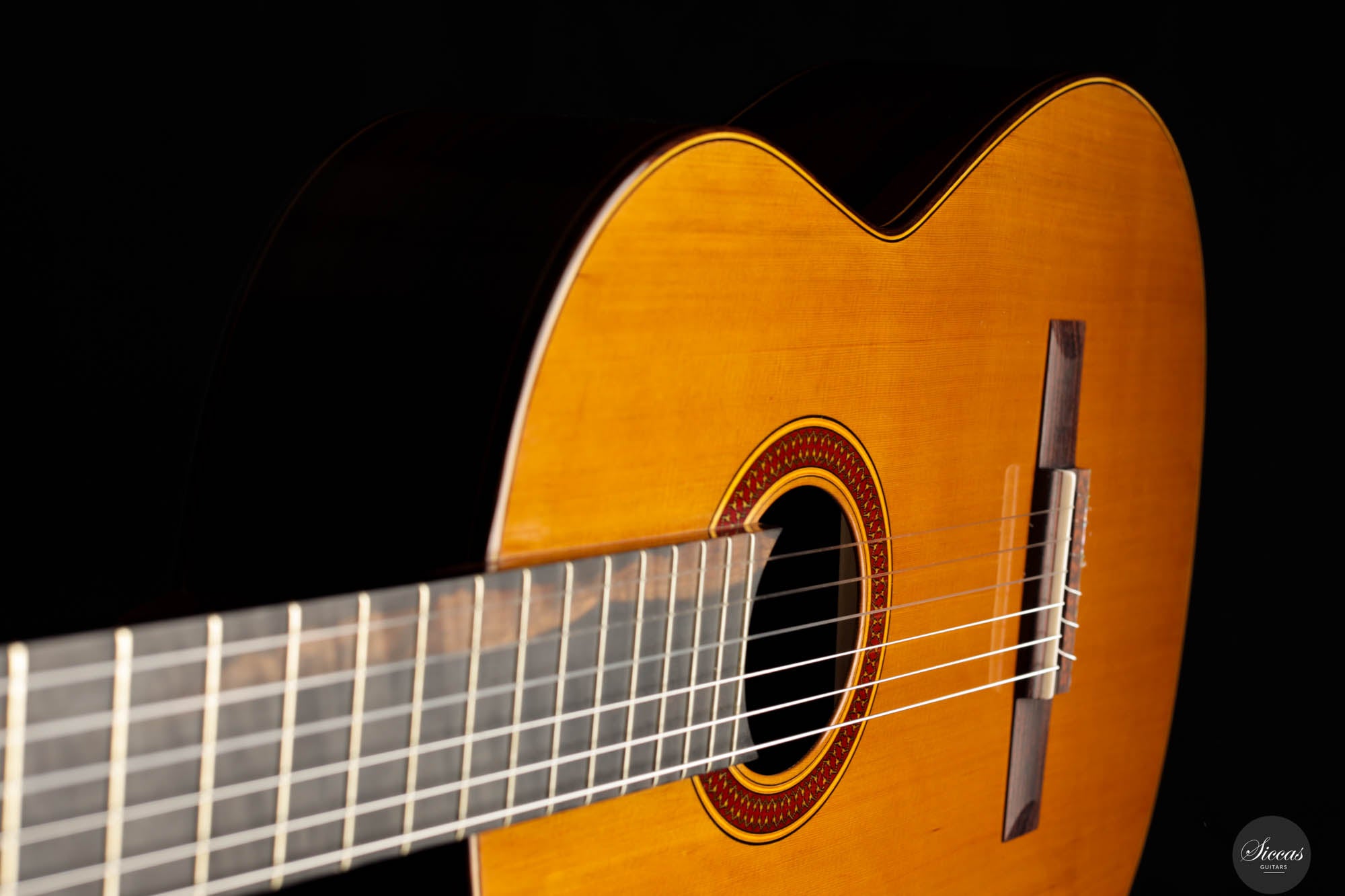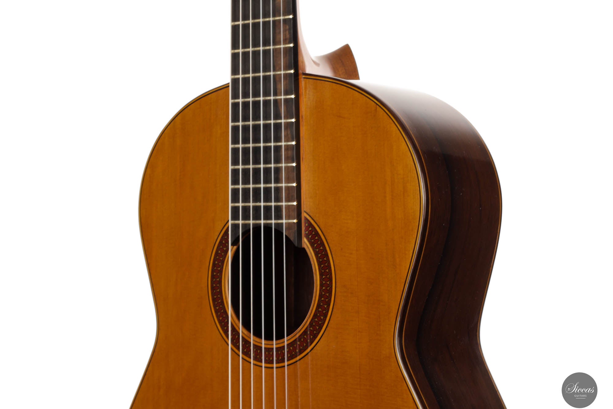The Otto Rauch 2024 No. 290 “Domenico Montagnana” guitar is a sophisticated model inspired by the esteemed “Sleeping Beauty” cello, crafted by Domenico Montagnana in 1739. This guitar, a part of Rauch’s exclusive “Sleeping Beauty” series, features Madagascar rosewood back and sides, selected for their distinctive two-tone grain that enhances both the instrument’s visual and acoustic qualities. The use of a cedar balsa core double top in its construction underscores Rauch’s commitment to integrating carefully chosen materials that contribute to the guitar’s resonant qualities. This model showcases a meticulous approach to lutherie, with an emphasis on achieving a dark, expressive, and complex sound characterized by an F main resonance. Such a sound profile not only draws from historical craftsmanship but also elevates the instrument's performance capabilities, making it a significant addition to the collections of musicians and enthusiasts who appreciate a fusion of historical homage and contemporary craftsmanship.