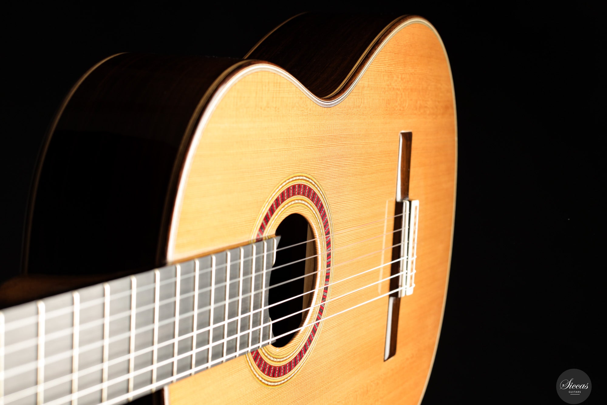 Be mindful when touching your instrument with greasy or unwashed hands: any skin contact is a small attack on the varnish. Of course, a guitar is made to be played, but taking a few precautions helps preserve its beauty: wash your hands before playing, wear long sleeves, and avoid unnecessary direct skin contact with the body of the instrument.