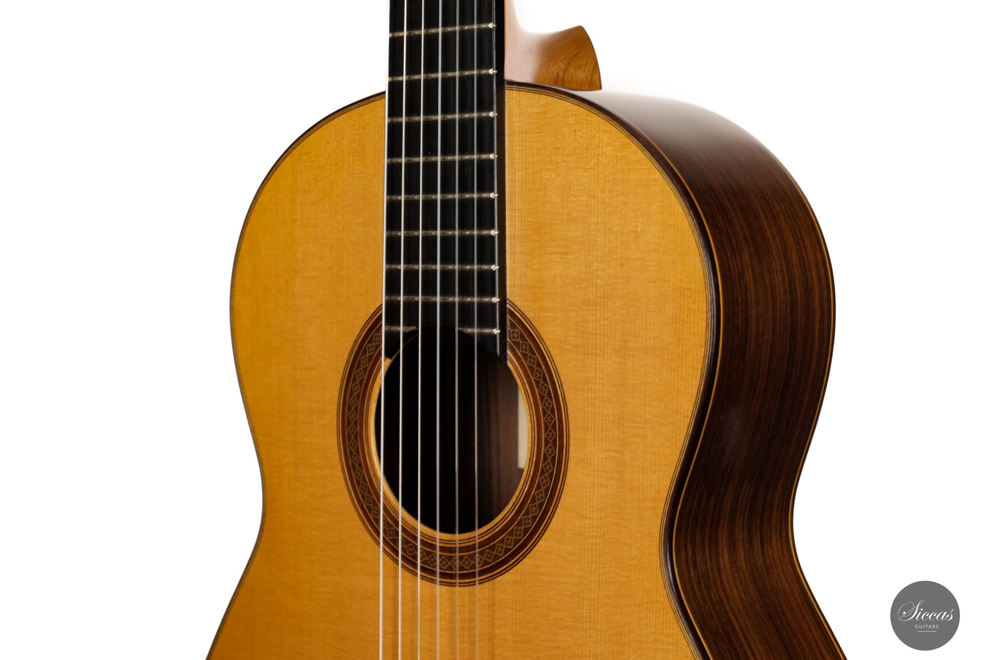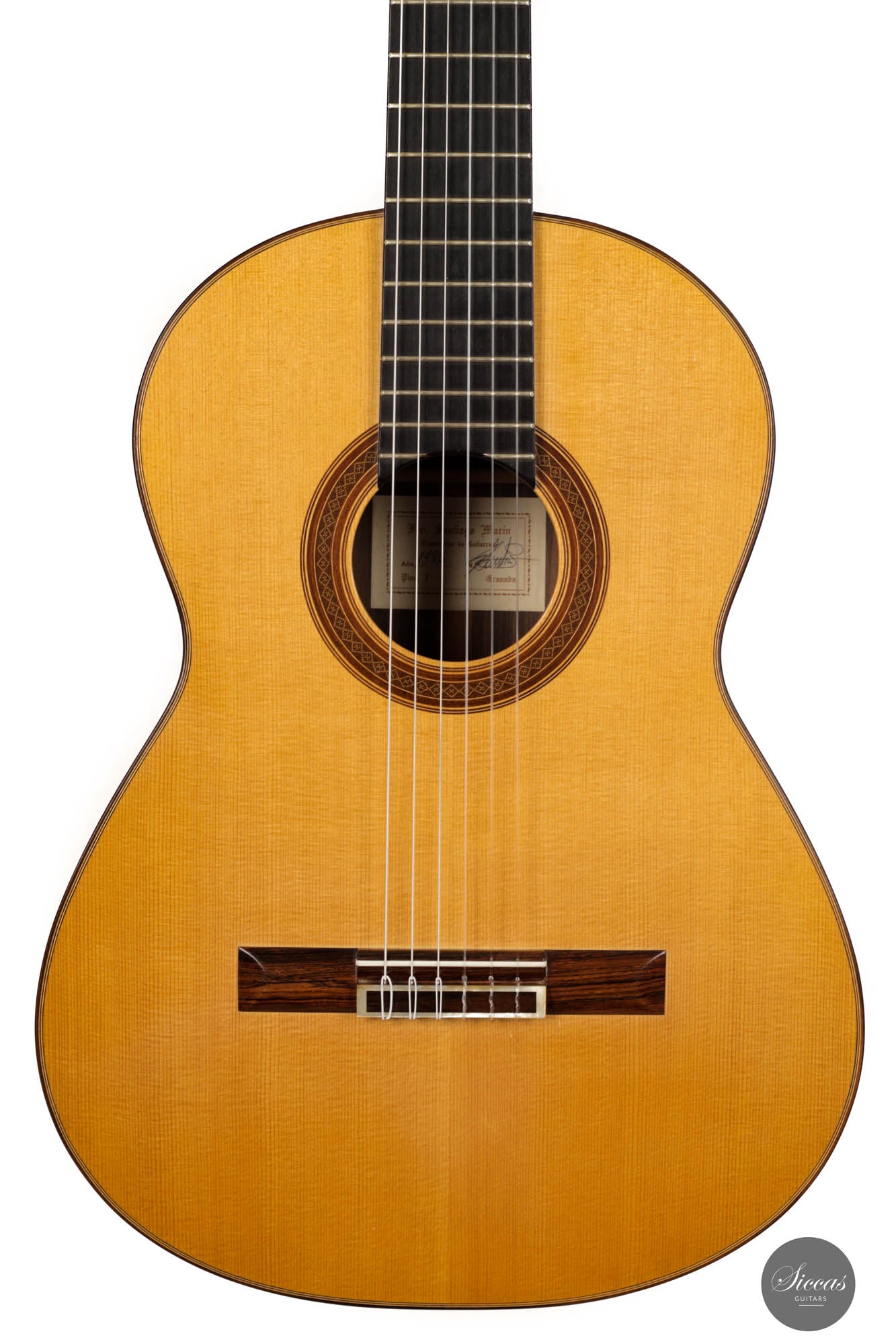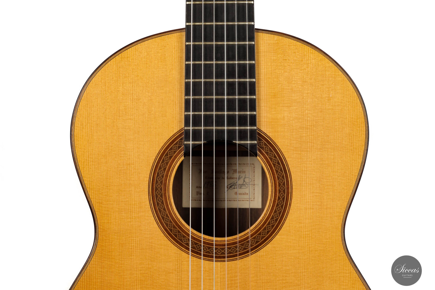 Paco Santiago Marín was born in Granada in 1946. His father, Francisco Santiago Oliva, was a cabinet maker of vocation and taught his son Paco Santiago the delicate art of wood crafting. In 1963 Paco Santiago joined his uncle's workshop, Antonio Marín Montero, to complete his transition from a cabinet maker to a full-fledged luthier. In 1972 he decided to start his workshop.
