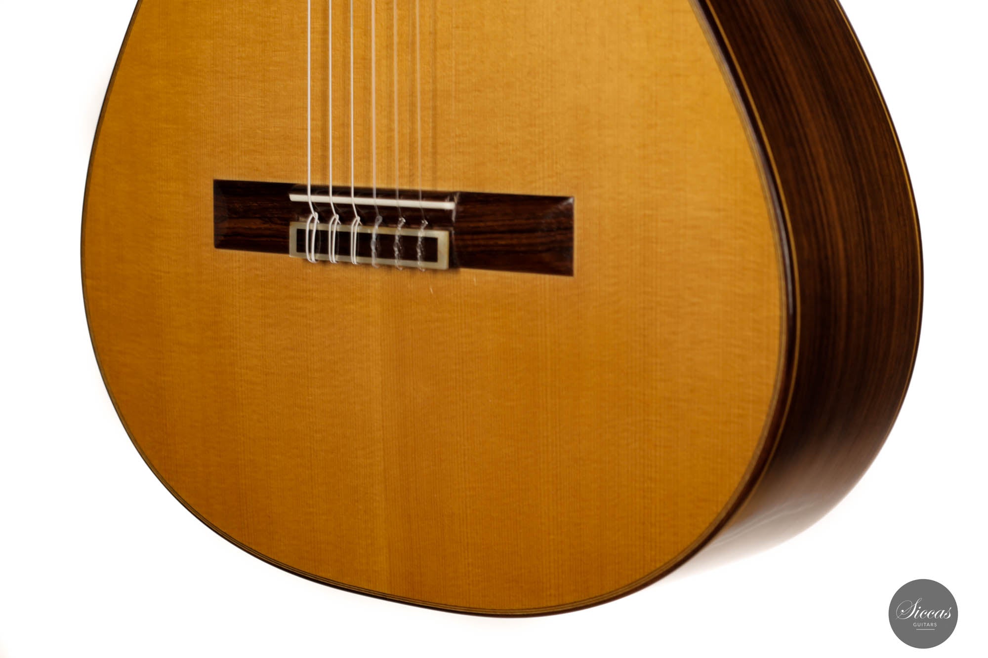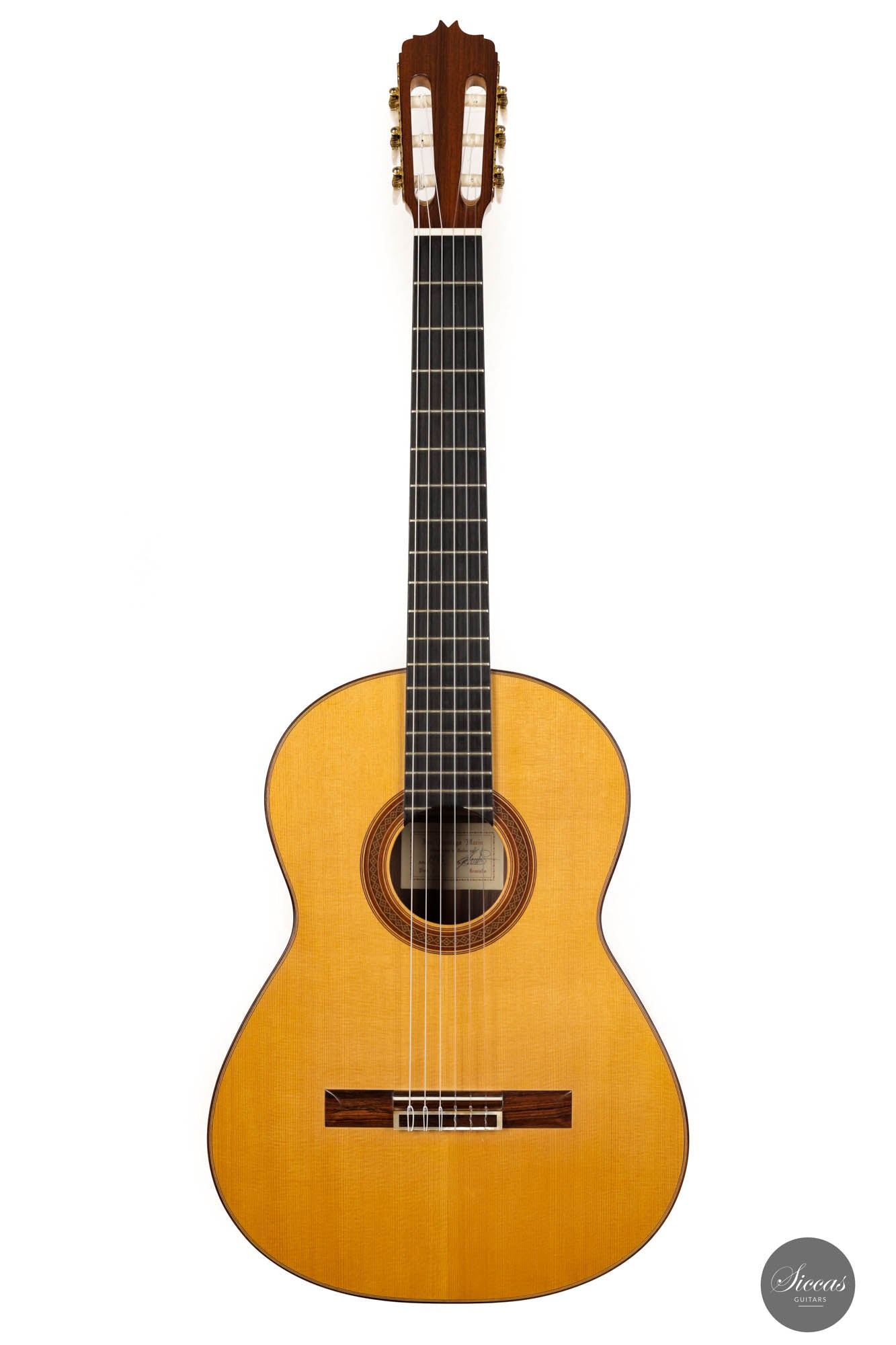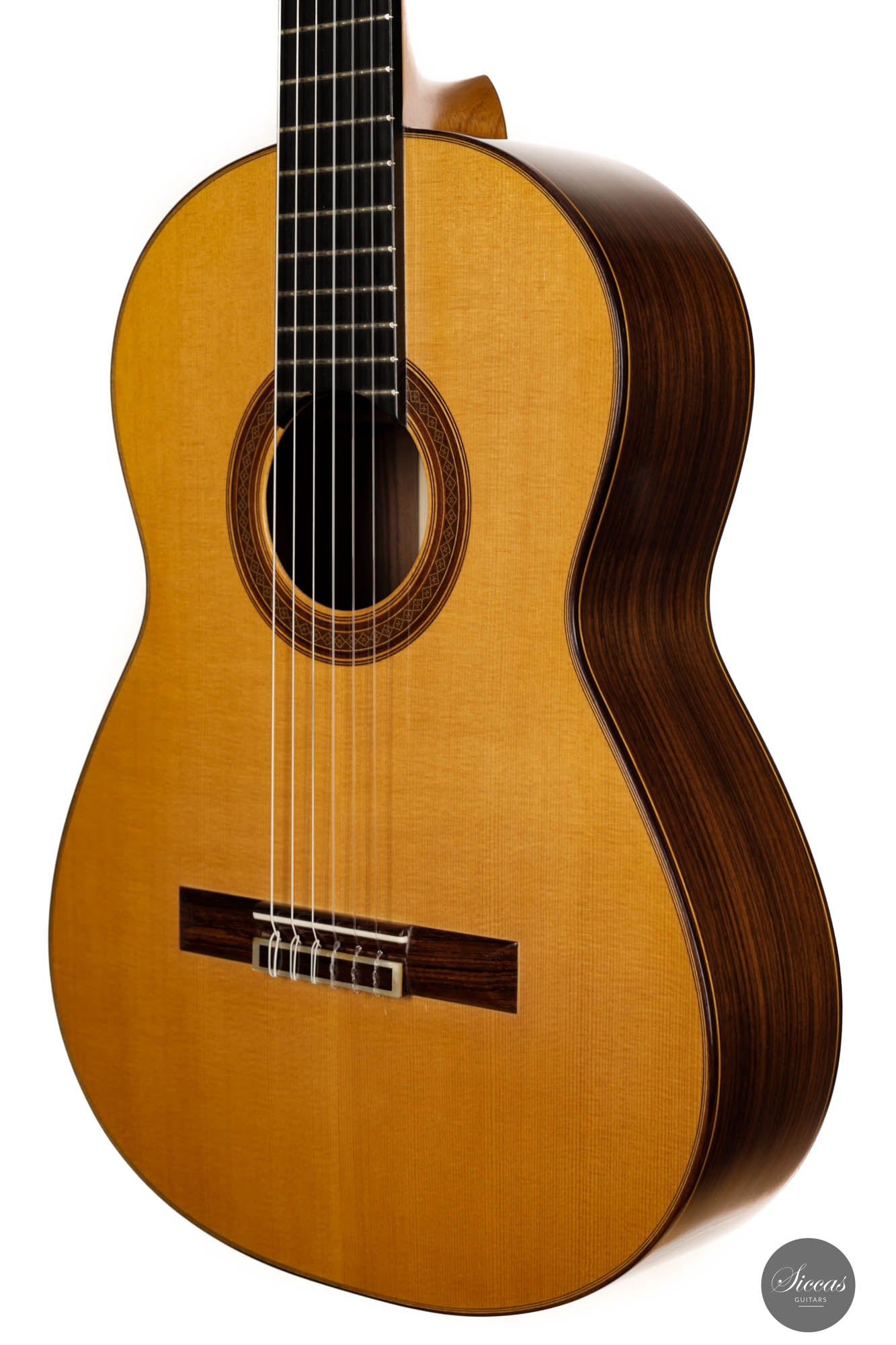 This spruce / Indian rosewood classical guitar was crafted by the renowned Spanish luthier Paco Santiago Marin in 1986. With over 35 years of playing, its sound has fully matured and opened up, providing a rich and soulful tone characteristic of Spanish guitars. The guitar is in excellent condition and free from cracks, displaying only scarce playing marks. The guitar setup is perfect, making it incredibly easy to play, hence an ideal instrument for concert guitarists looking for a guitar ready to perform.
