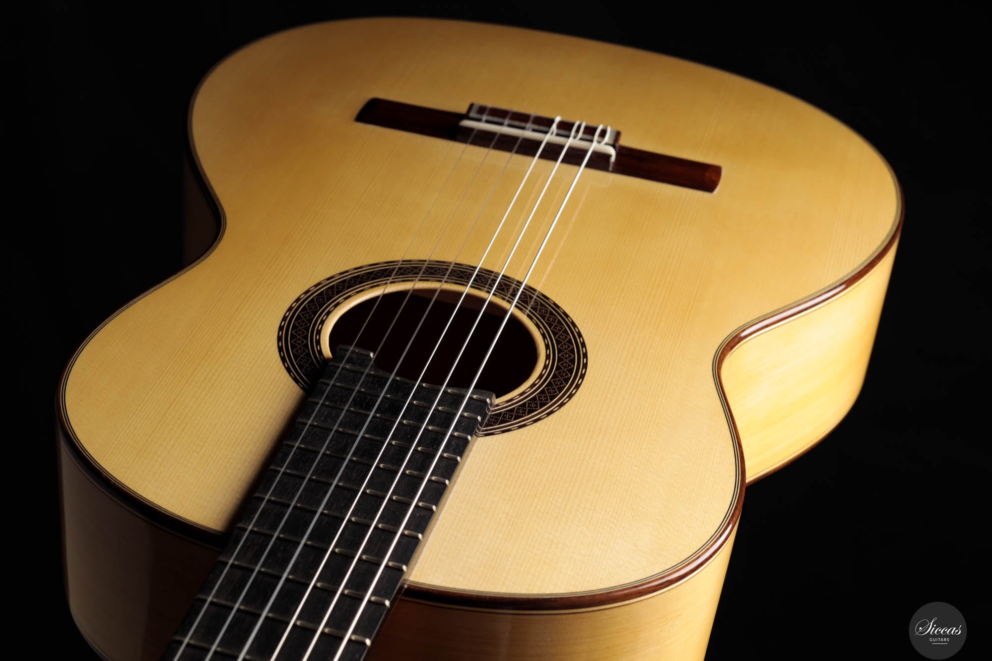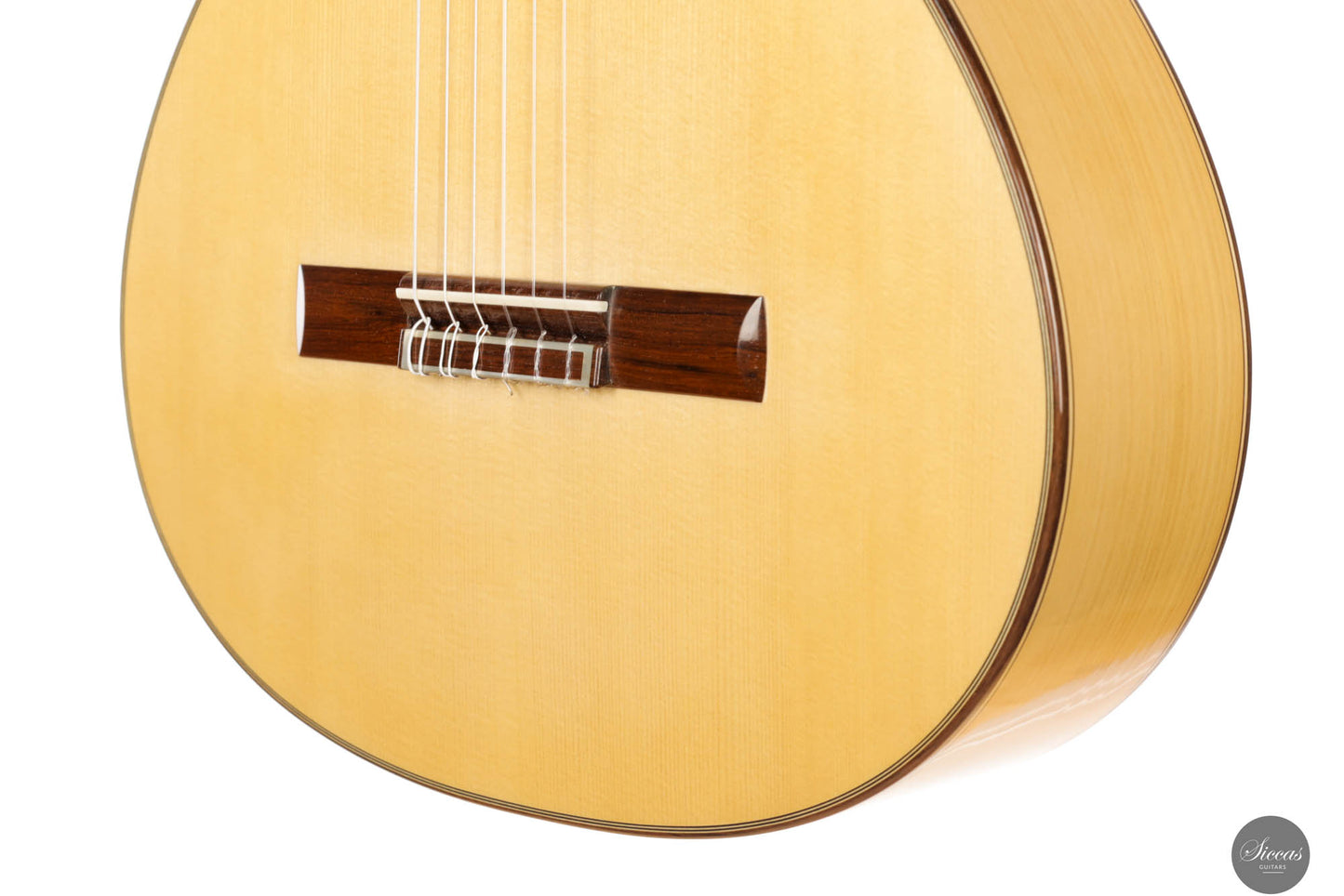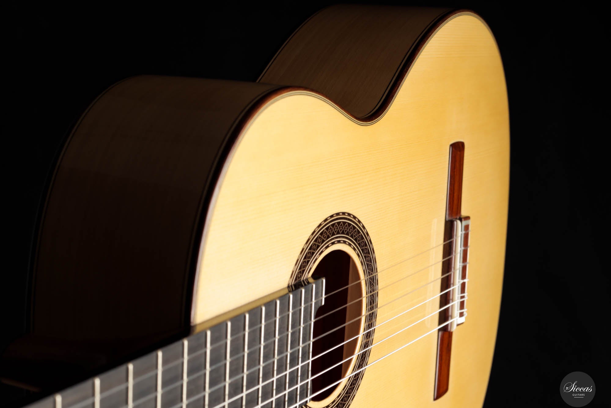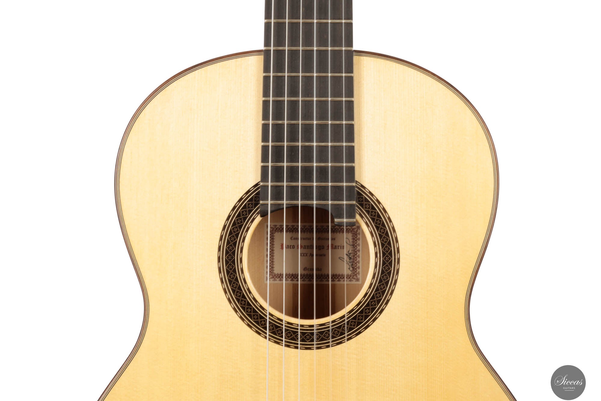 Paco Santiago Marín, was born in Granada 1946. His father, Francisco Santiago Oliva, was a cabinet-maker of vocation, and taught his son Paco Santiago the delicate art of wood crafting. In 1963 Paco Santiago joined the workshop of his uncle, Antonio Marín Montero to complete his transition from a cabinet-maker to a full-fledged luthier. In 1972 he decided to start his own workshop. Paco Santiago’s guitars are highly sought after for their strong projection, balance and tone color. The list of professional guitarists who play on his instruments is as long as one can imagine, for example Ricardo Gallen, Leo Brouwer, Manuel Gonzalez & Iliana Matos, just to name a few. The Aniversario models are the most prestigious and sought after models from this immensely accomplished guitar maker. Only the best and finest materials are used for these works of art. These guitars are characterized by an abundance of tonal strength and projection. The quality of tone and the variety of design possibilities these guitars offer are almost unparalleled.
