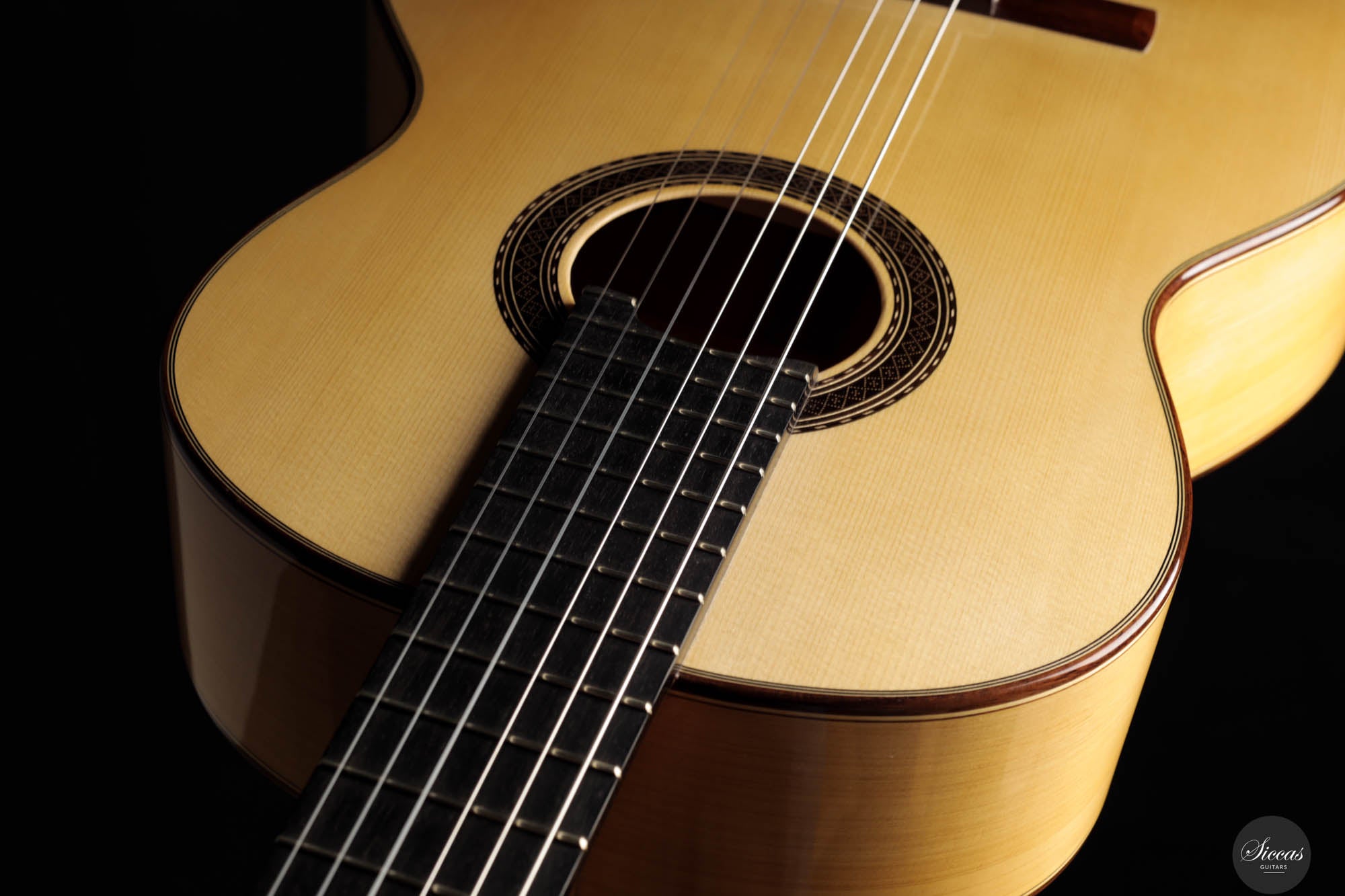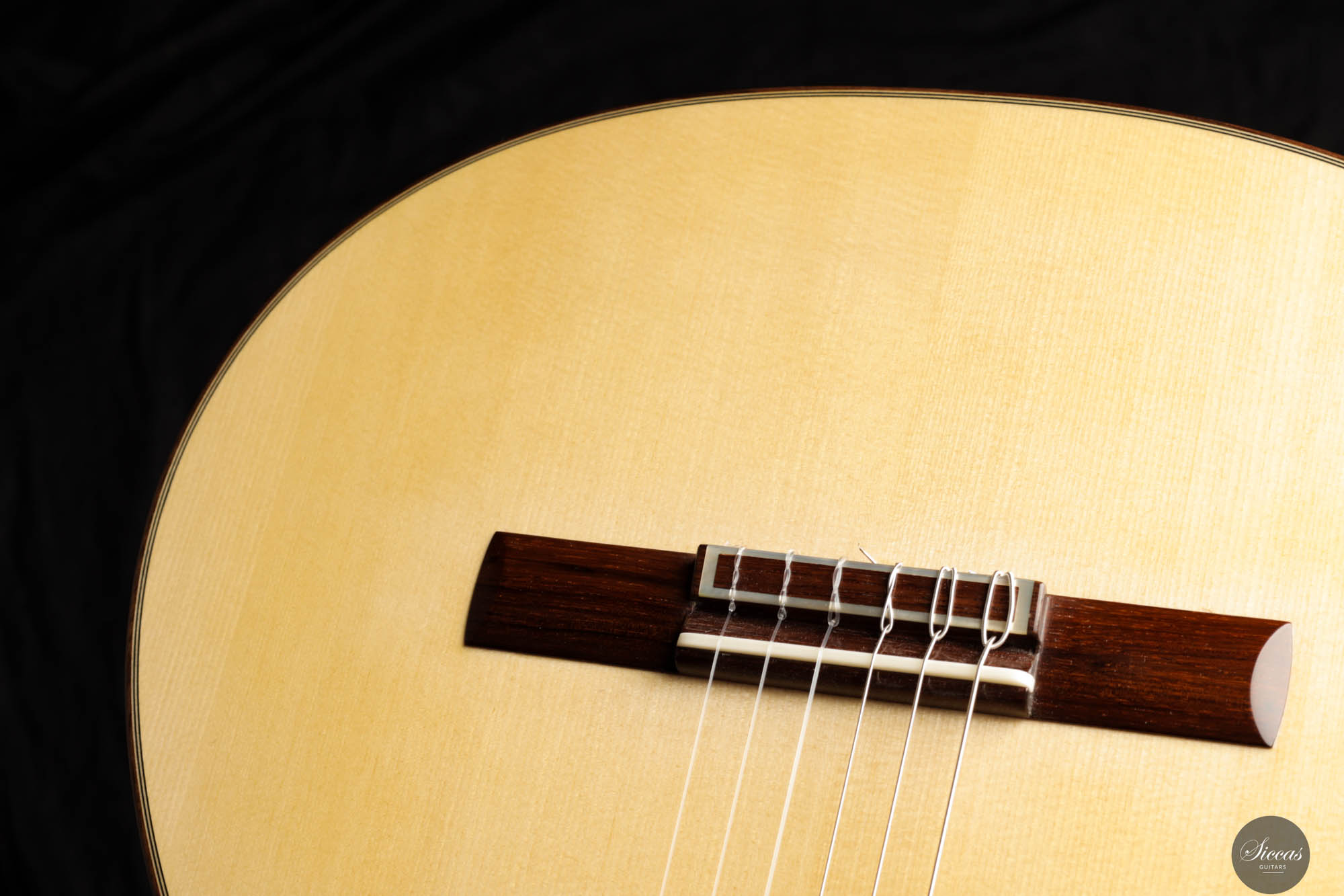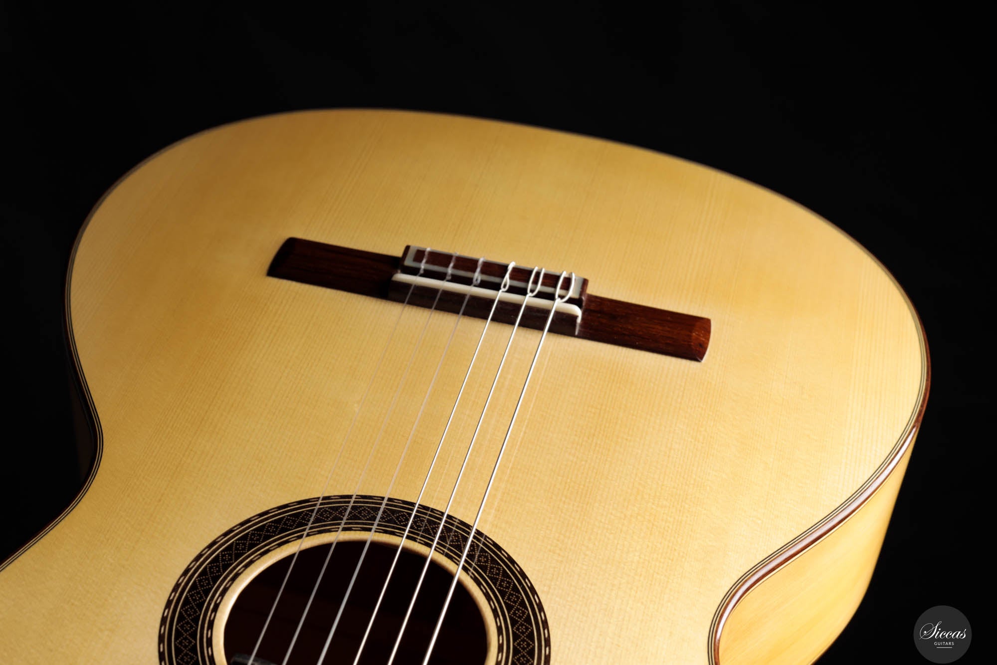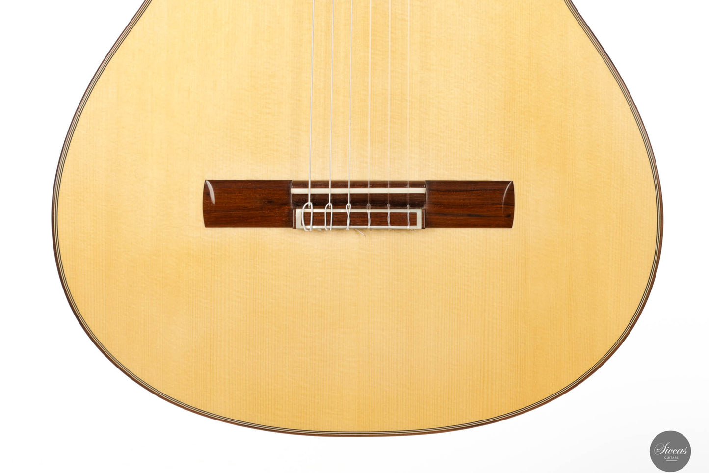 Paco Santiago Marín, was born in Granada 1946. His father, Francisco Santiago Oliva, was a cabinet-maker of vocation, and taught his son Paco Santiago the delicate art of wood crafting. In 1963 Paco Santiago joined the workshop of his uncle, Antonio Marín Montero to complete his transition from a cabinet-maker to a full-fledged luthier. In 1972 he decided to start his own workshop. Paco Santiago’s guitars are highly sought after for their strong projection, balance and tone color. The list of professional guitarists who play on his instruments is as long as one can imagine, for example Ricardo Gallen, Leo Brouwer, Manuel Gonzalez & Iliana Matos, just to name a few. The Aniversario models are the most prestigious and sought after models from this immensely accomplished guitar maker. Only the best and finest materials are used for these works of art. These guitars are characterized by an abundance of tonal strength and projection. The quality of tone and the variety of design possibilities these guitars offer are almost unparalleled.