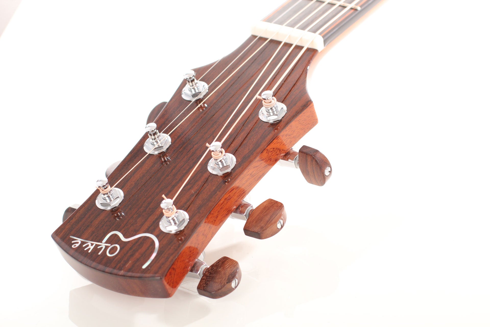 A beautiful hand-made guitar by the young guitar maker Pascal Wolke. He learned the craft at the Mittenwald School of instrument making and has been self-employed since 2014.