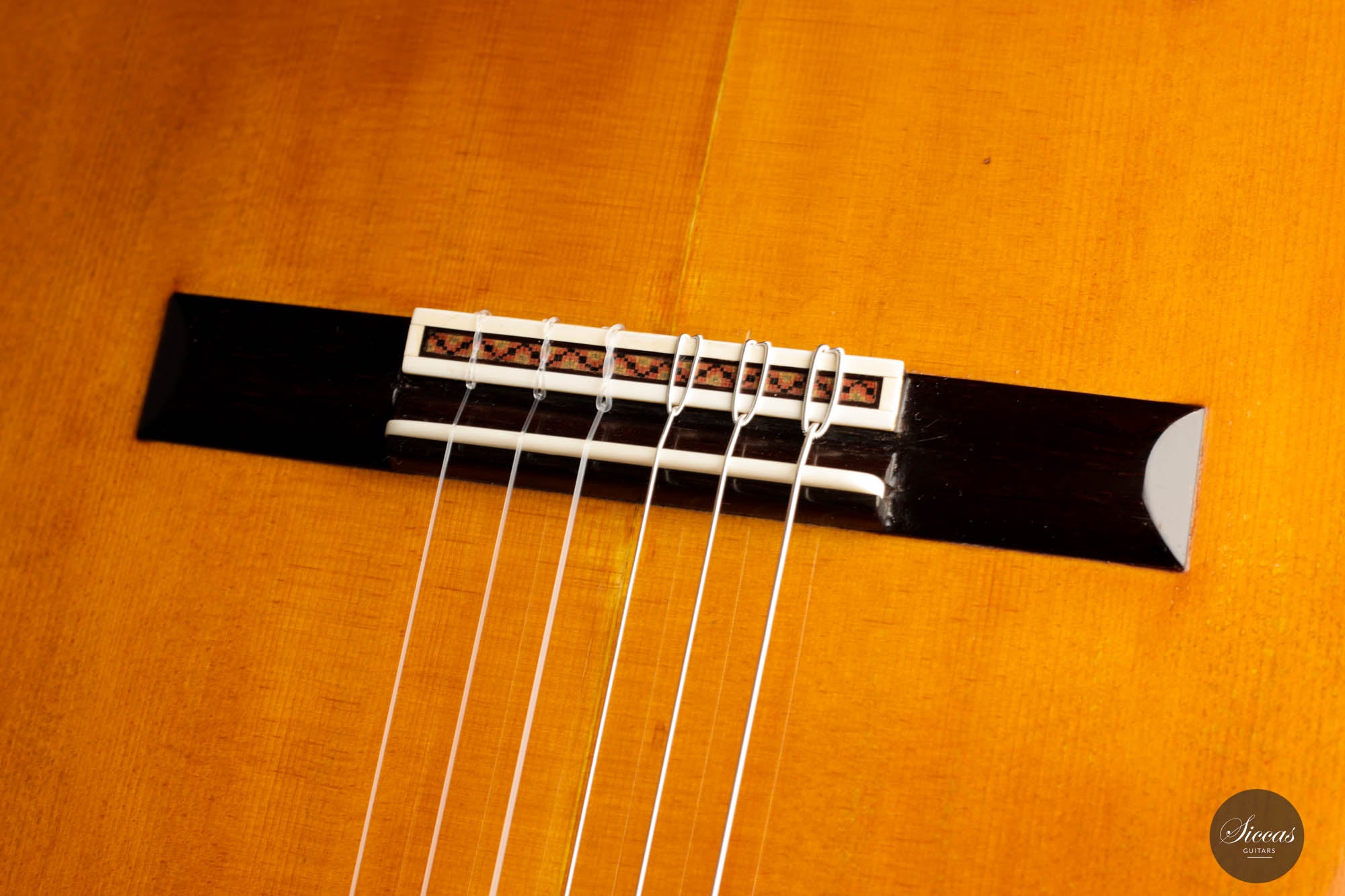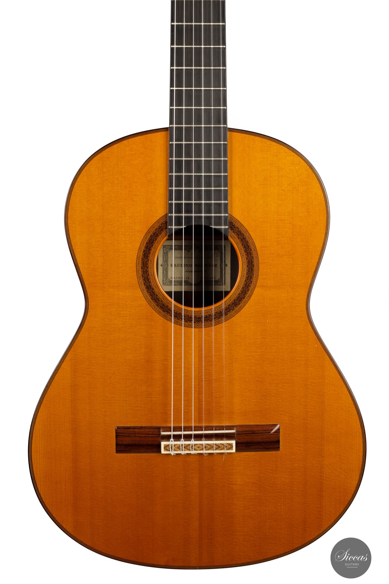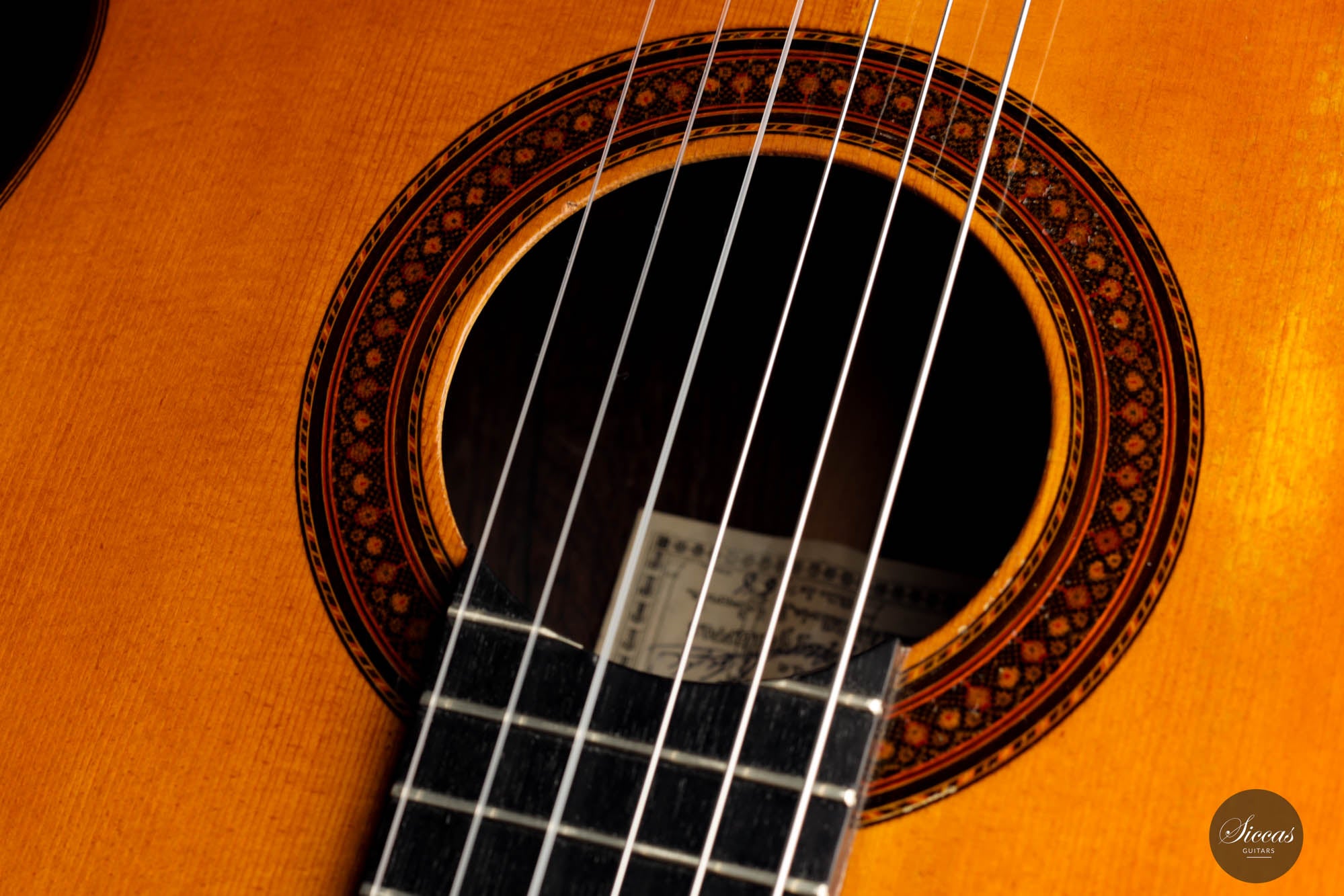 Introducing the exquisite 1984 Paulino Bernabe guitar, a true testament to the mastery of the renowned luthier, Paulino Bernabé Sr. Crafted during a time when Bernabé Sr. worked independently in his workshop, this guitar is both an extraordinary musical instrument and an intriguing work of art. In good condition despite some playing marks on the top, this guitar bears the signs of being a well-loved and cherished instrument. The back and sides are constructed from stunning Brazilian rosewood, CITES certified, and showcase an intricate pattern of parallel orange-black veins that add to its visual appeal. While there is one glued crack on the back and another on the side, both have been stabilized and do not detract from the instrument's remarkable sound quality. As a prime example of the Madrid guitar-making school, this 1984 Paulino Bernabe guitar boasts a powerful and distinct character. Its romantic trebles harmoniously blend with the dark and haunting basses, creating a captivating and unforgettable auditory experience. This exceptional guitar is an embodiment of fine craftsmanship, tradition, and the passion of its creator.